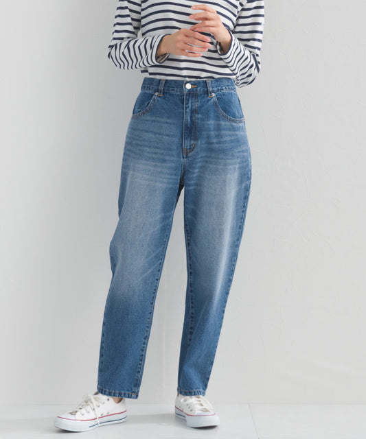 【OMNES】12oz ウォッシュ加工ハイウエストバルーンデニムパンツ【253W427OMN039】