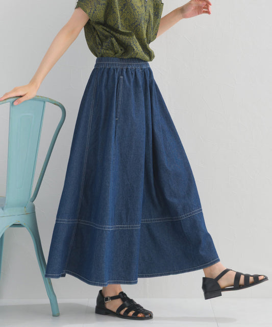 【OMNES】ウォッシュ加工裾切替フレアーデニムスカート【A480004OMN】
