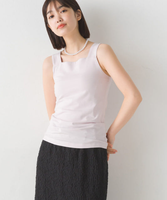 【OMNES PURPLE LABEL】コットンベア天竺 チラ見え防止スクエアネックタンクトップ【6124-5498】