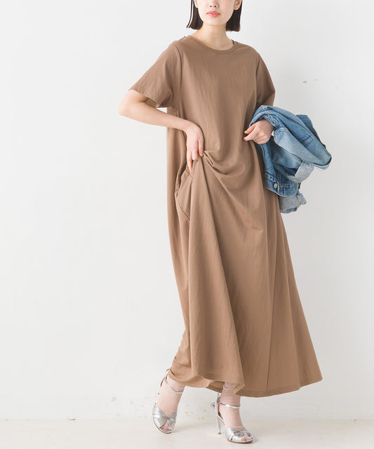 【OMNES】接触冷感レーヨンナイロンラインフレアワンピース【7121-9050】