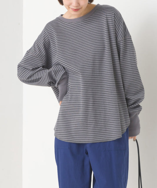 【OMNES】リップルダブルフェイス 裾ラウンド長袖Tシャツ【7123-5405】