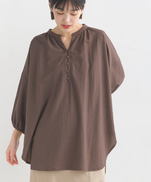 【OMNES】接触冷感レーヨンナイロン ヘンリーネック5分袖裾ラウンドプルオーバー【7123-5381】
