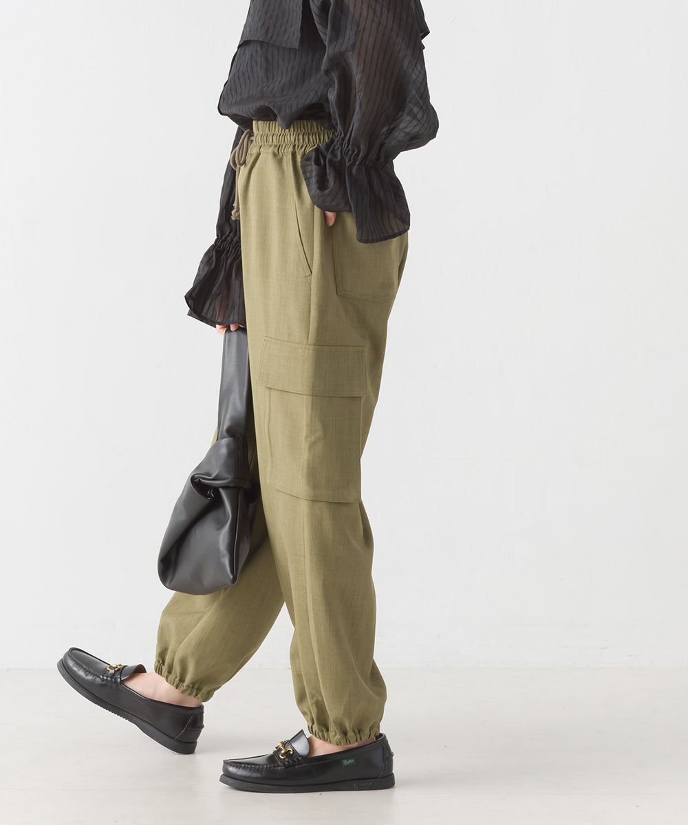 【OMNES】エステルリネンライク裾絞りワークパンツ【1523-2123】