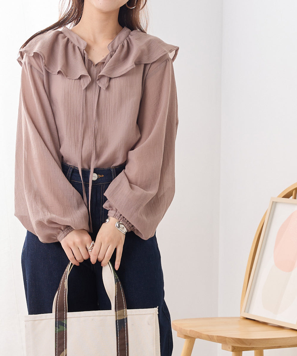 【OMNES】エステルボイル フリルカラースキッパーシャツ【1523-4159】