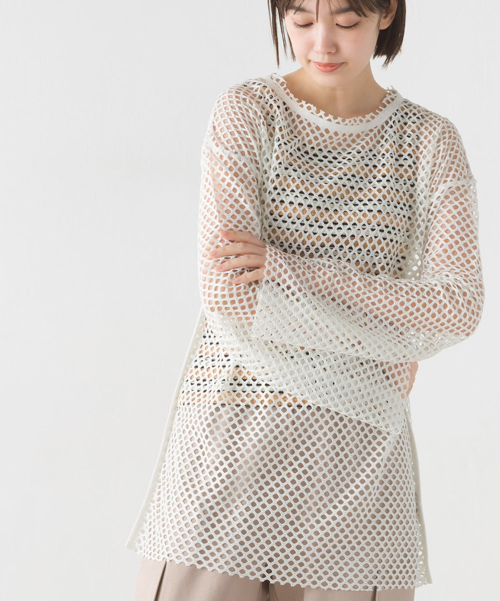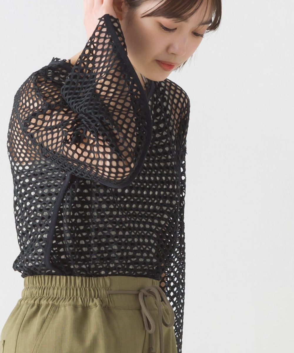 【OMNES】エステルストレッチメッシュ長袖プルオーバー【1523-5346】