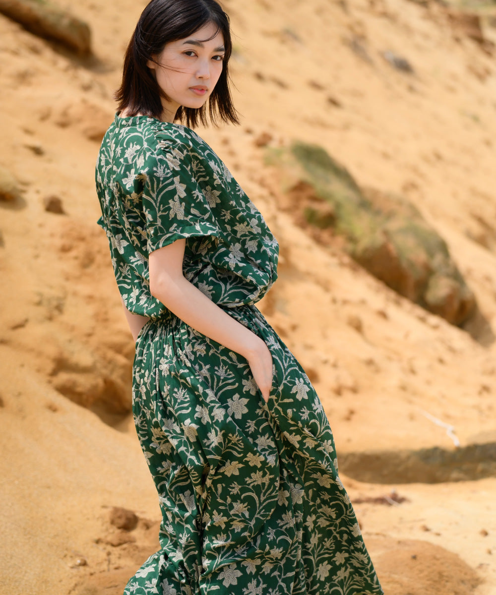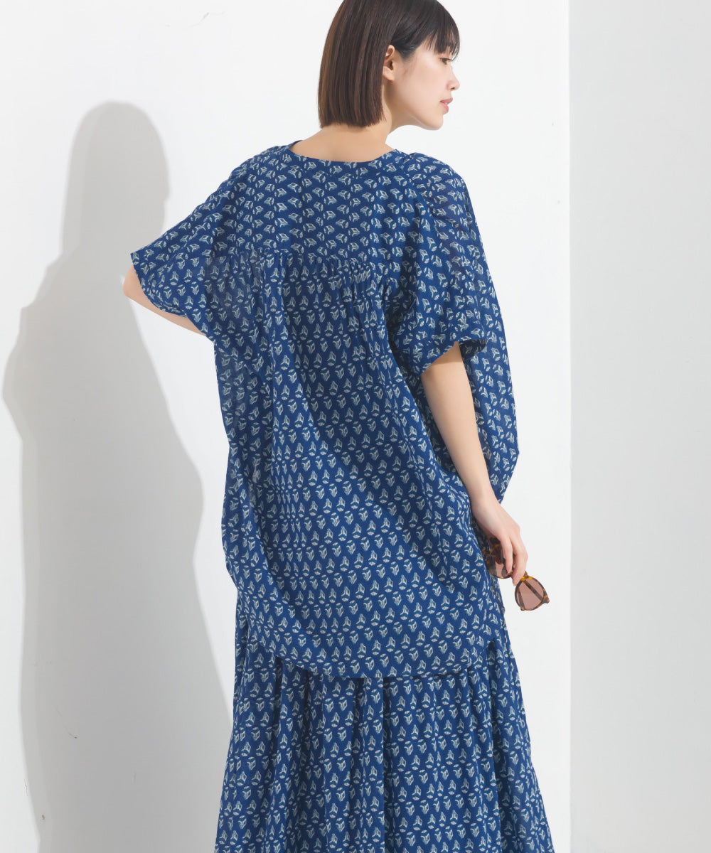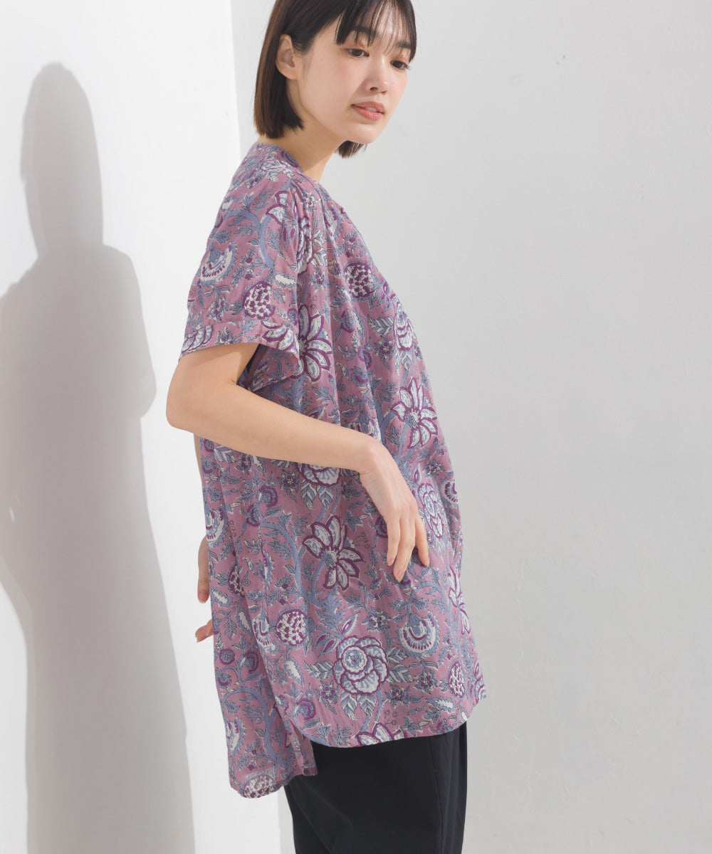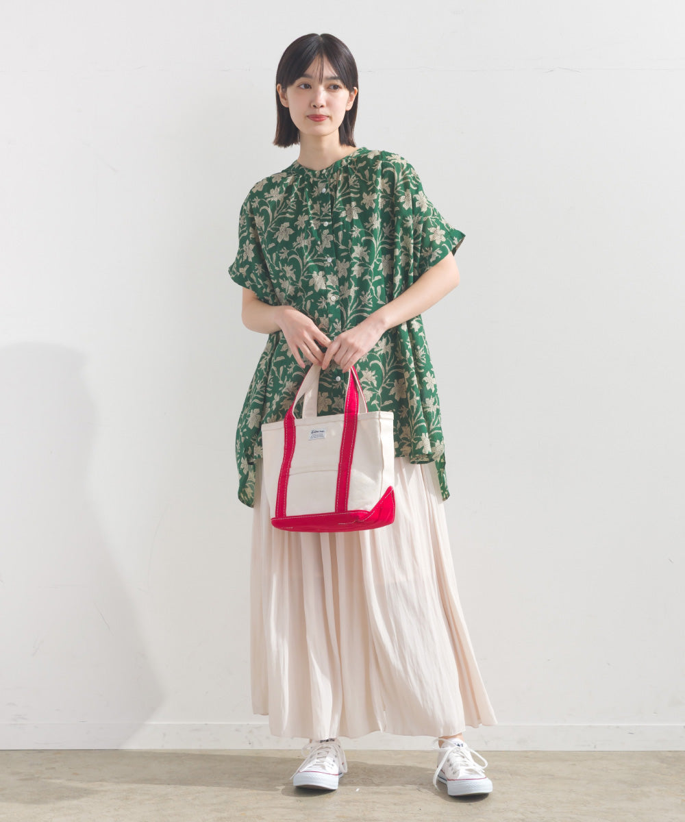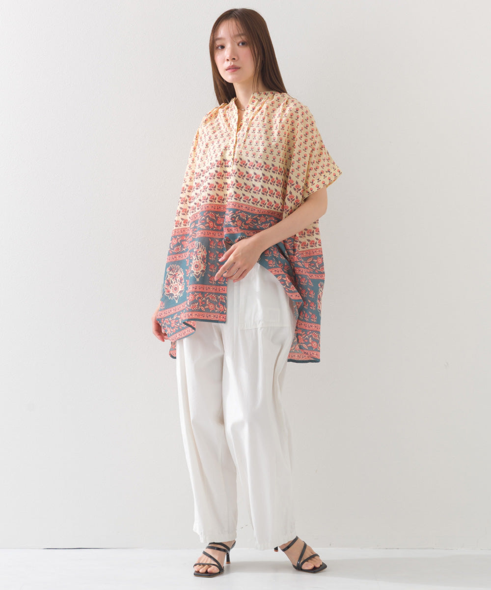 【OMNES】コットンボイル総柄ワイドシルエットギャザー半袖シャツ【1524-4183】