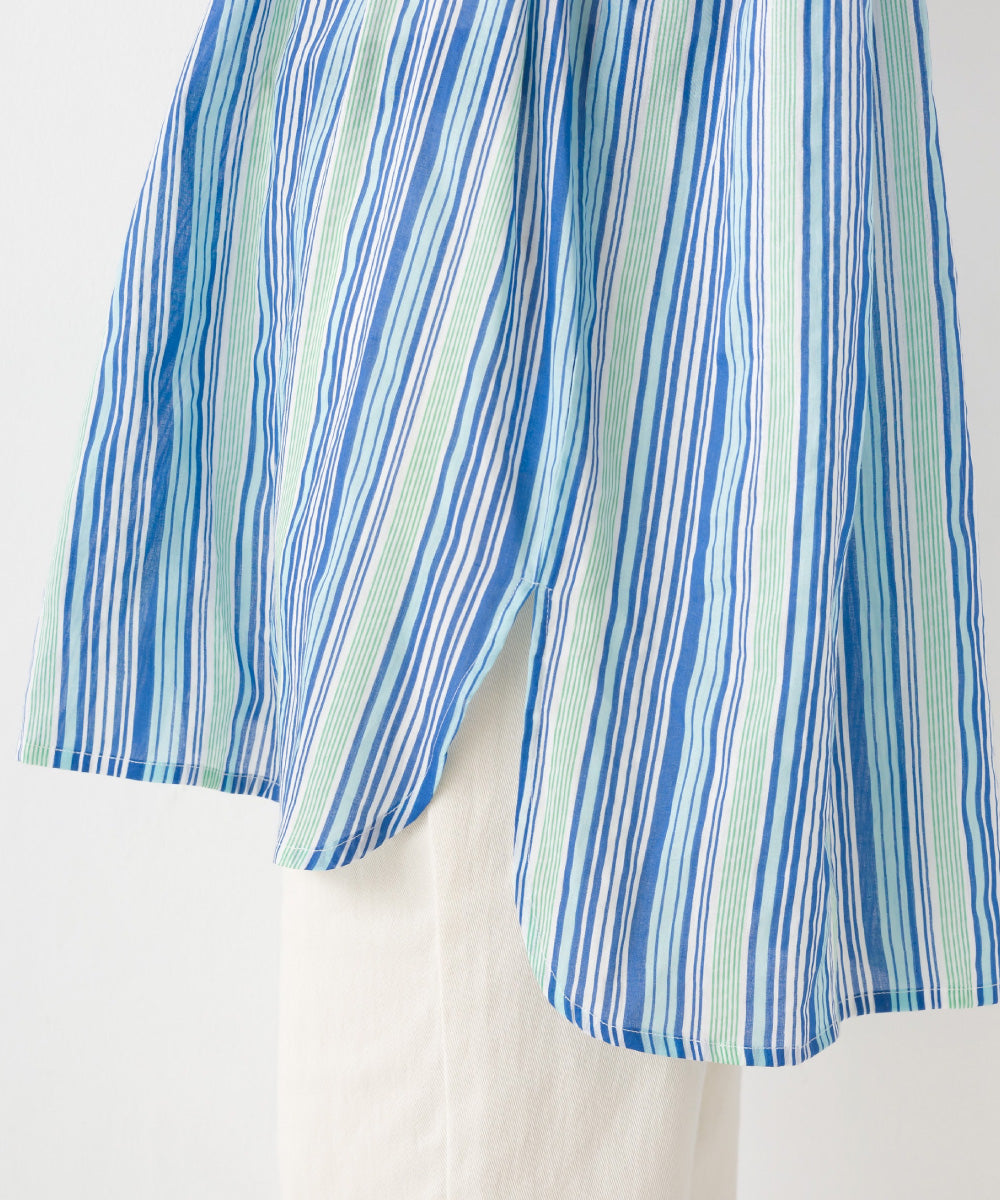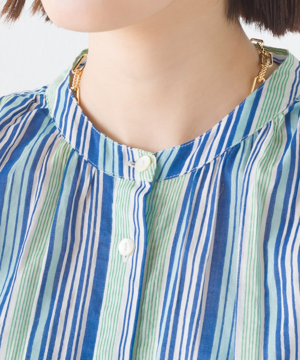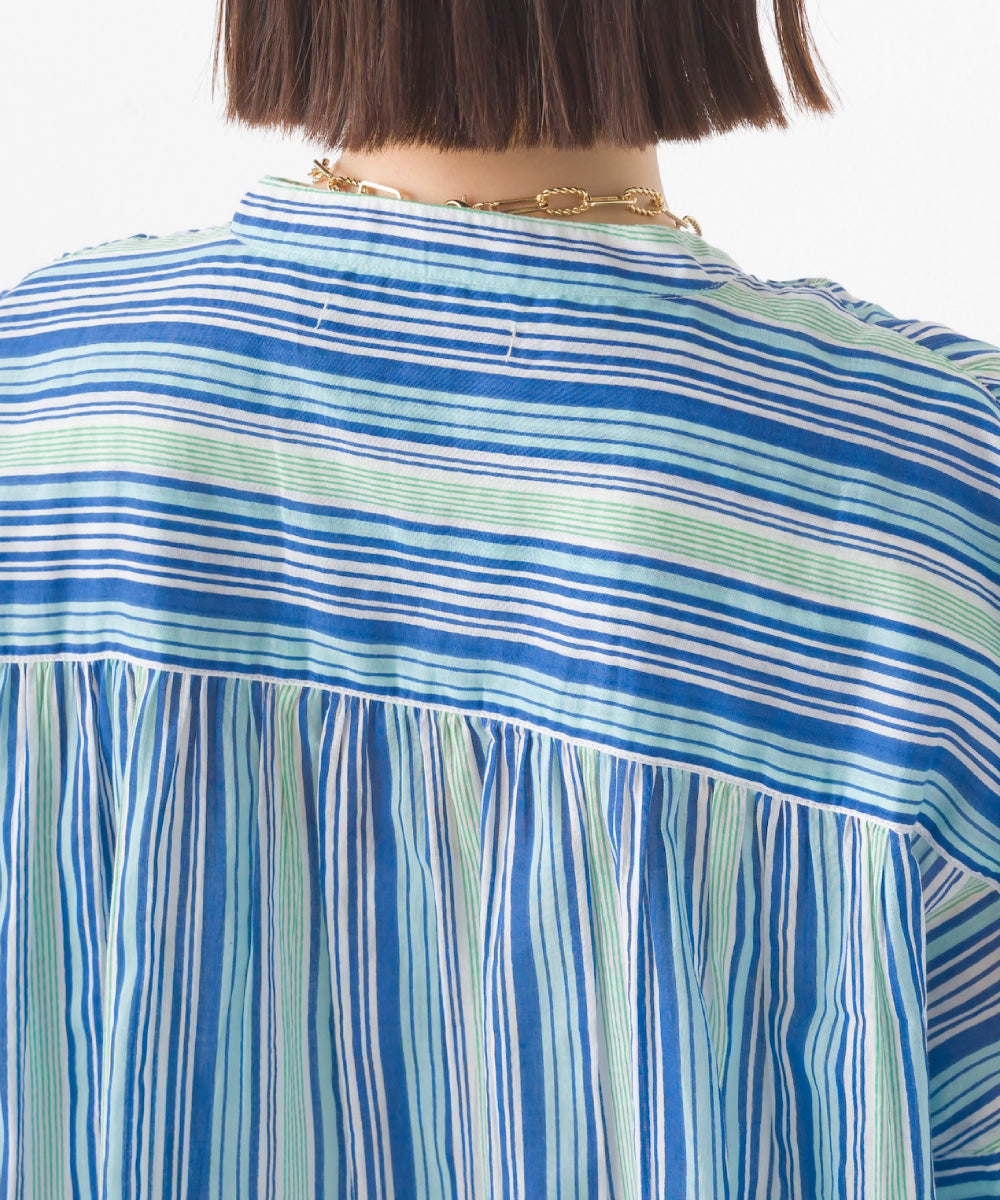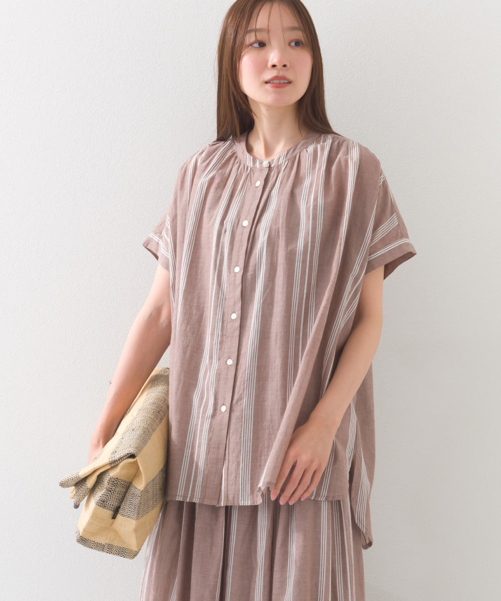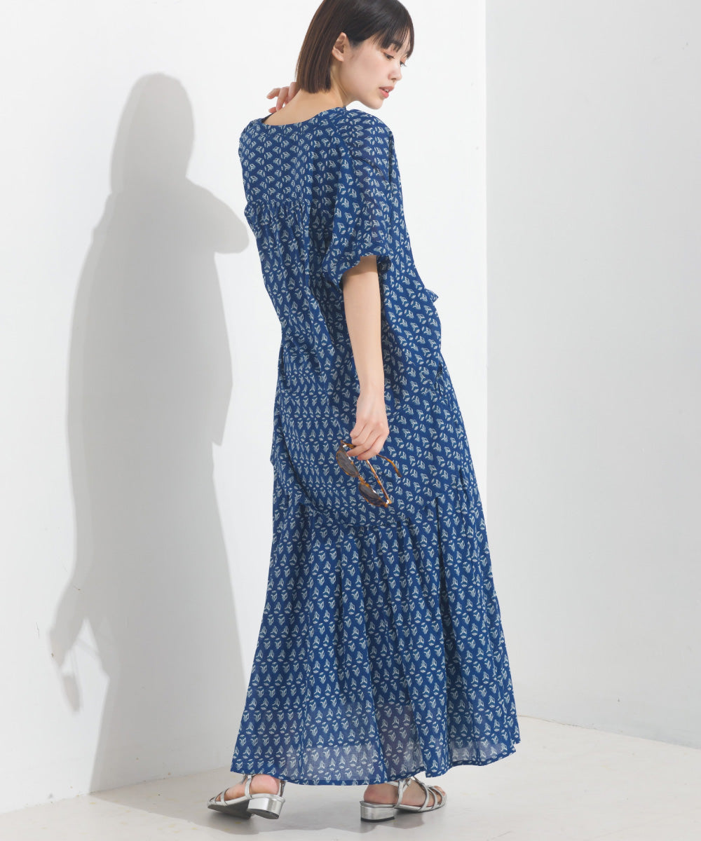 【OMNES】コットンボイル総柄ワイドシルエットギャザー半袖シャツ【1524-4183】