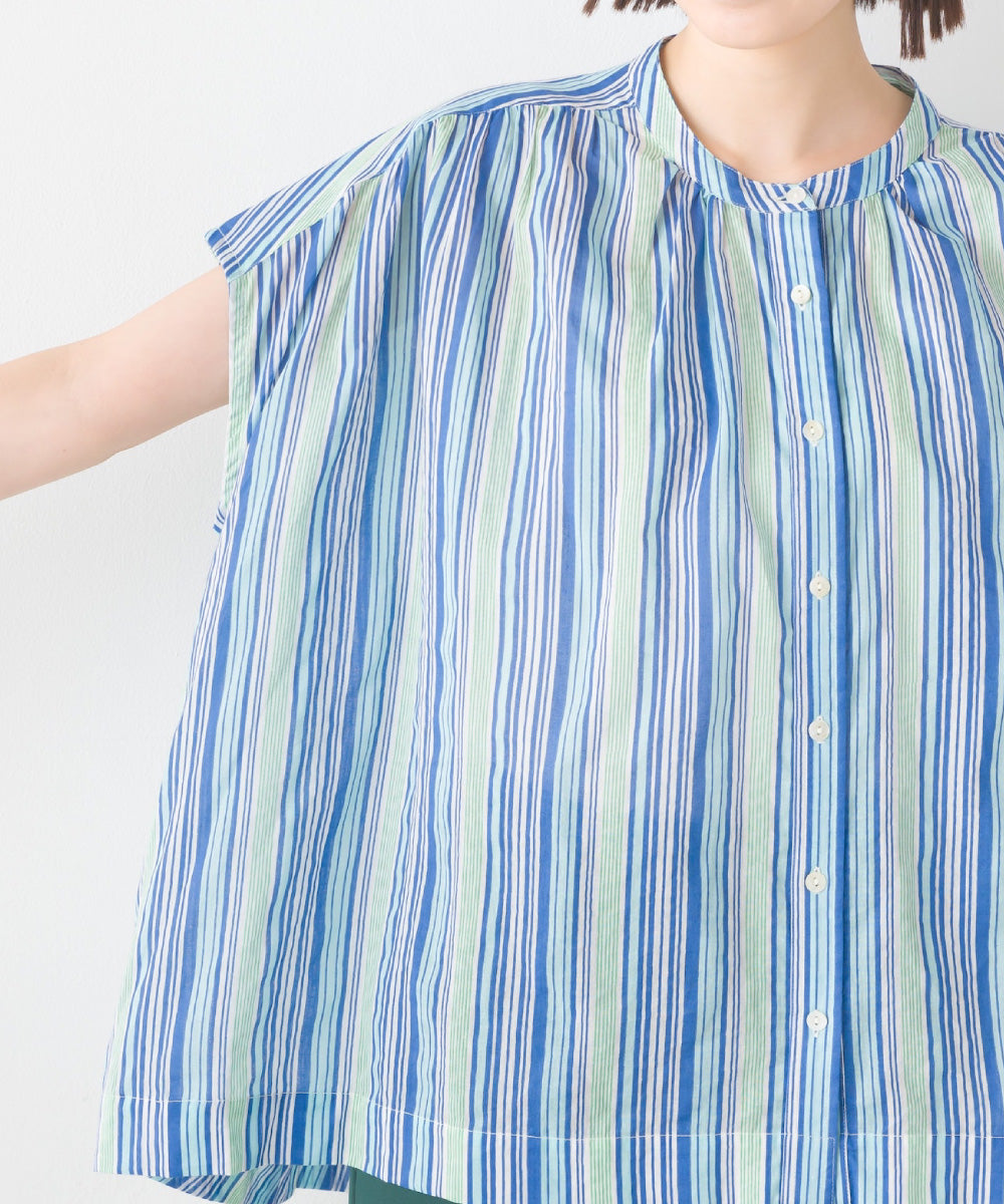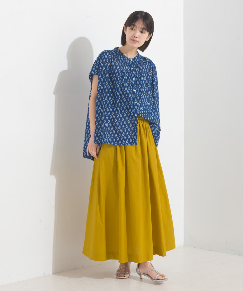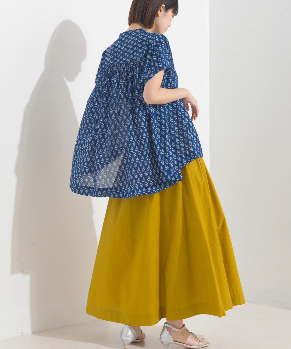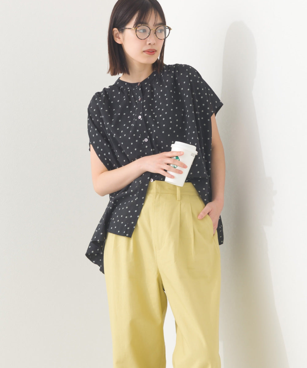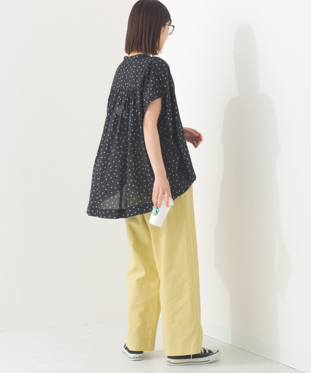 【OMNES】コットンボイル総柄フレンチスリーブギャザーシャツ【1524-4184】