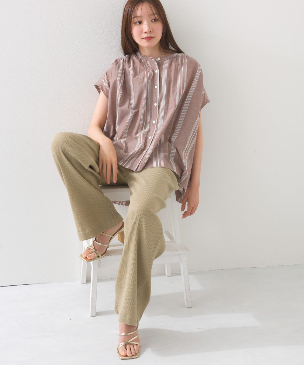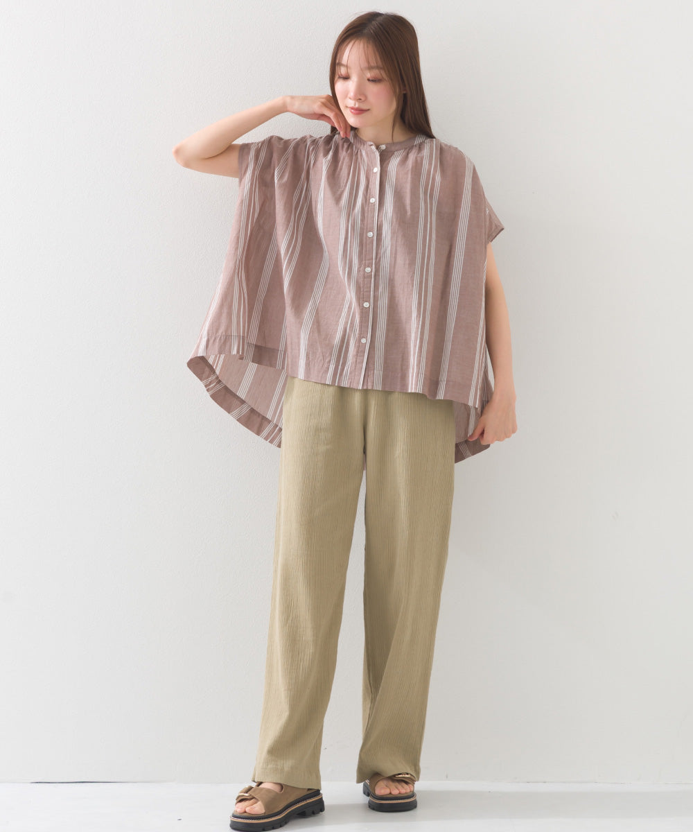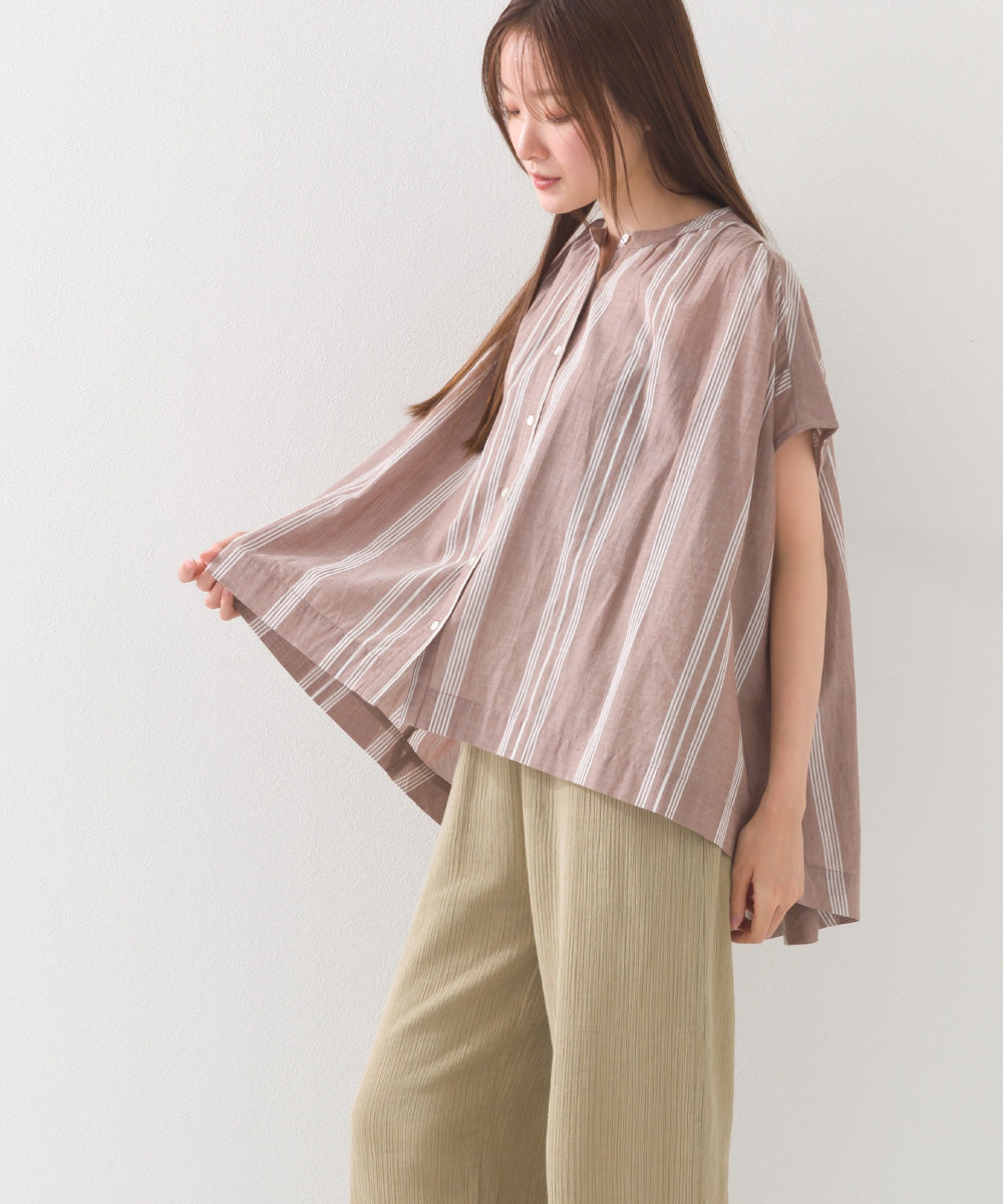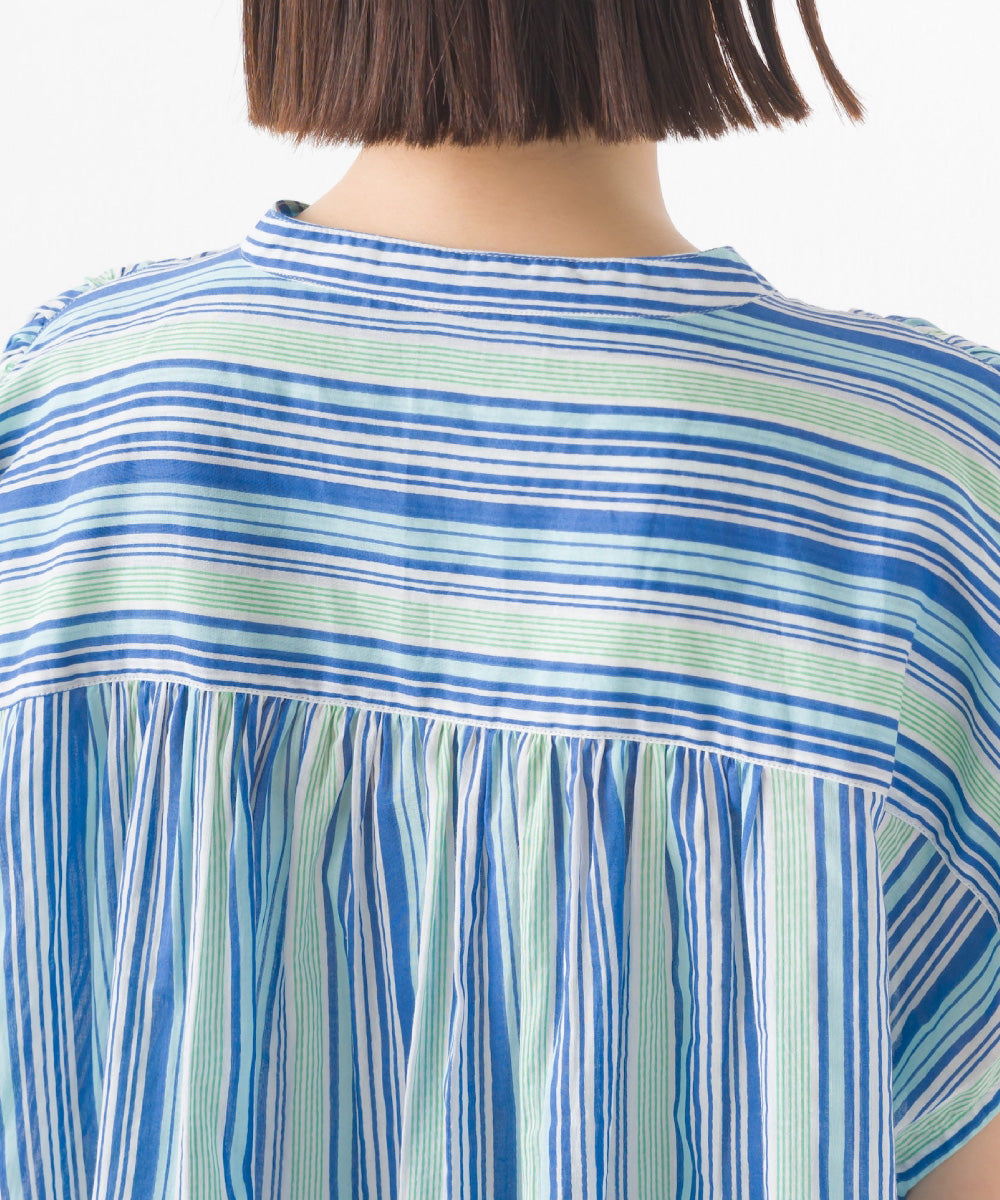 【OMNES】コットンボイル総柄フレンチスリーブギャザーシャツ【1524-4184】