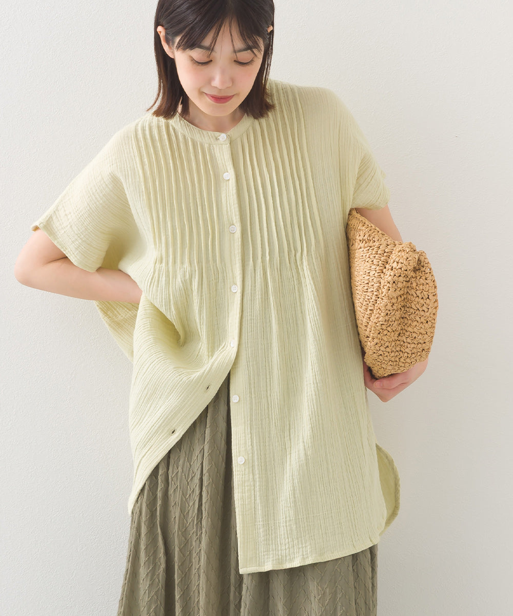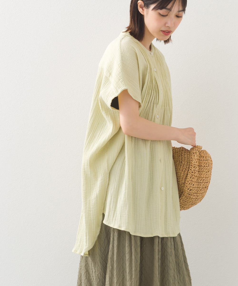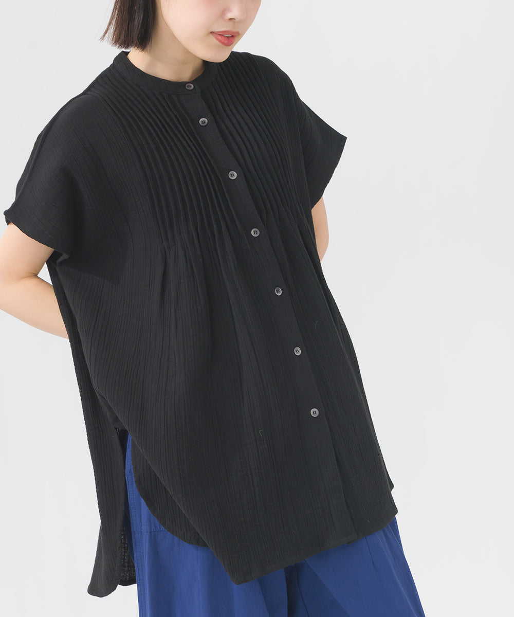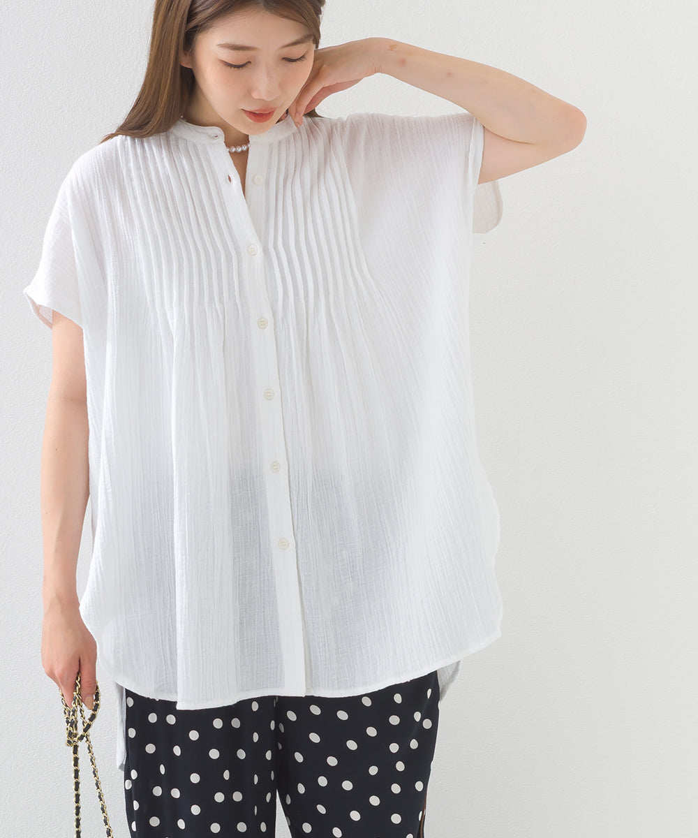 【OMNES】ダブルガーゼピンタックフレンチスリーブシャツ【1525-4236】