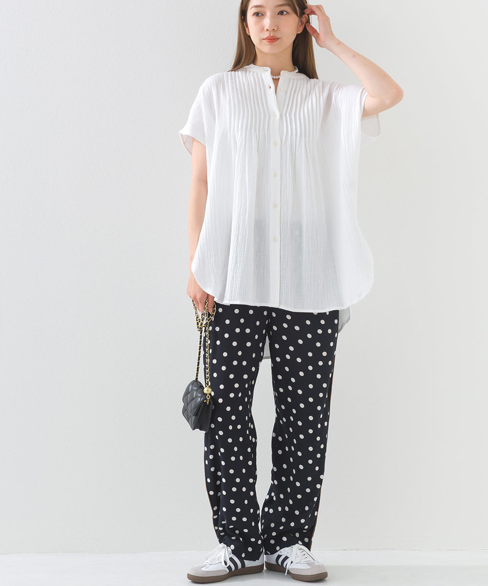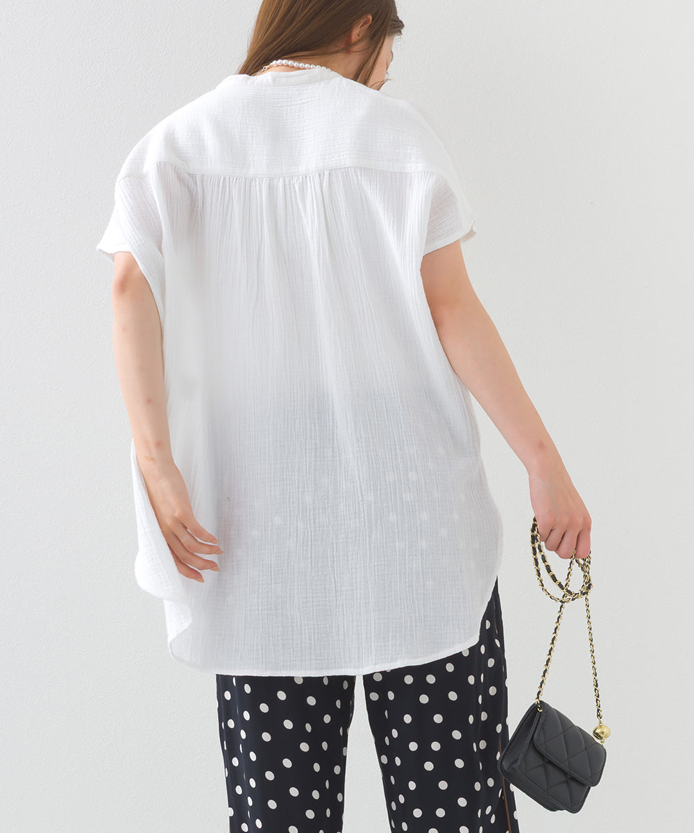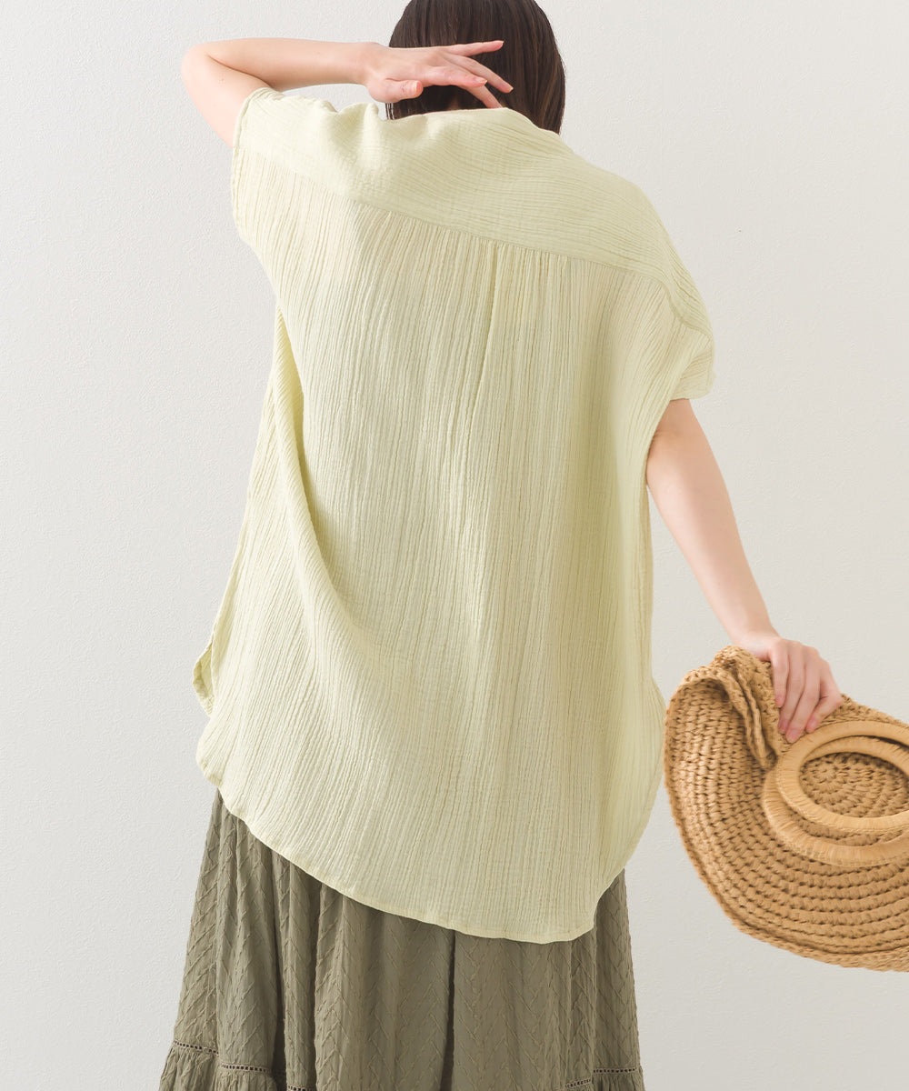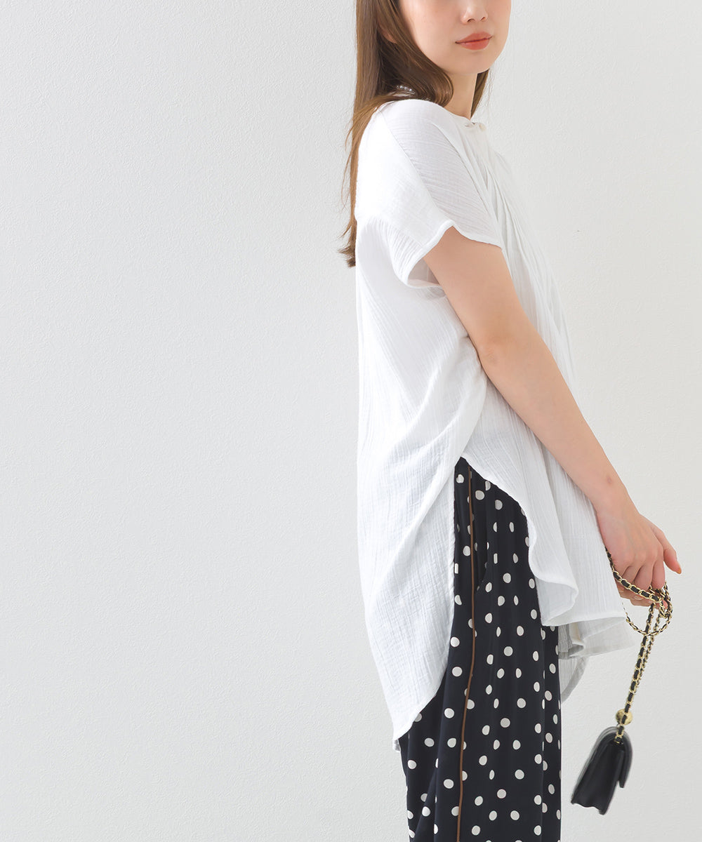 【OMNES】ダブルガーゼピンタックフレンチスリーブシャツ【1525-4236】