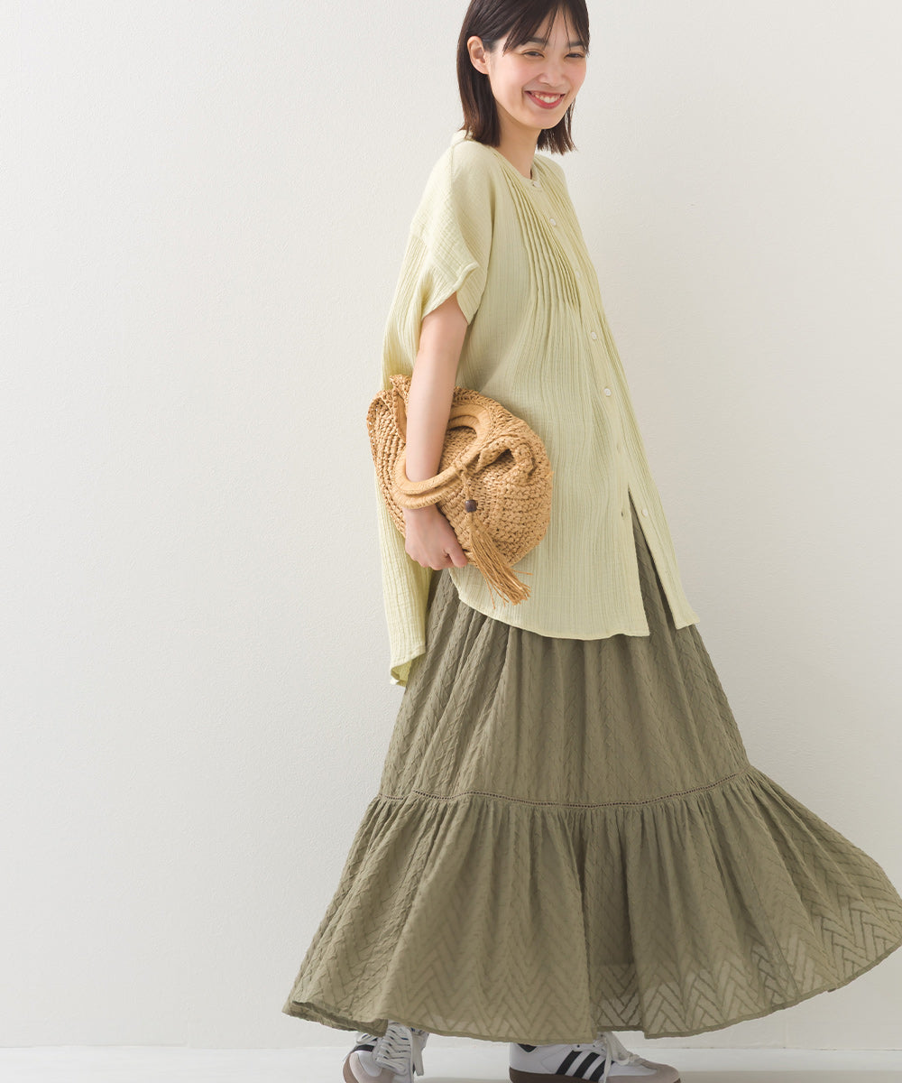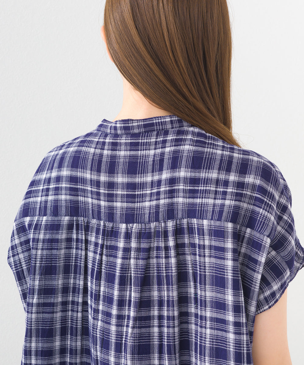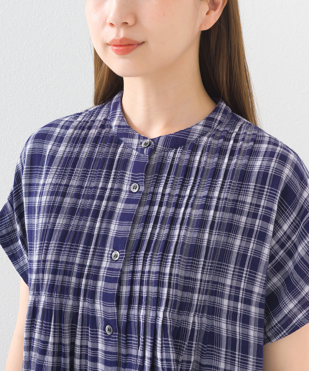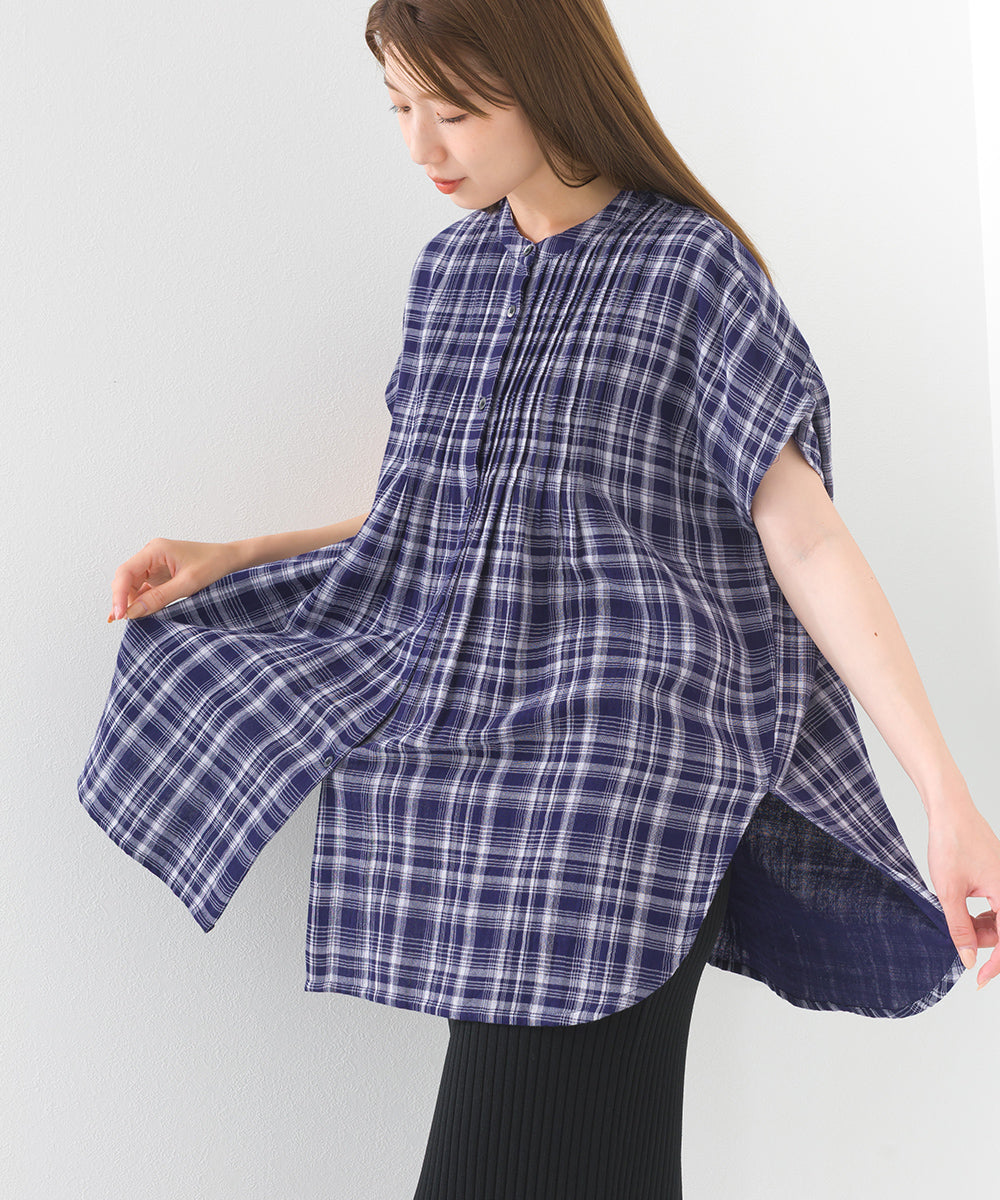 【OMNES】ダブルガーゼピンタックフレンチスリーブシャツ【1525-4236】