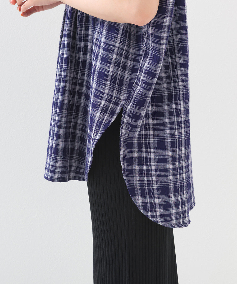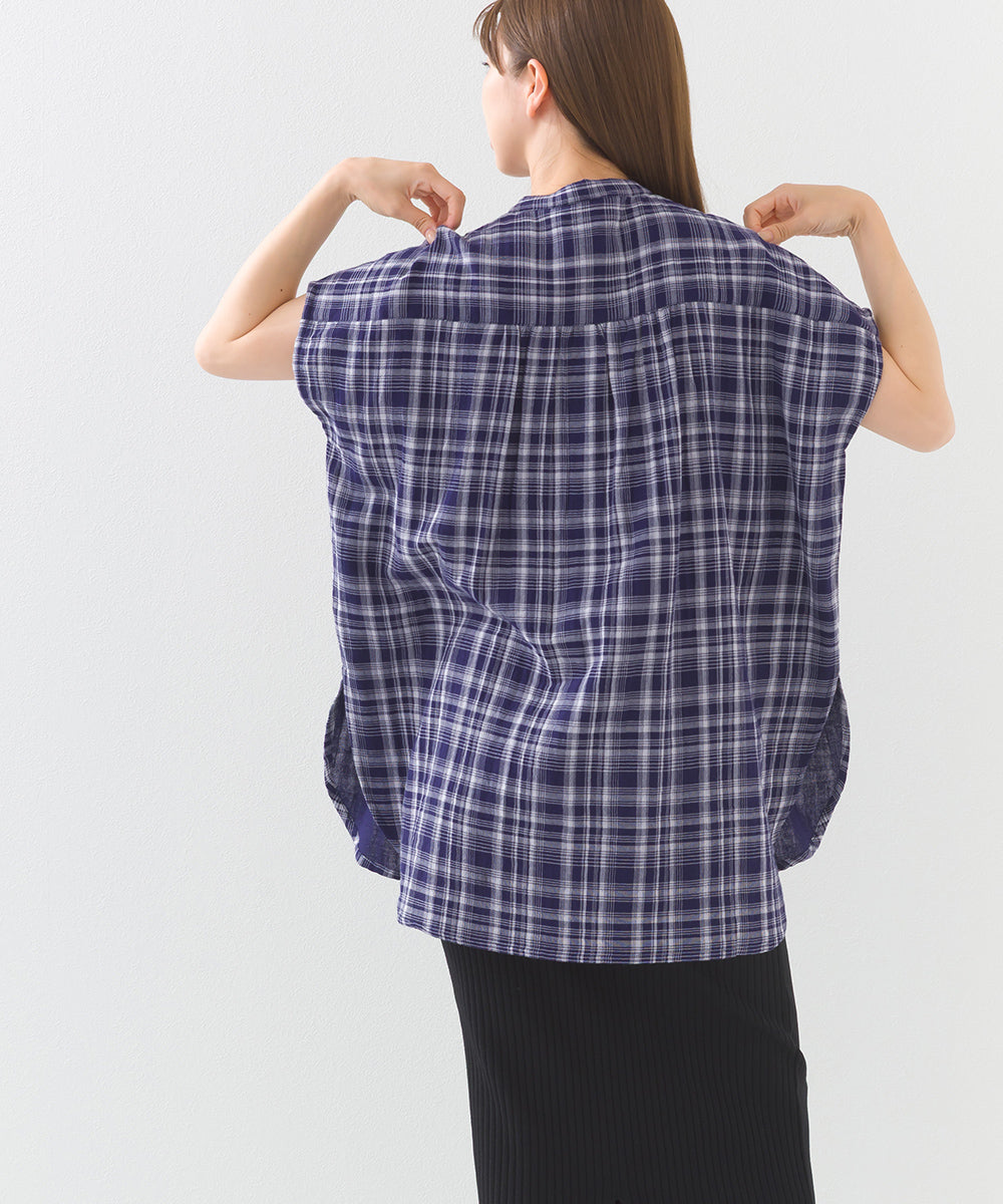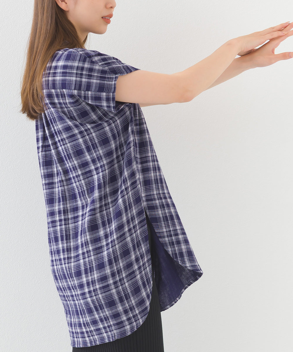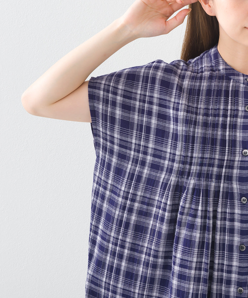 【OMNES】ダブルガーゼピンタックフレンチスリーブシャツ【1525-4236】