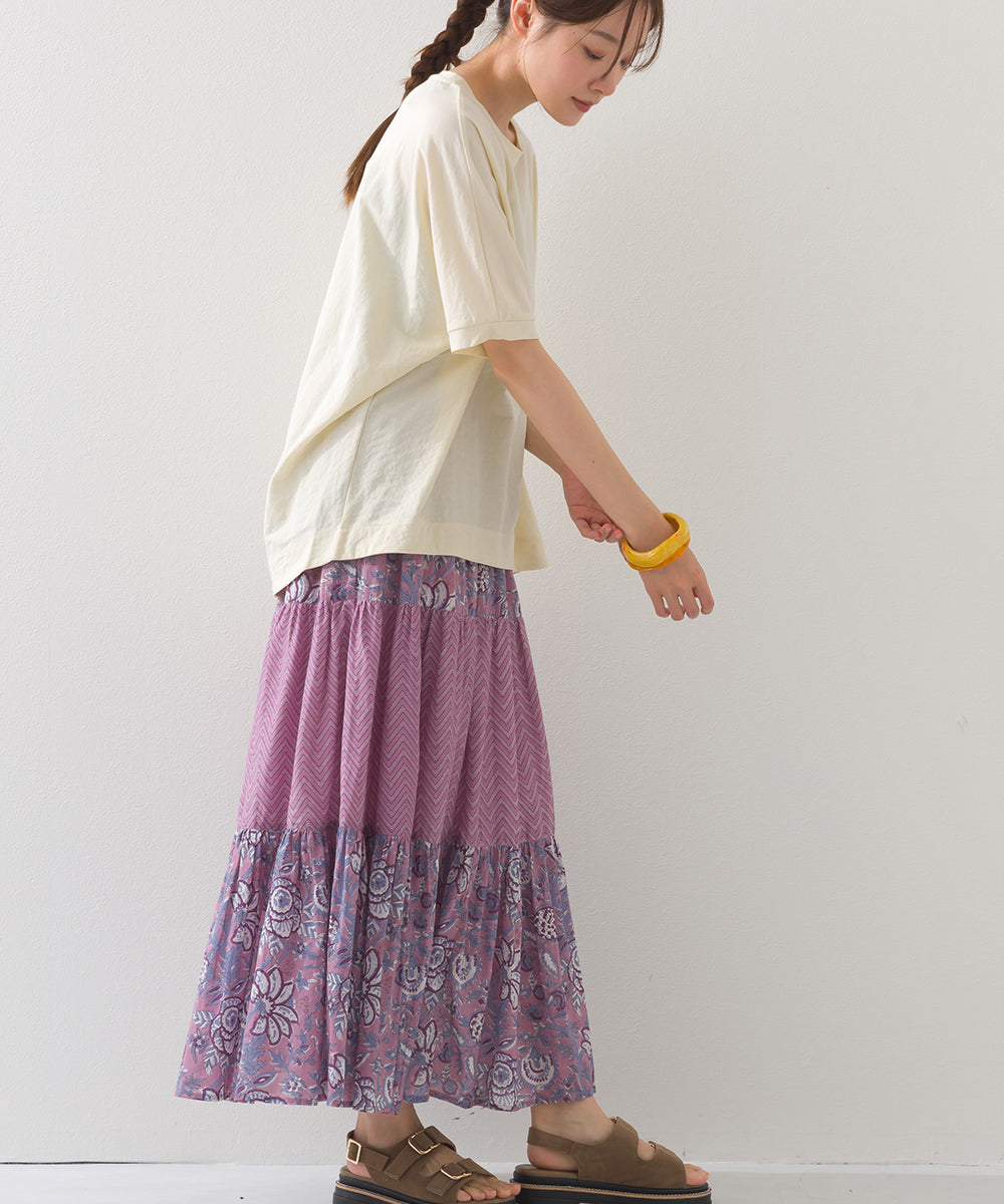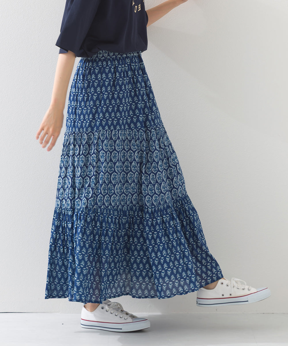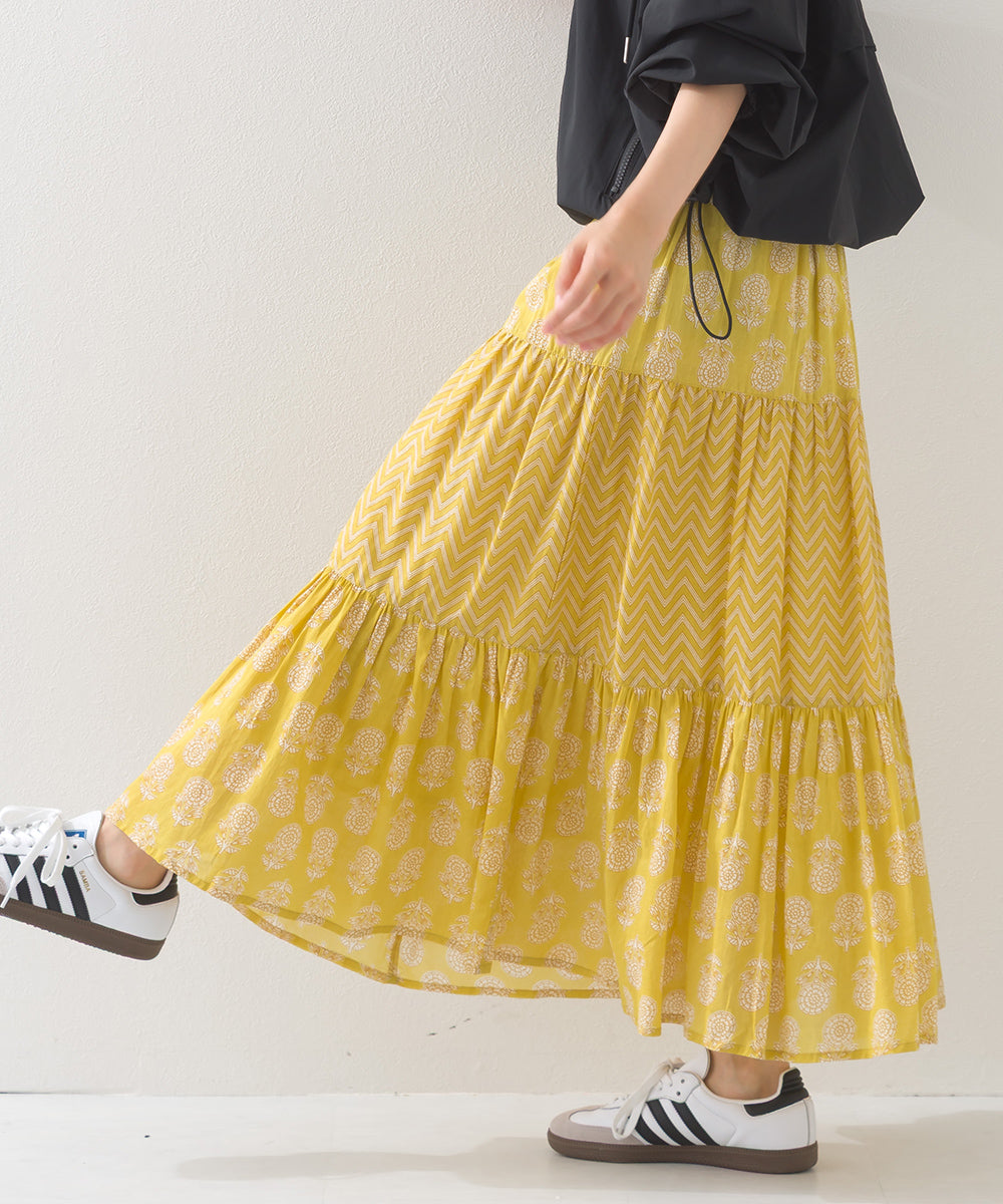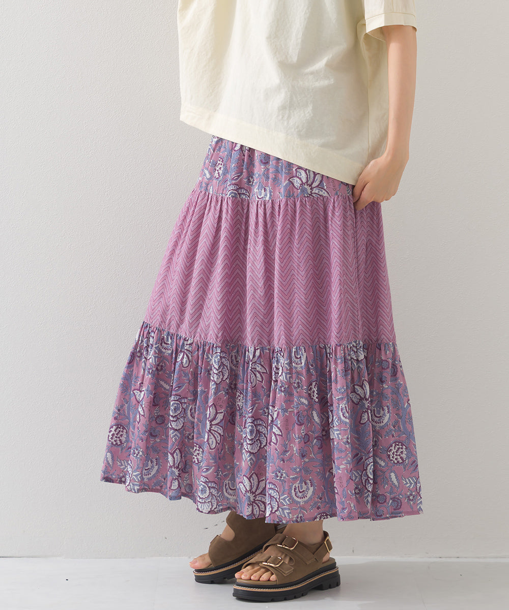 【OMNES】コットンボイル総柄切り替えティアードスカート【1525-8062】