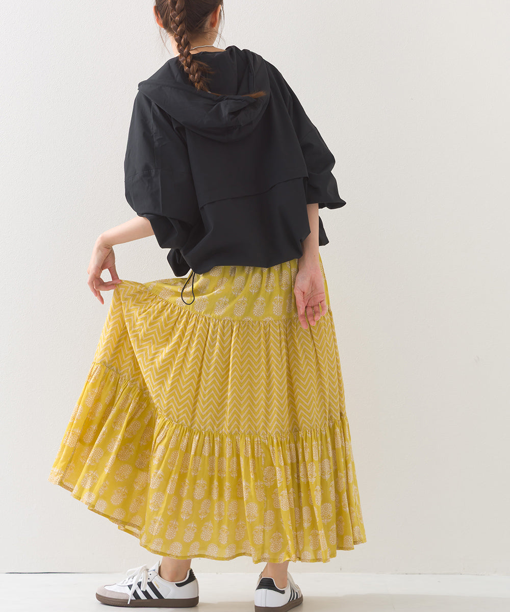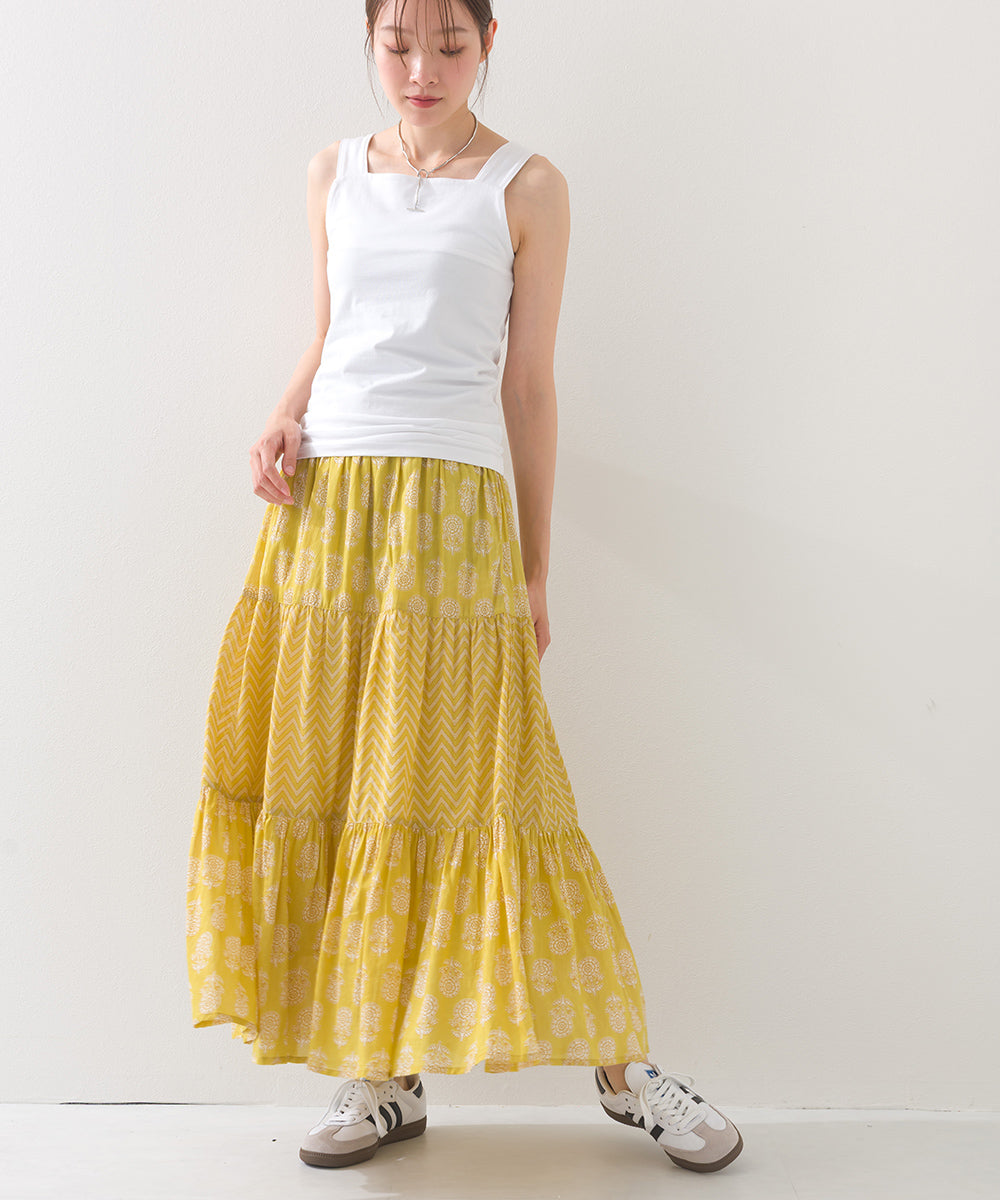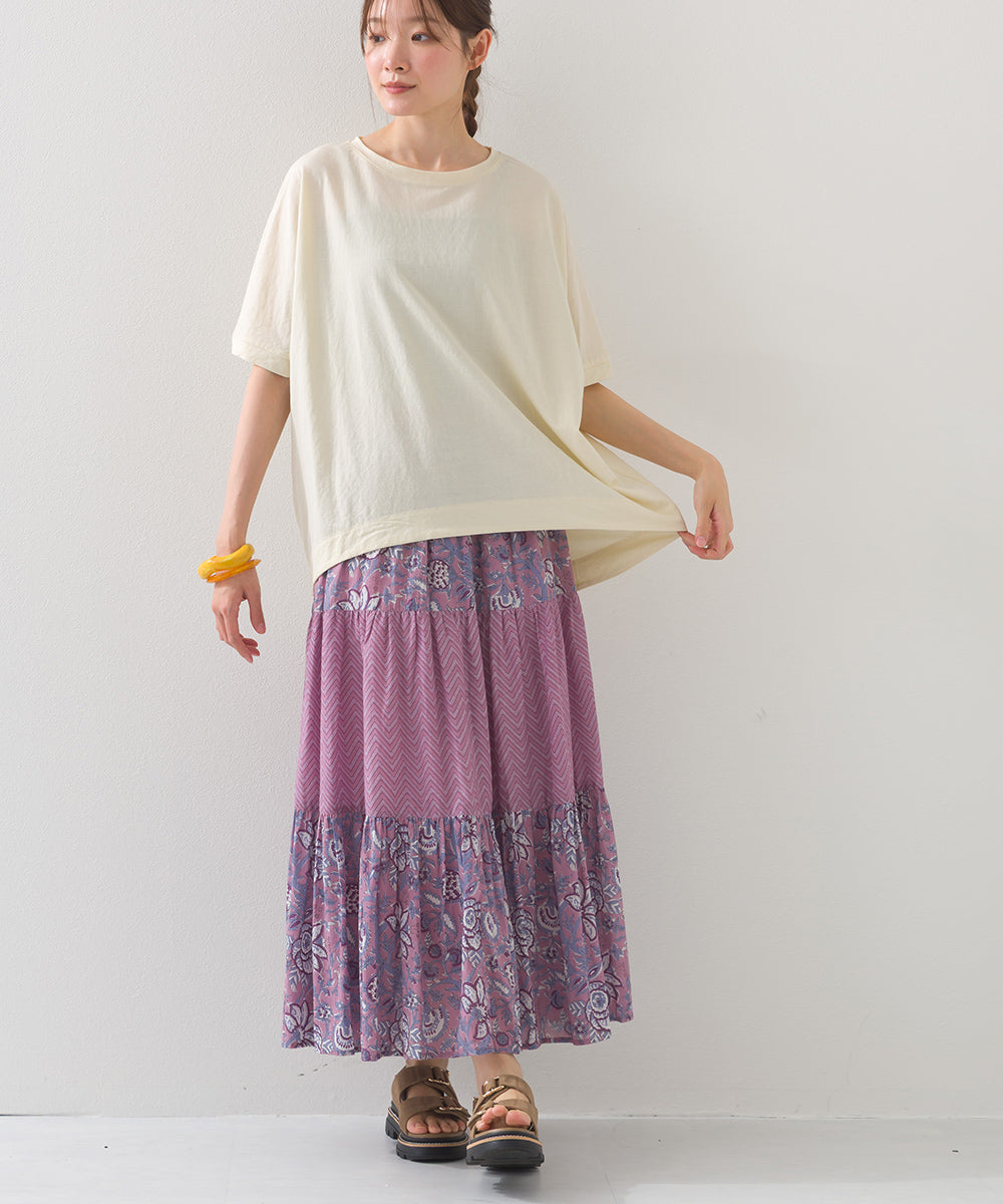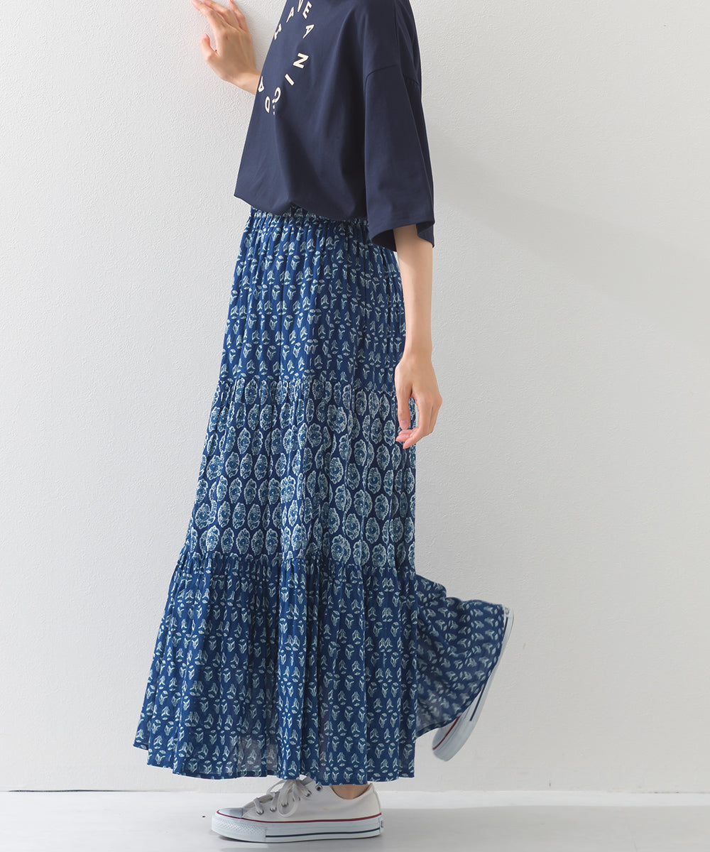 【OMNES】コットンボイル総柄切り替えティアードスカート【1525-8062】