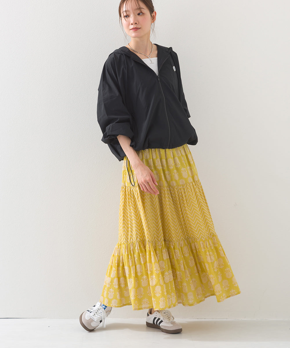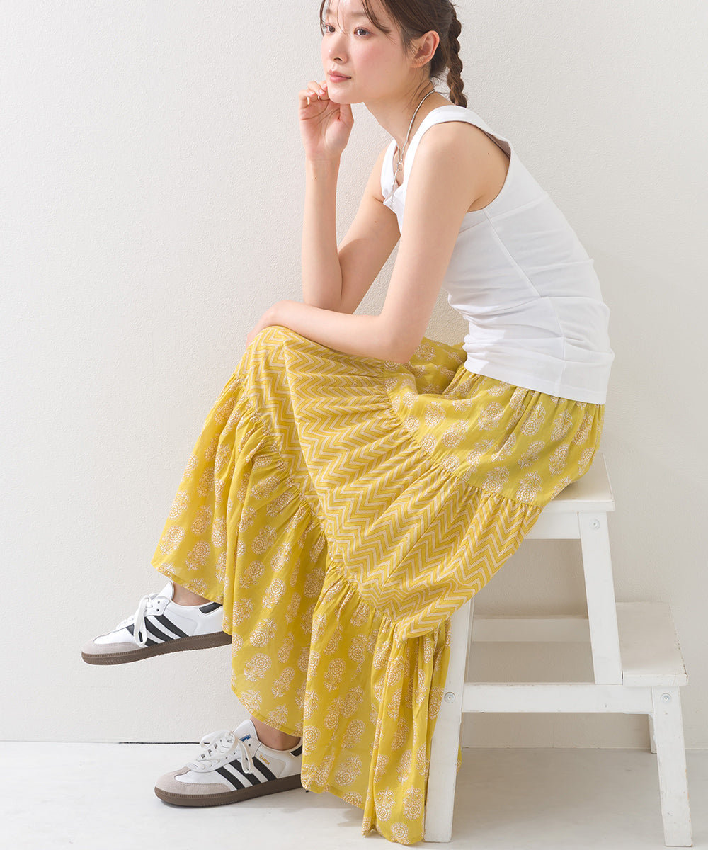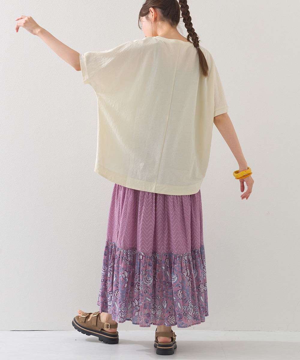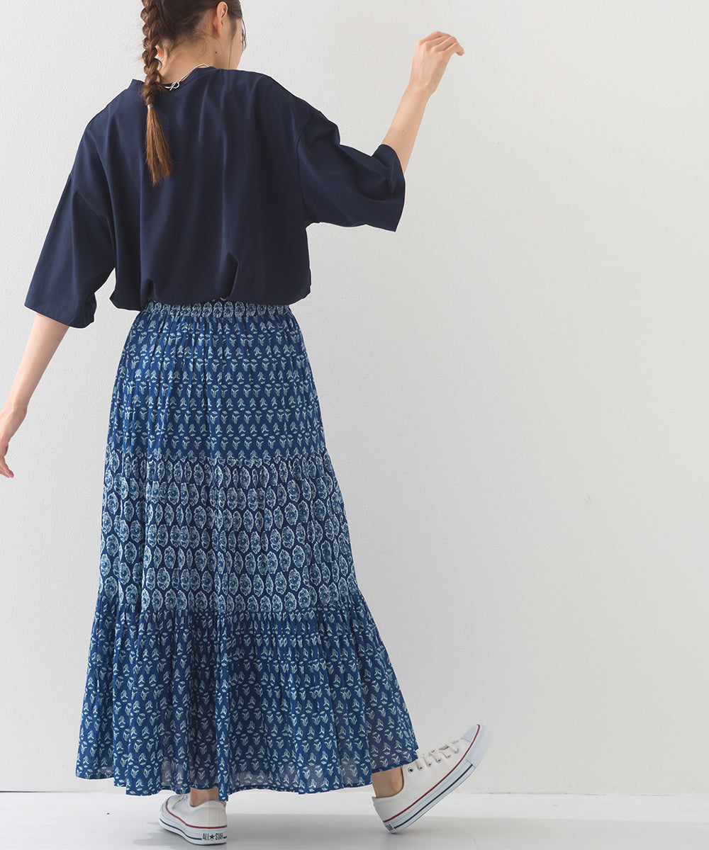 【OMNES】コットンボイル総柄切り替えティアードスカート【1525-8062】