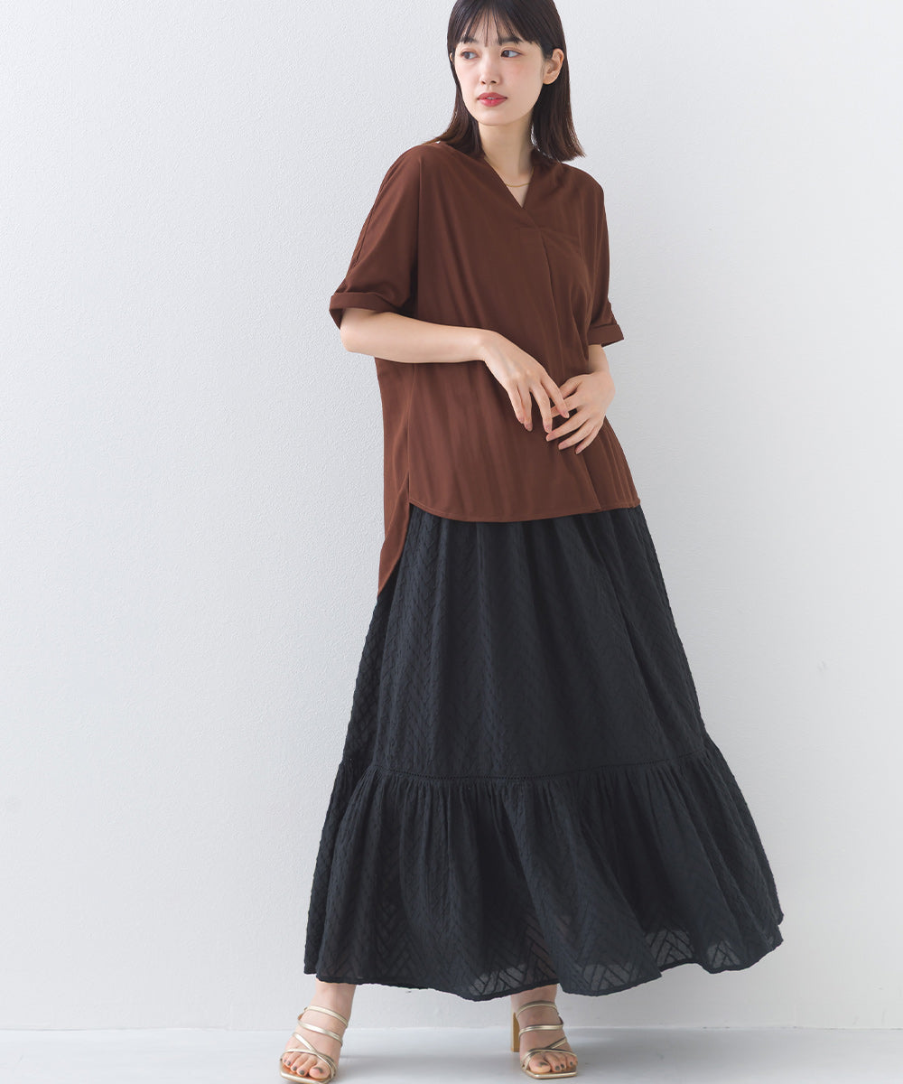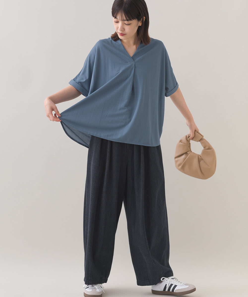 【OMNES】接触冷感 スキッパーブラウス【252W427OMN007】