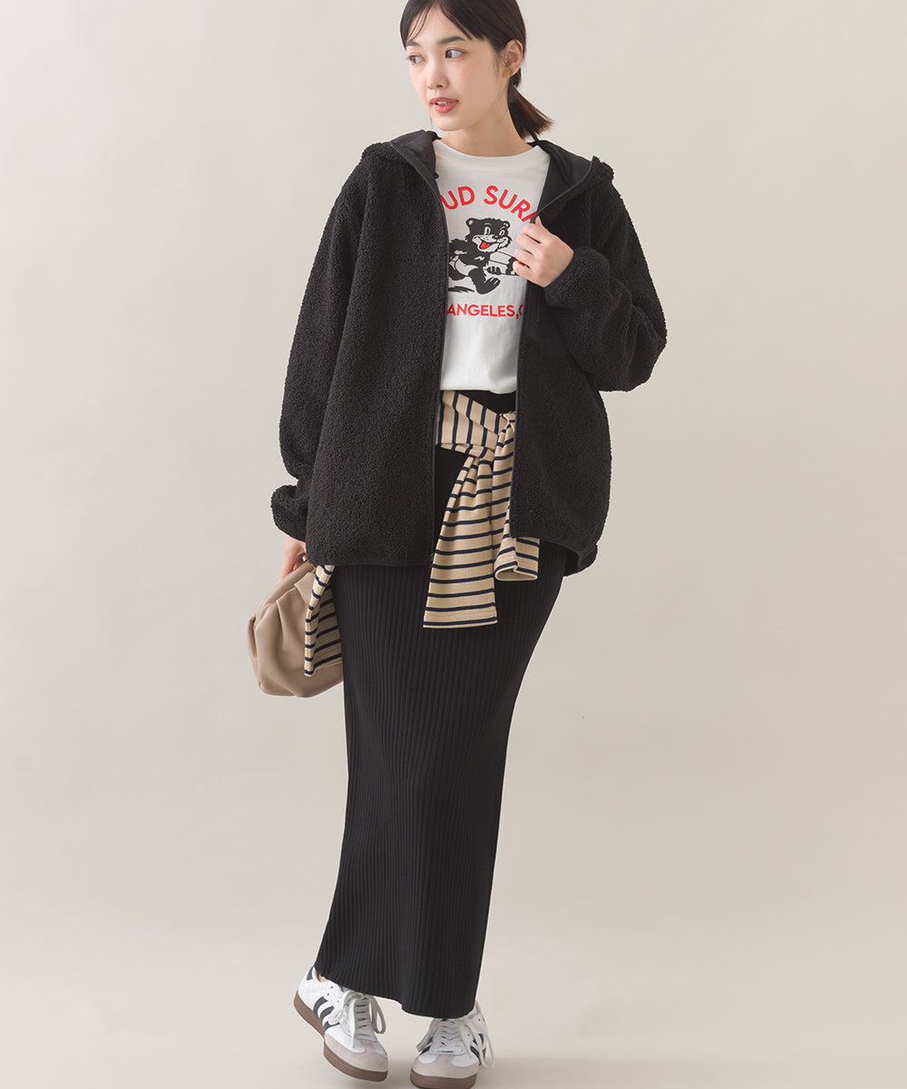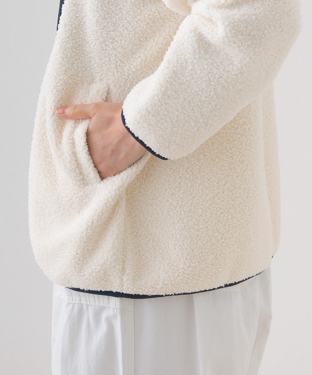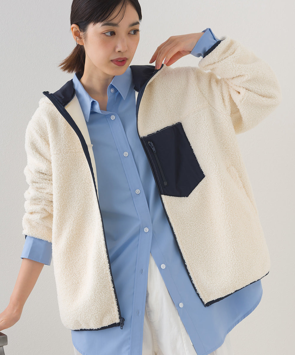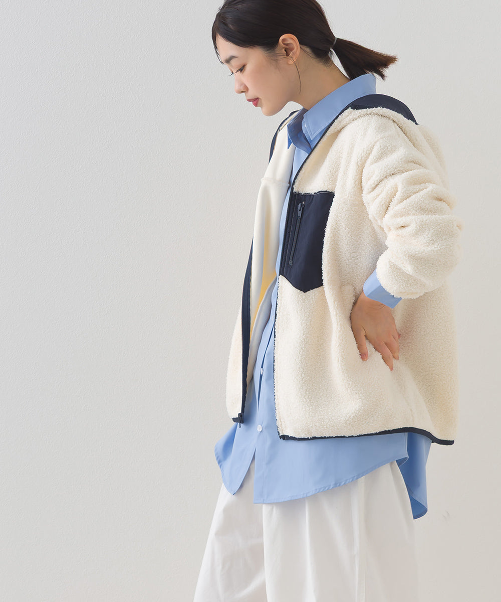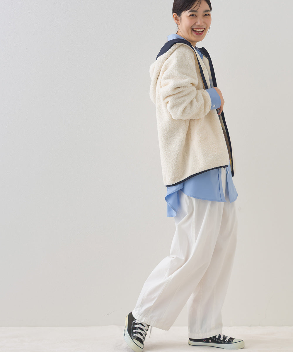 【コーディネート】 カジュアルなデニムパンツと合わせて、ラフながらも大人の余裕を感じるスタイリングに。 インナーにはシンプルなハイネックニットやロンTを合わせることで、 ボアのもこもこ感がより引き立ちます。足元はスニーカーでアクティブに、 またはきれいめシューズで女性らしさをプラスするのもオススメです。