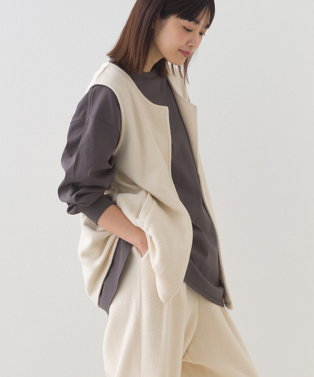 【OMNES】フェルトノーカラージレベスト【253W427OMN028】