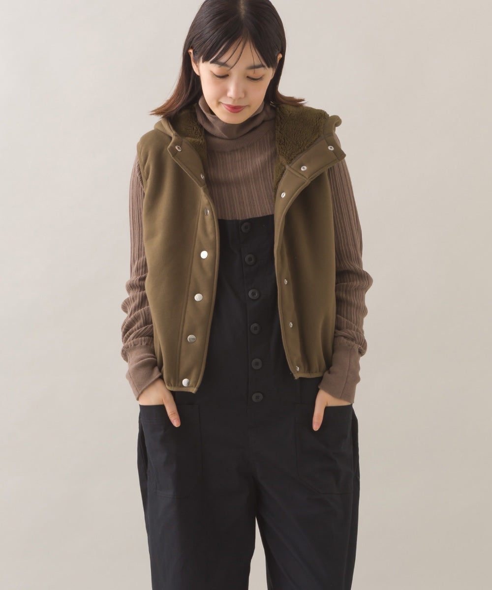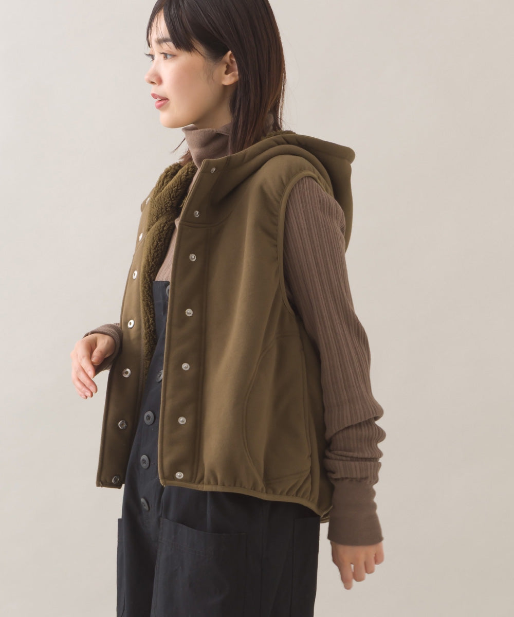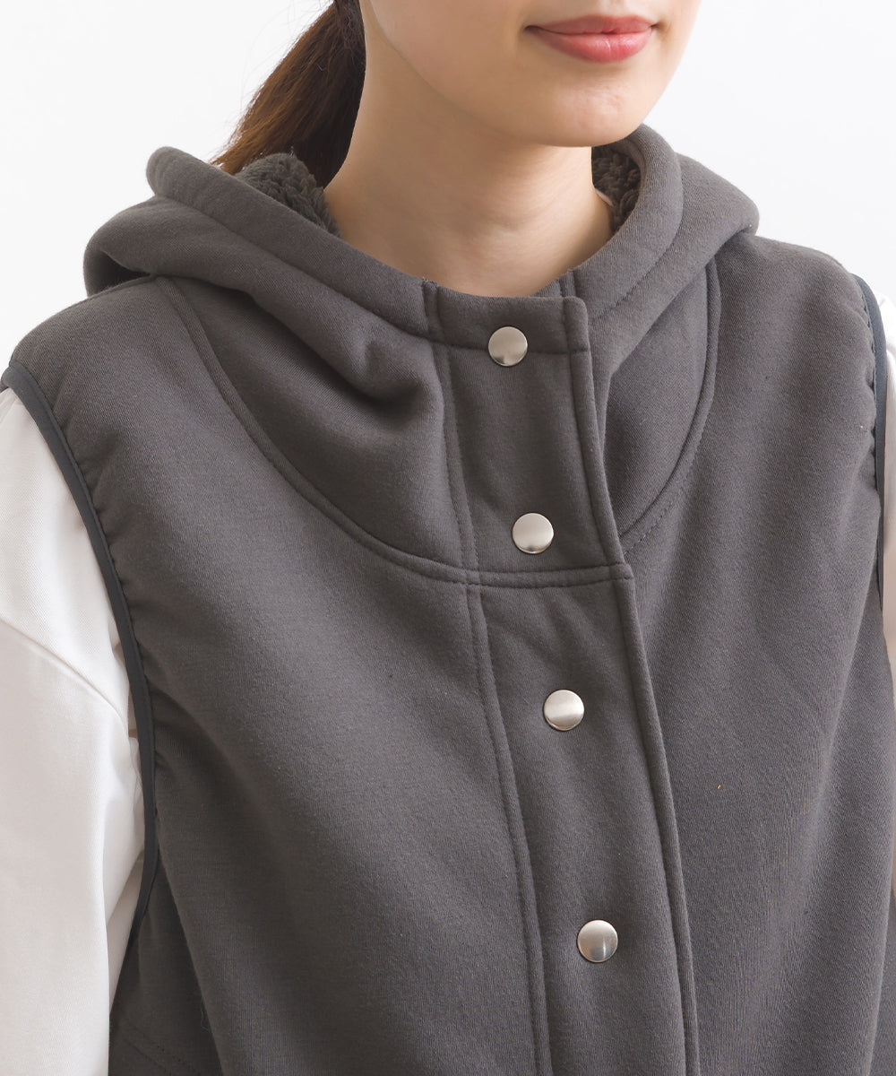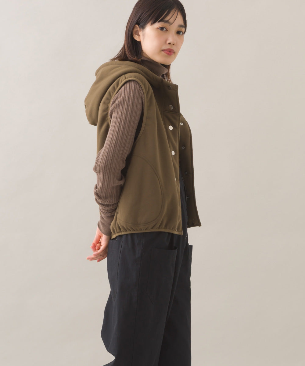 【OMNES】裏起毛ボンディングボタンショート丈フードベスト【253W427OMN030】