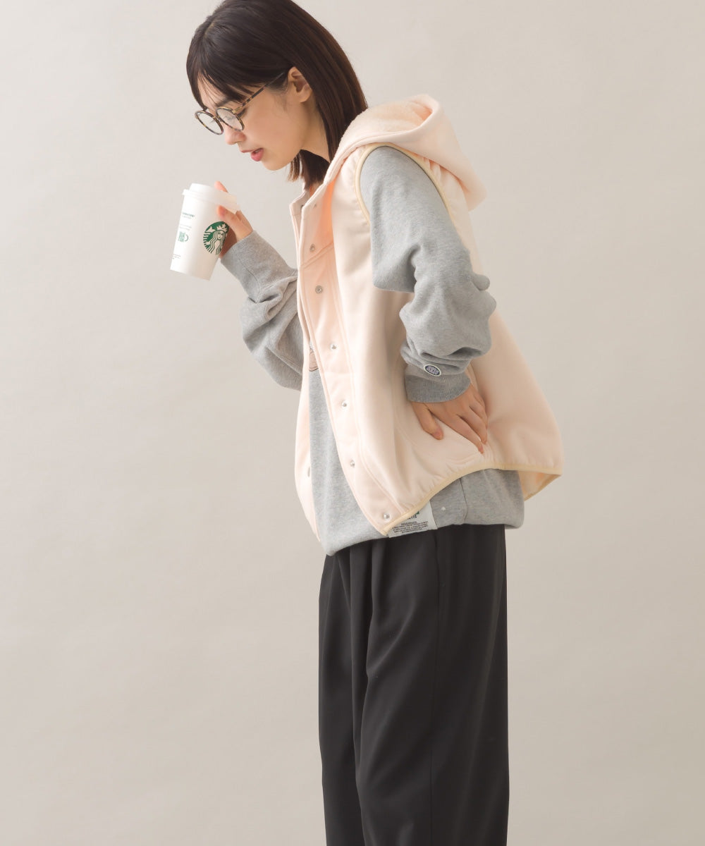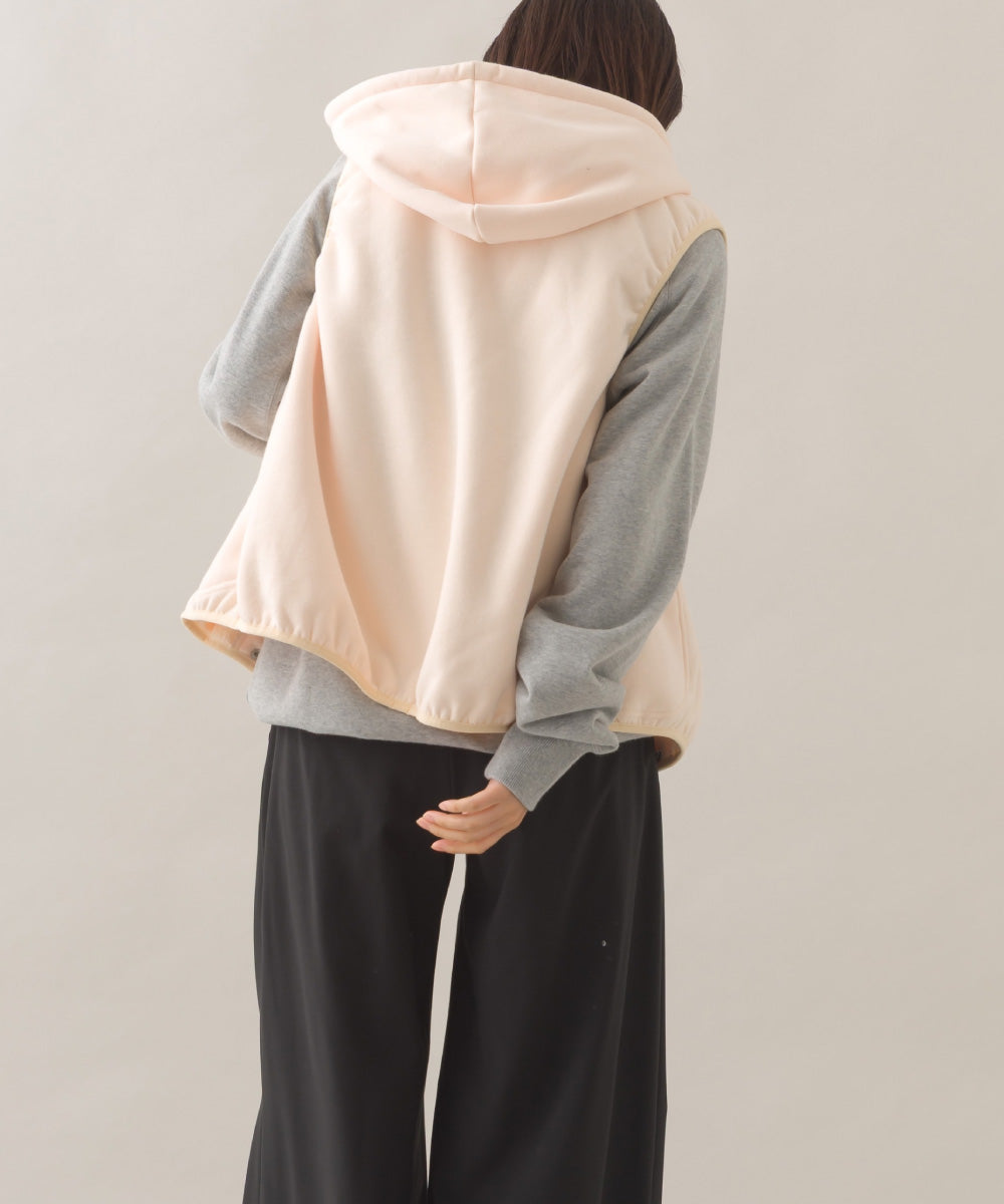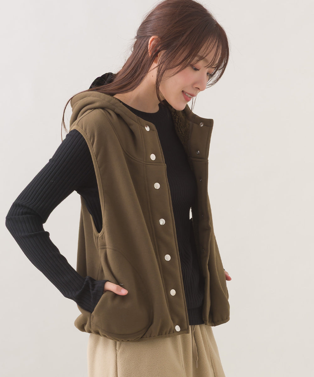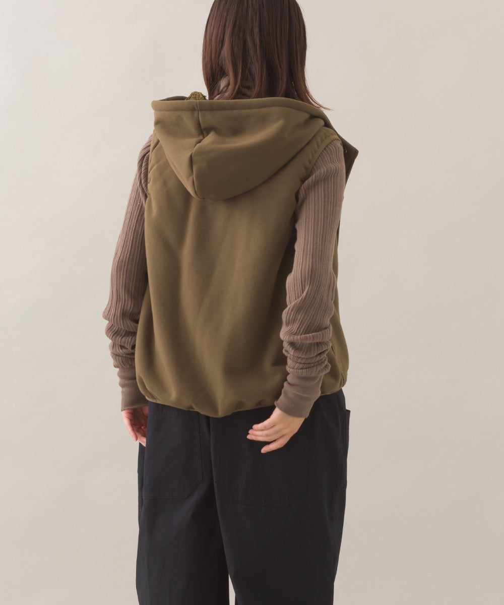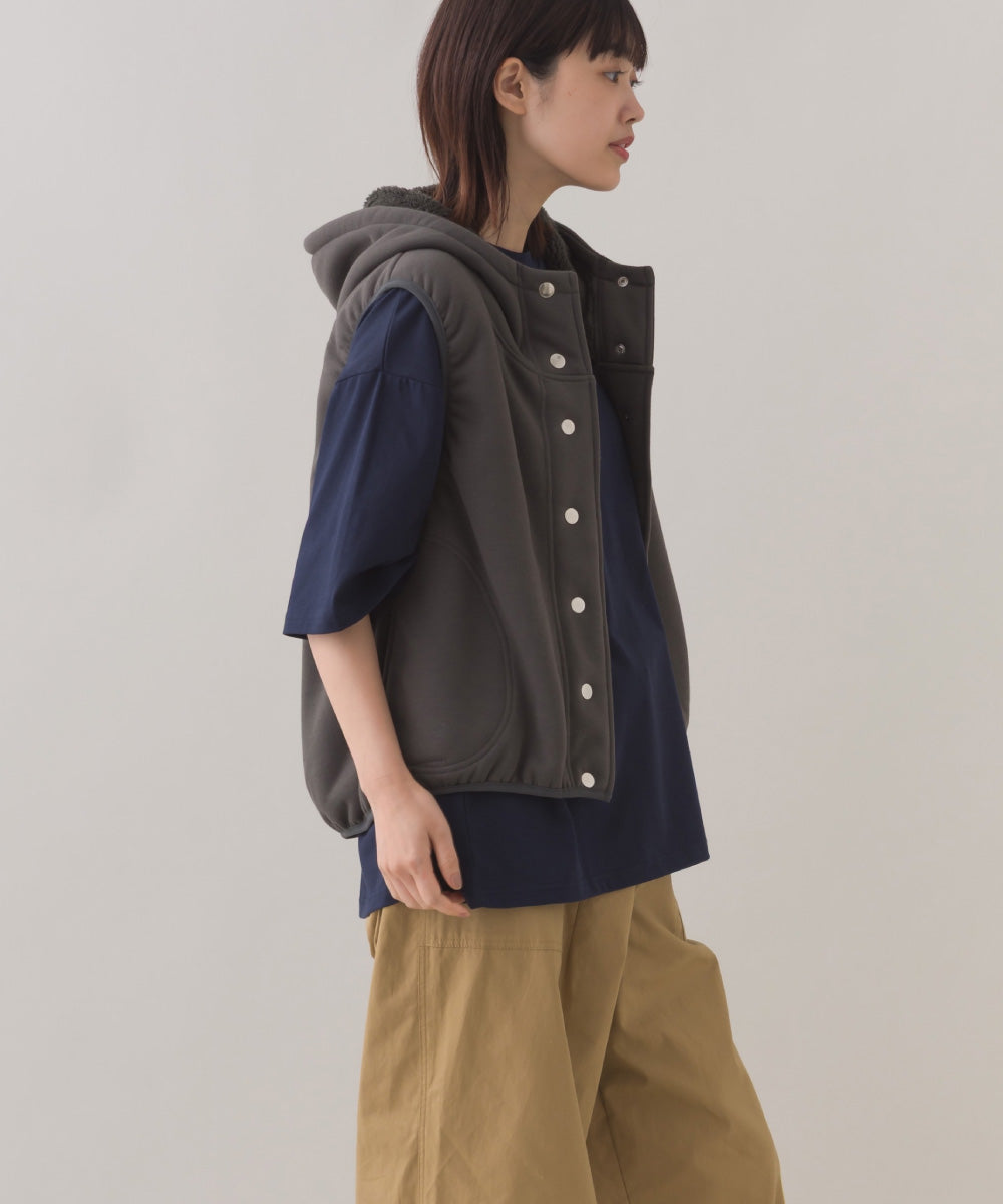 【OMNES】裏起毛ボンディングボタンショート丈フードベスト【253W427OMN030】