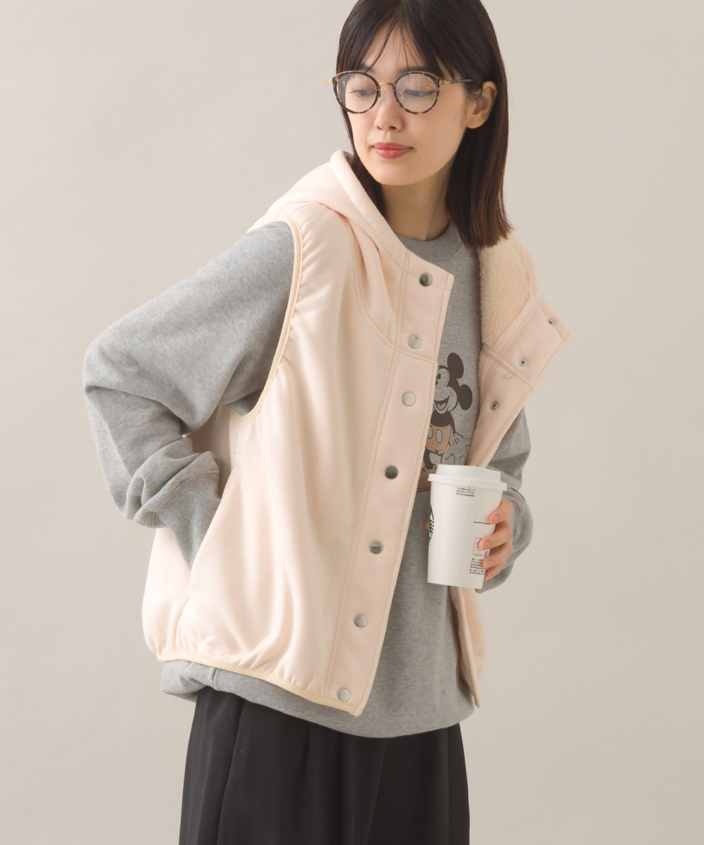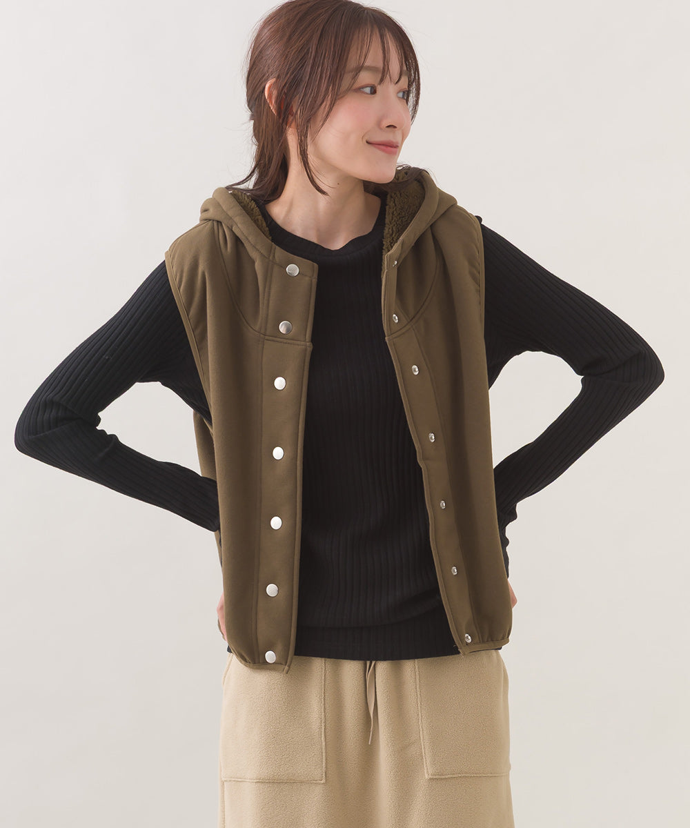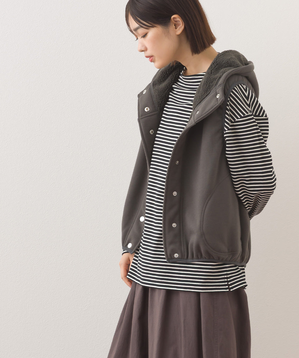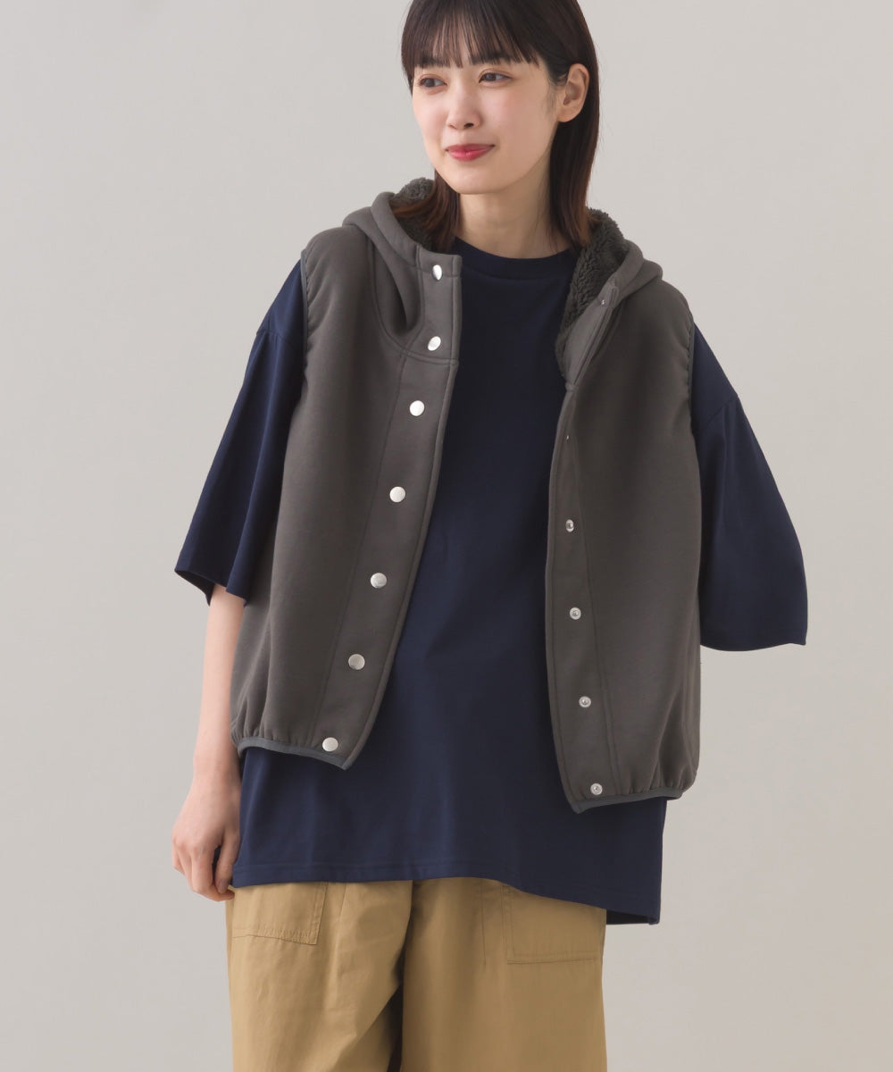 【OMNES】裏起毛ボンディングボタンショート丈フードベスト【253W427OMN030】