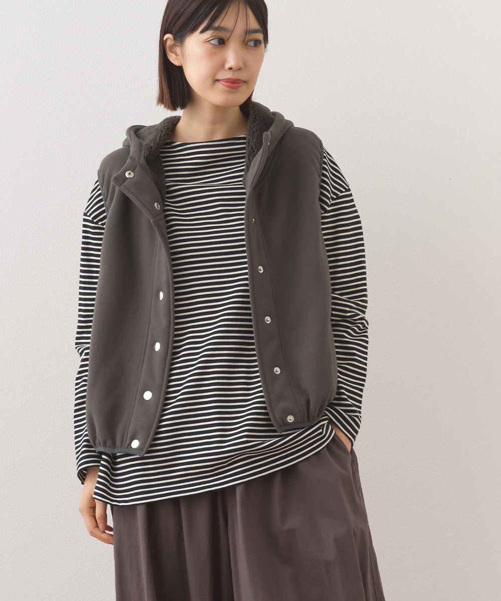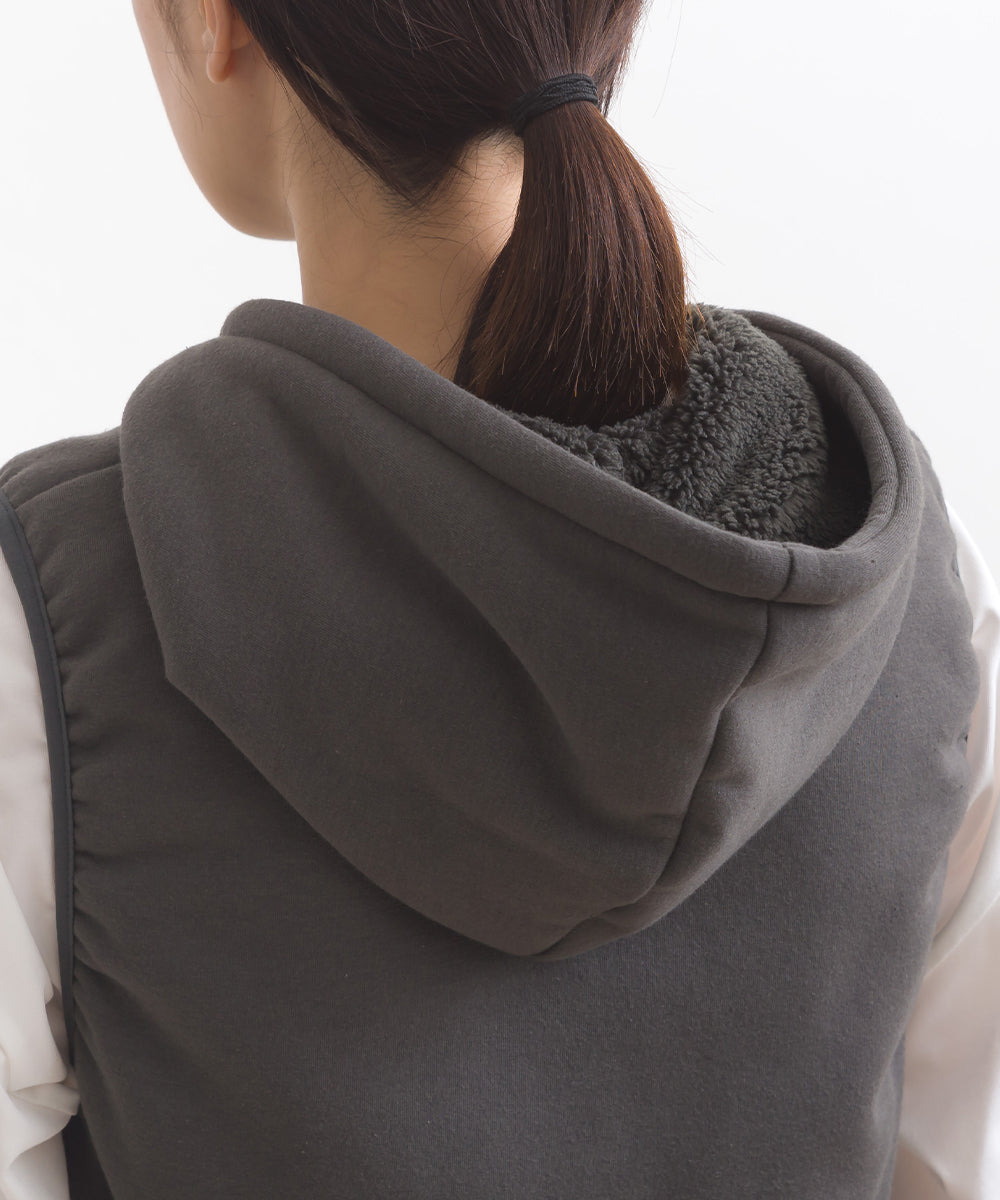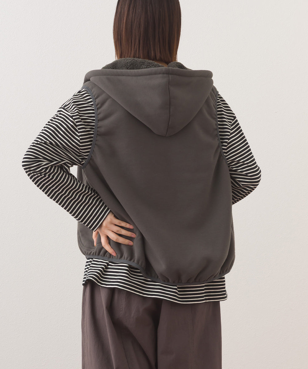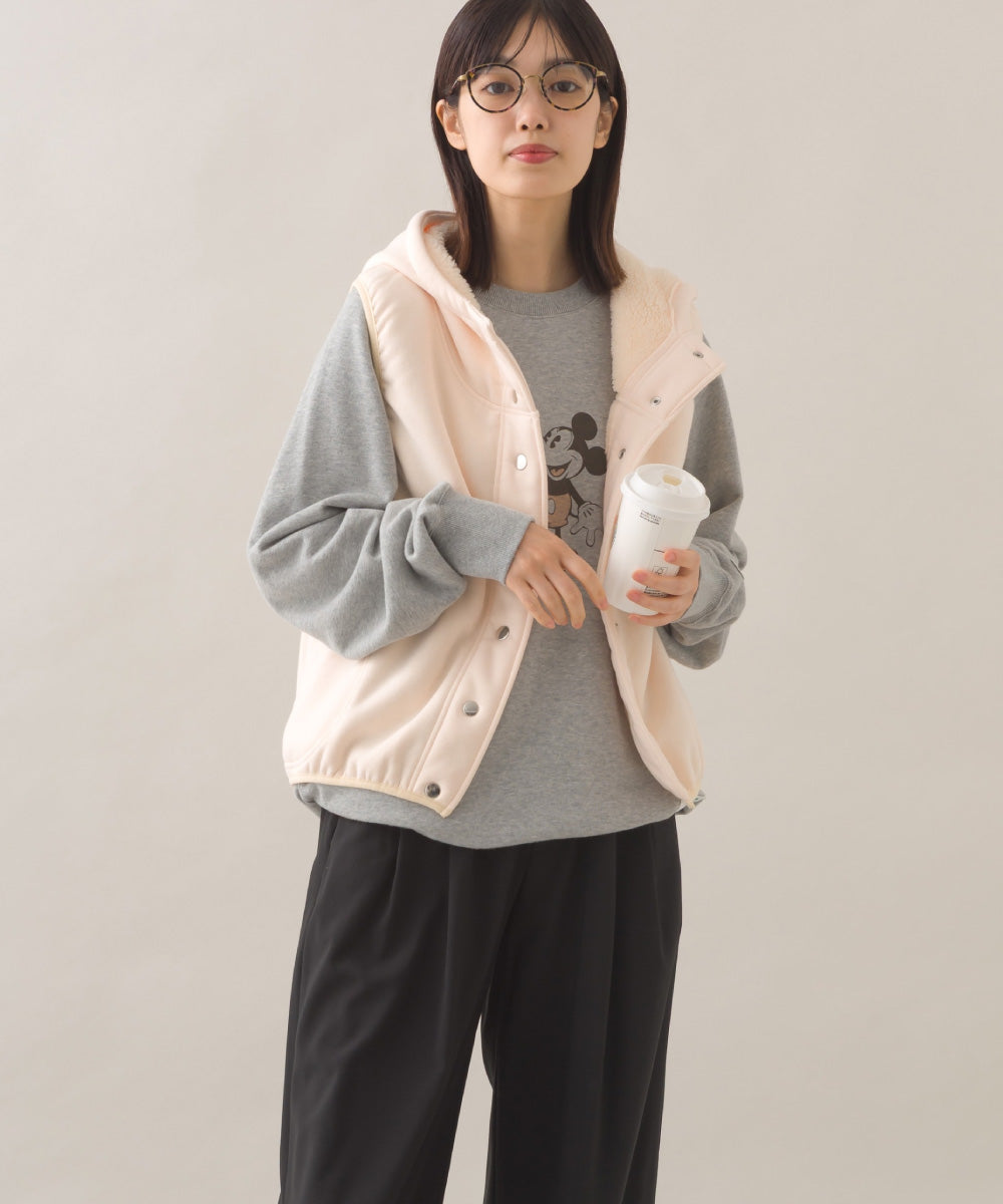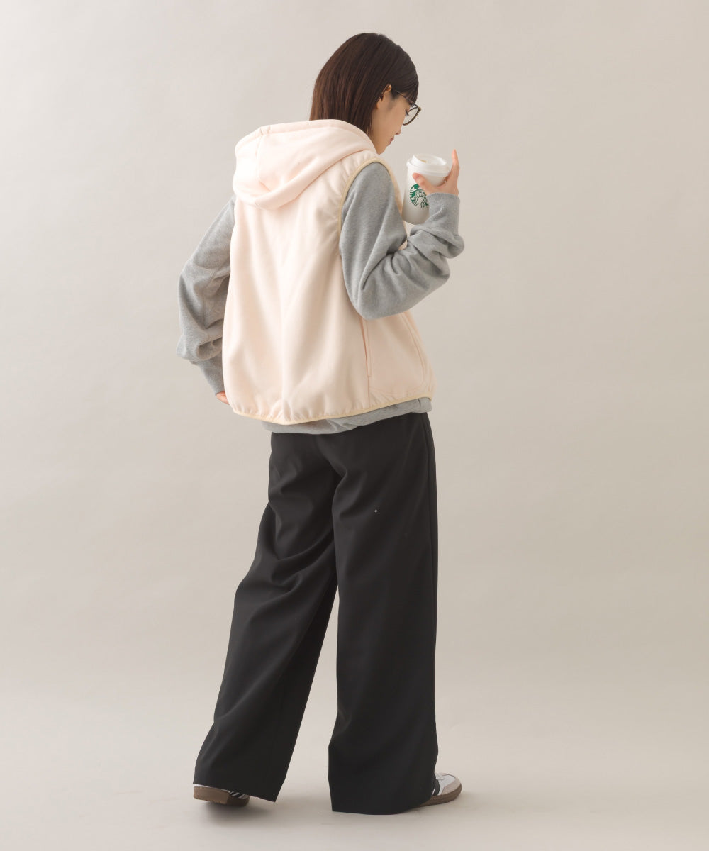 【OMNES】裏起毛ボンディングボタンショート丈フードベスト【253W427OMN030】