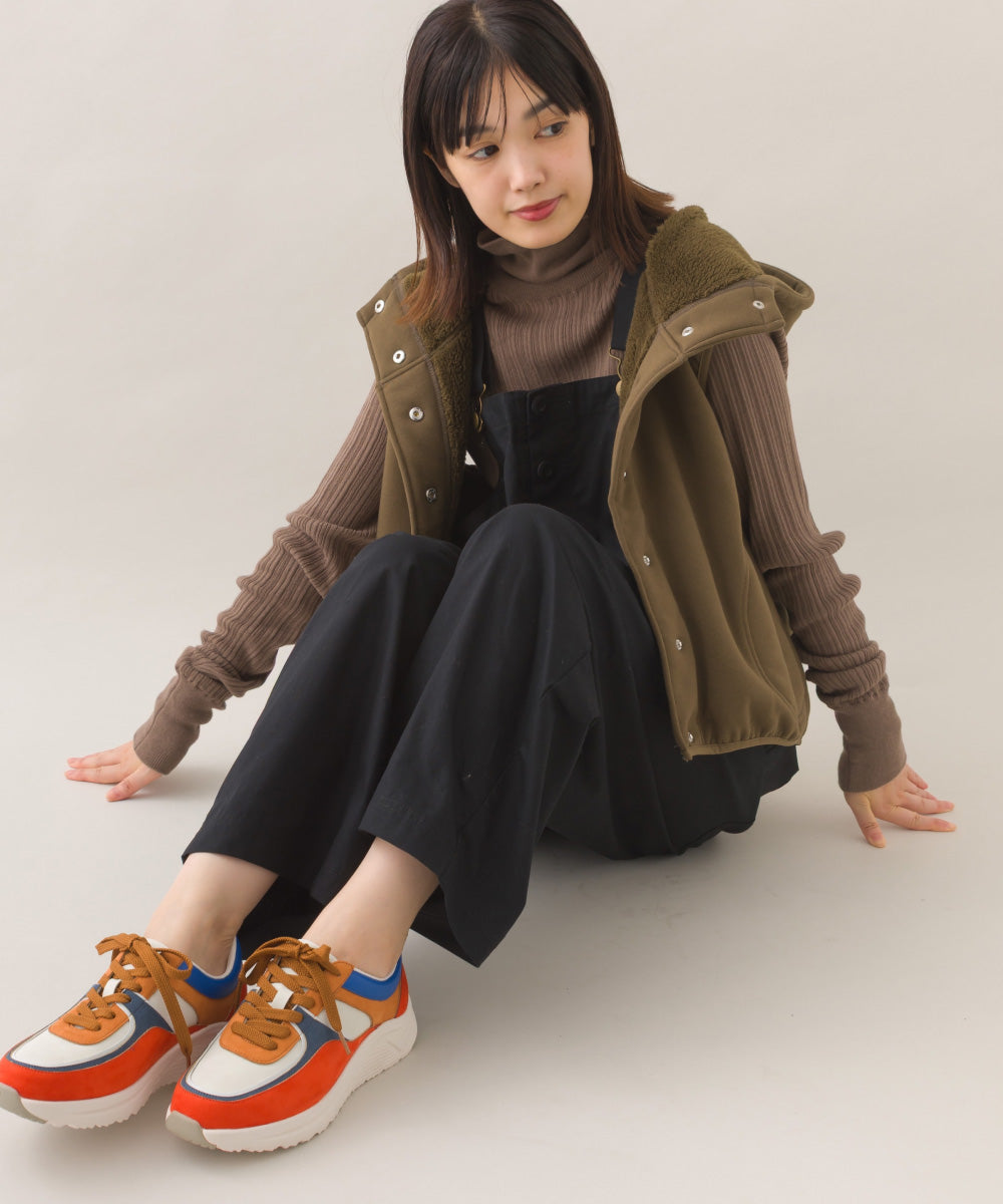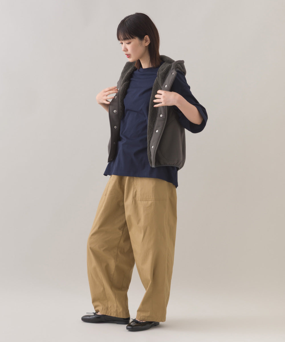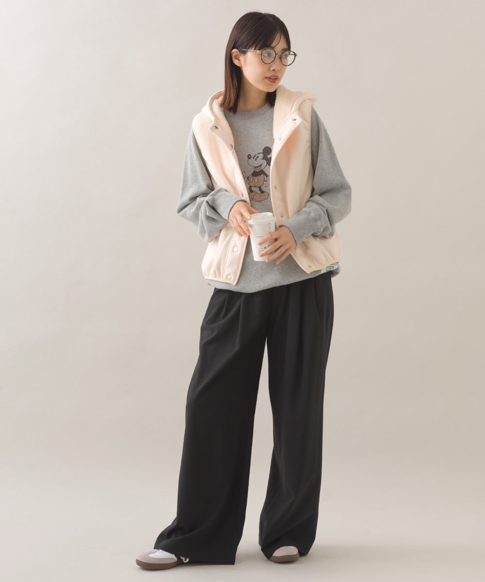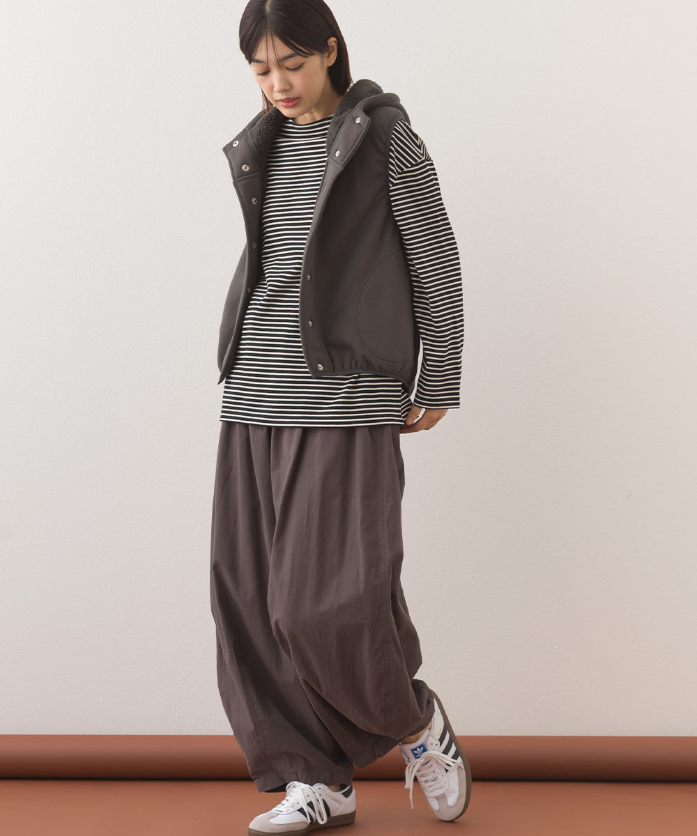 【OMNES】裏起毛ボンディングボタンショート丈フードベスト【253W427OMN030】