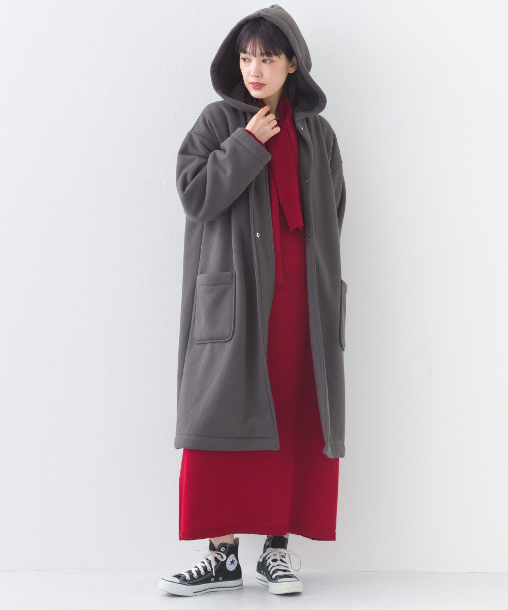 【OMNES】裏起毛ボンディングボタンフードコートアウター【253W427OMN032】