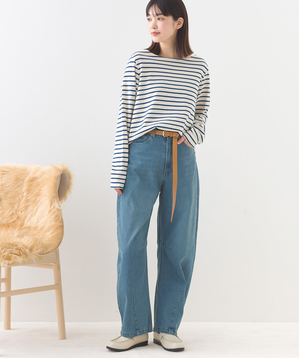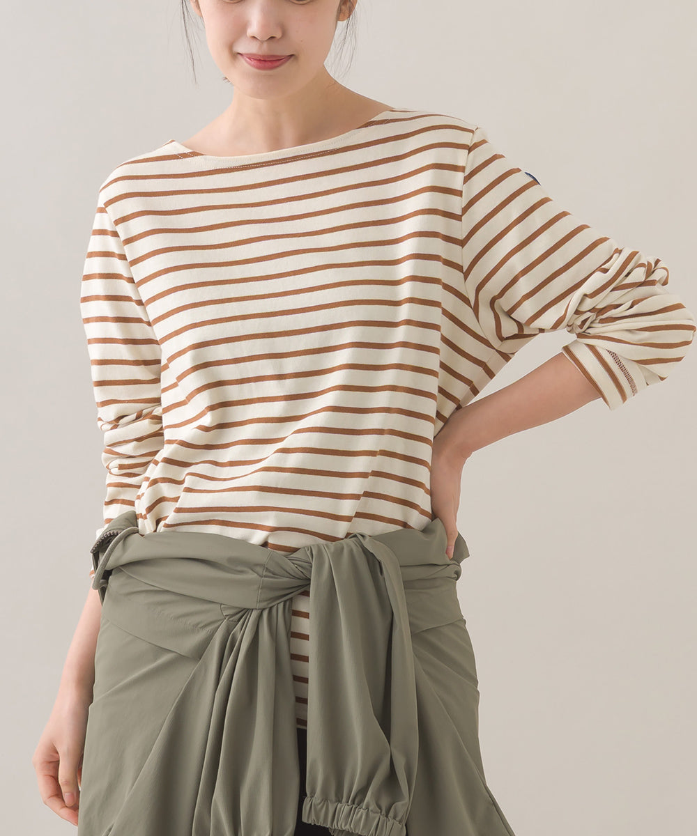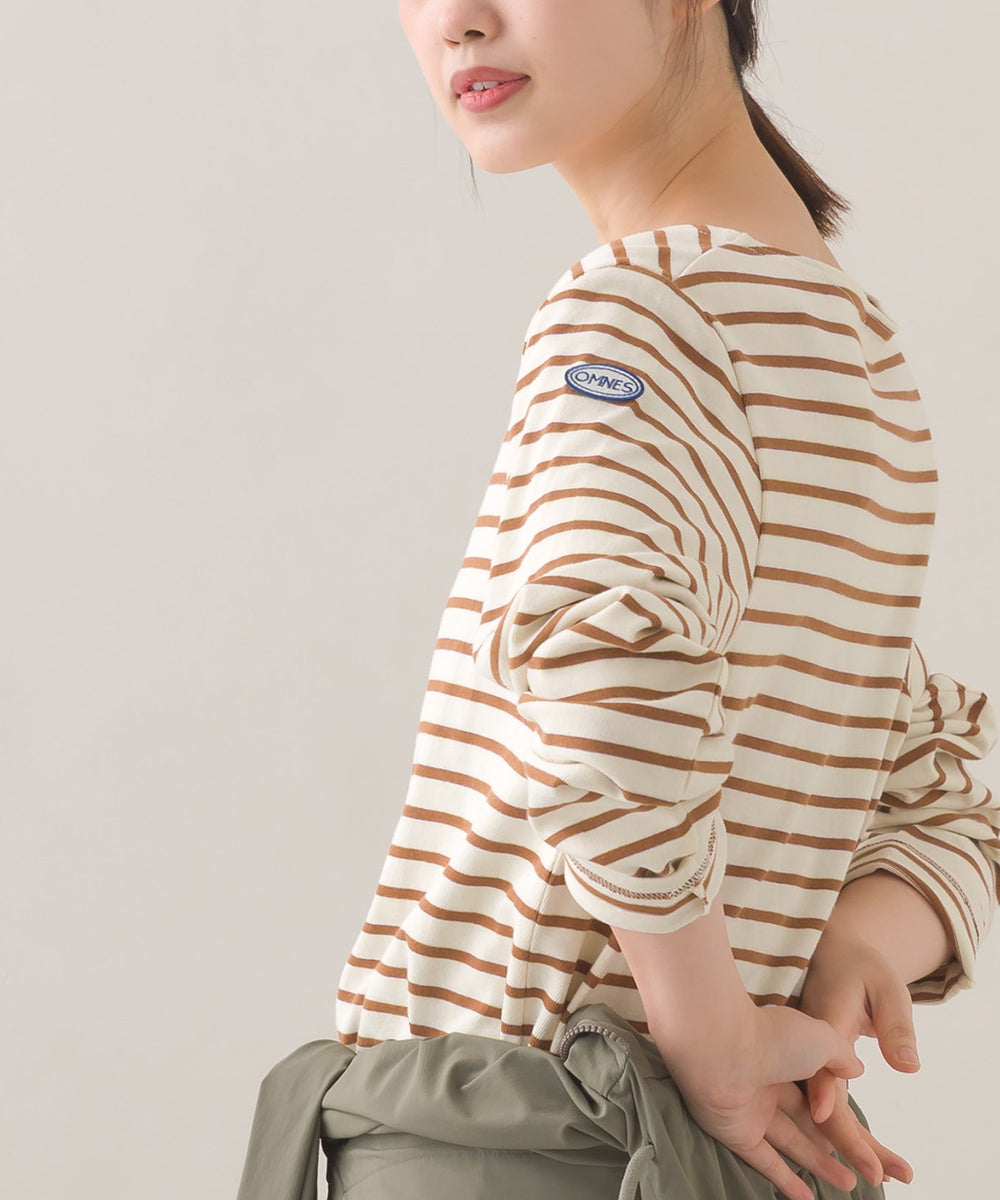 【OMNES】コットン長袖ボーダーTシャツ【253W427OMN048】