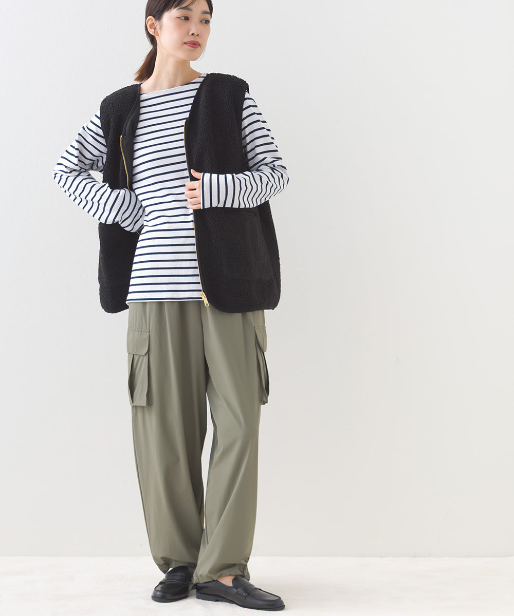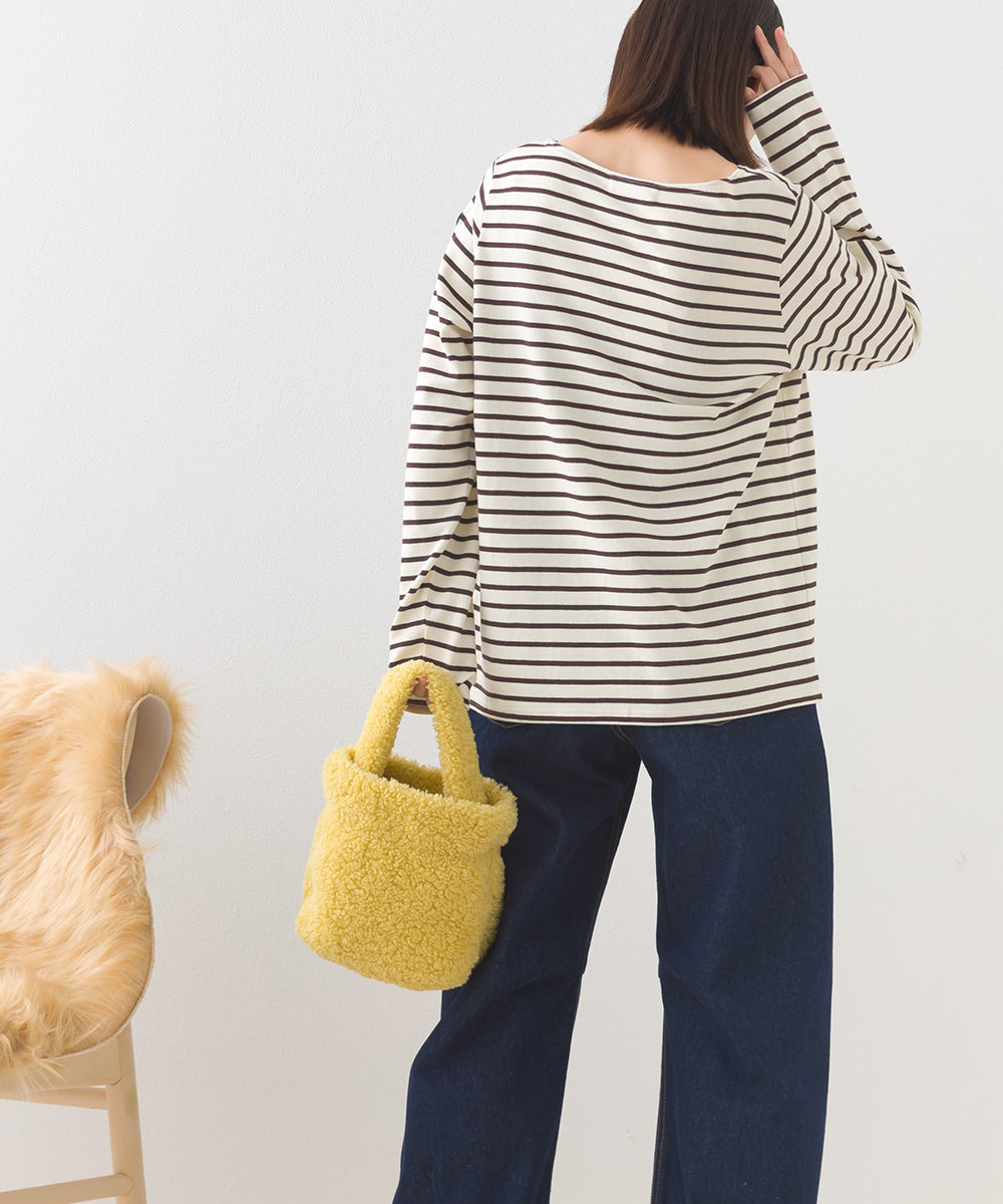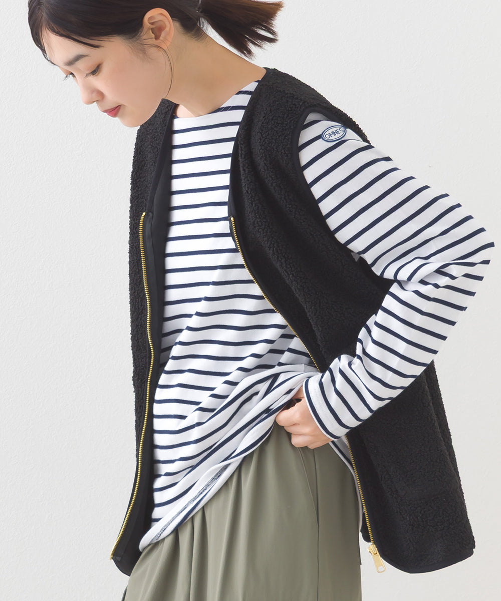 【OMNES】コットン長袖ボーダーTシャツ【253W427OMN048】