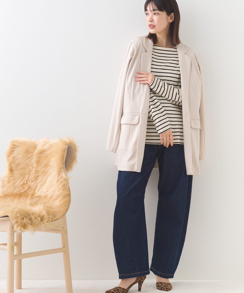 【コーディネート】 デニムはもちろん、スカートとも好相性の万能アイテムです。 足元は、バレエシューズやキャンパススニーカーが好相性◎ 首元の開きが気になる際は、シアータートルをインすると良いです。