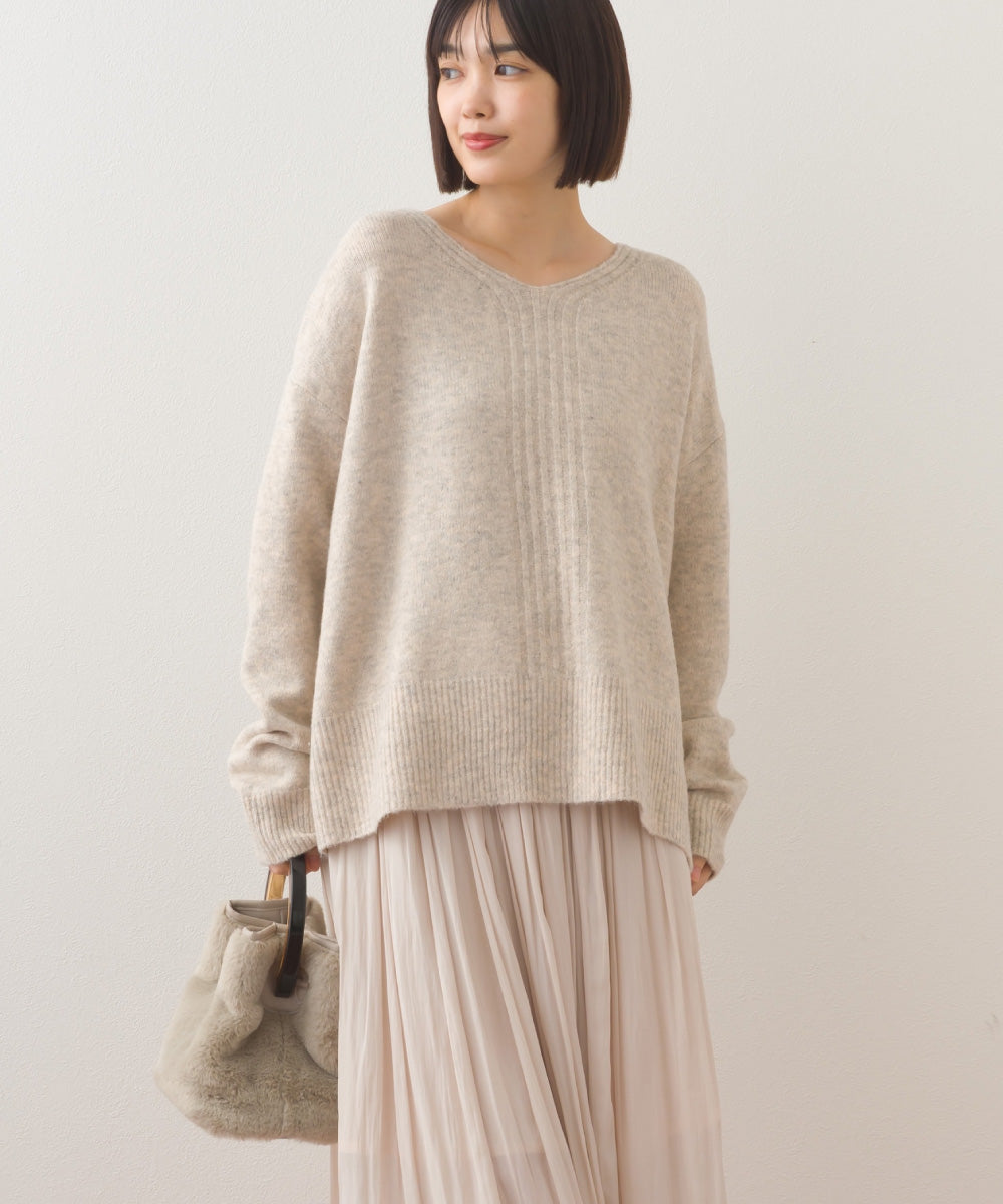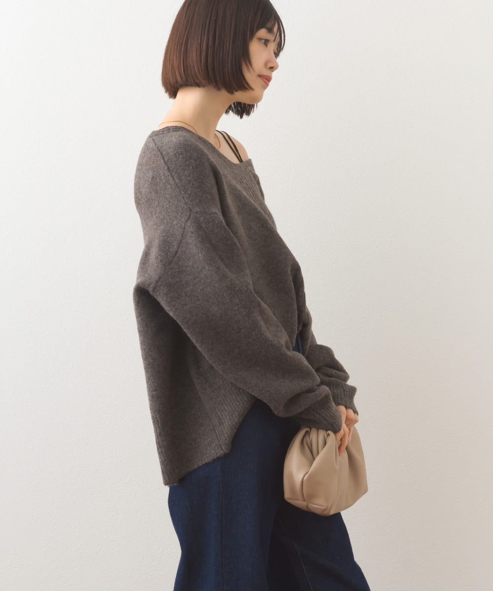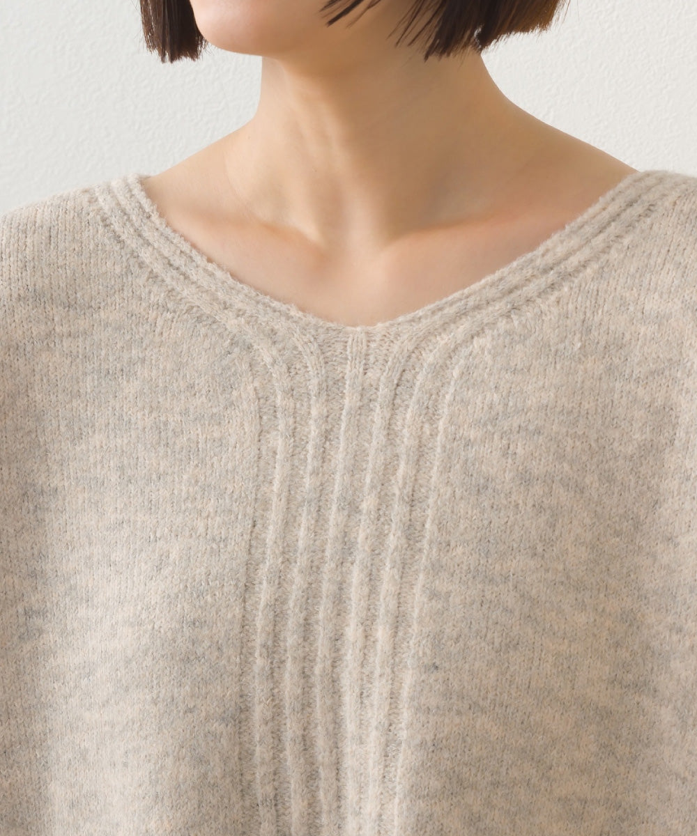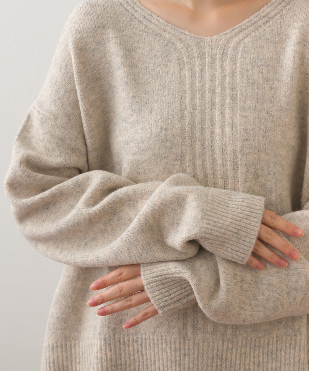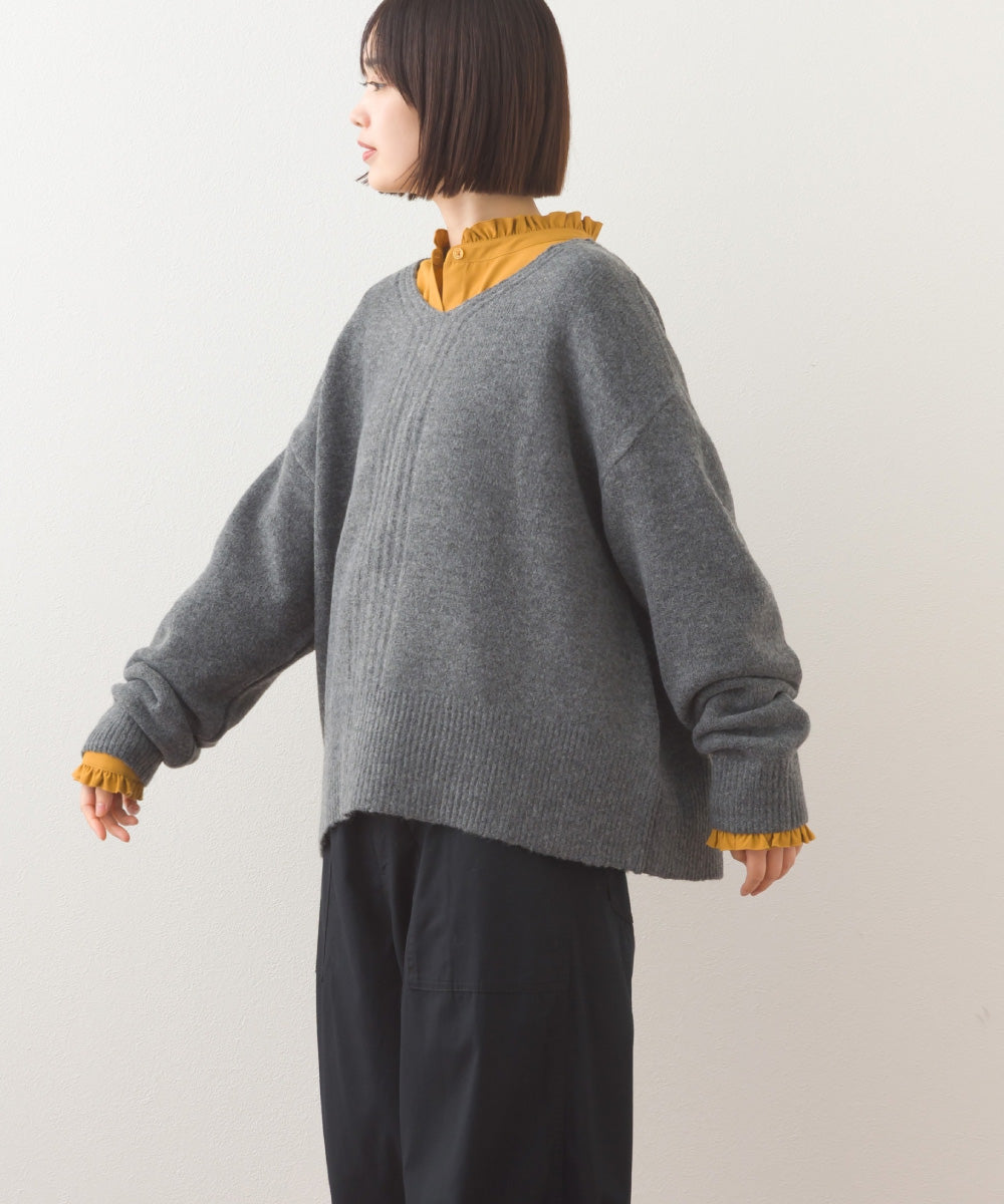 【OMNES】メランジ Vネック オーバーシルエットニットプルオーバー【253W427OMN055】