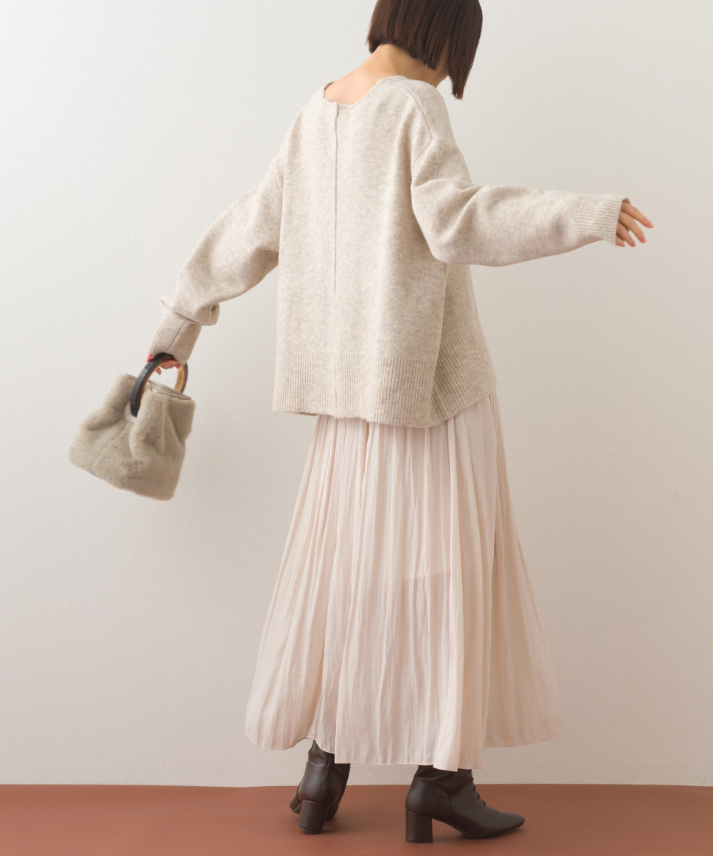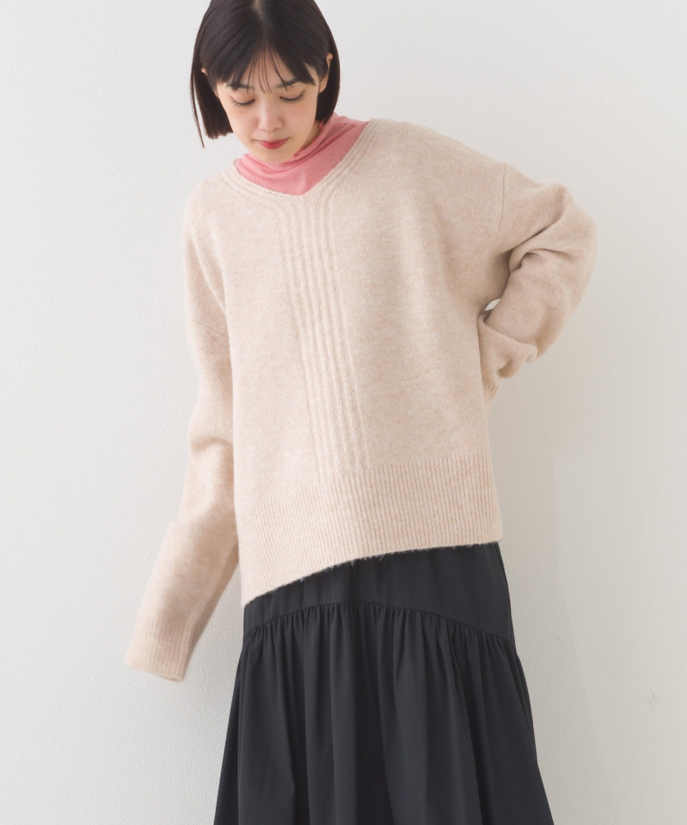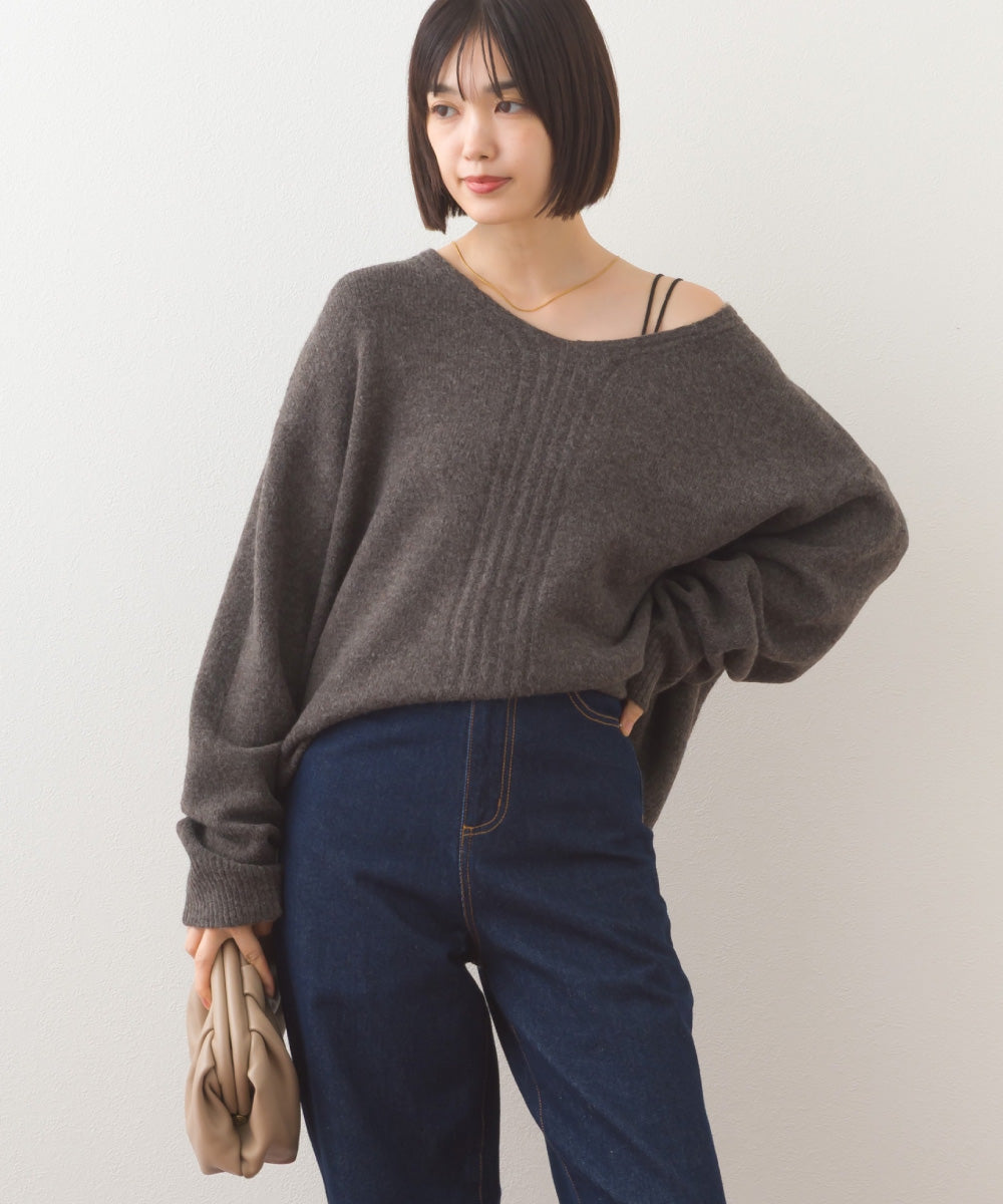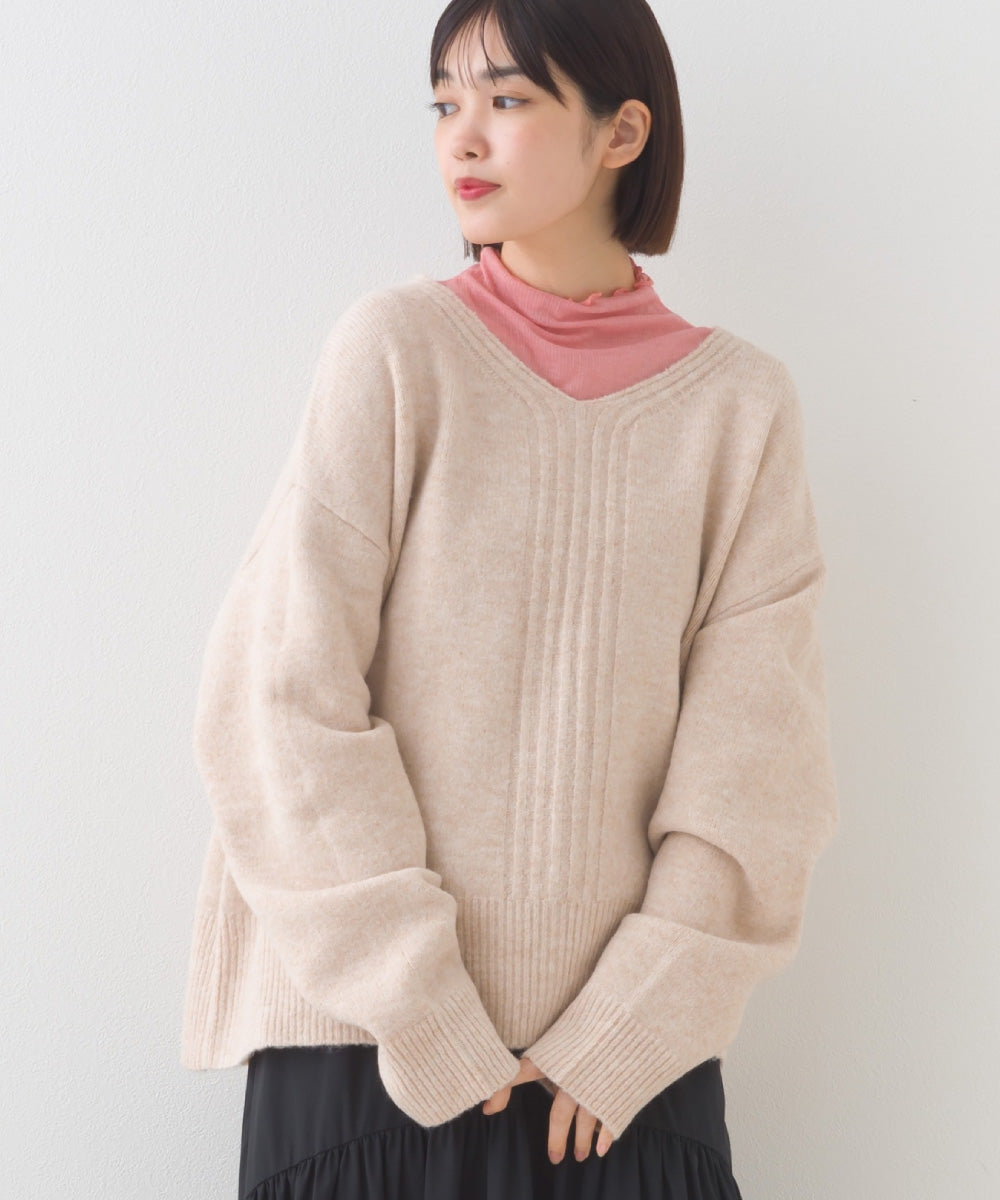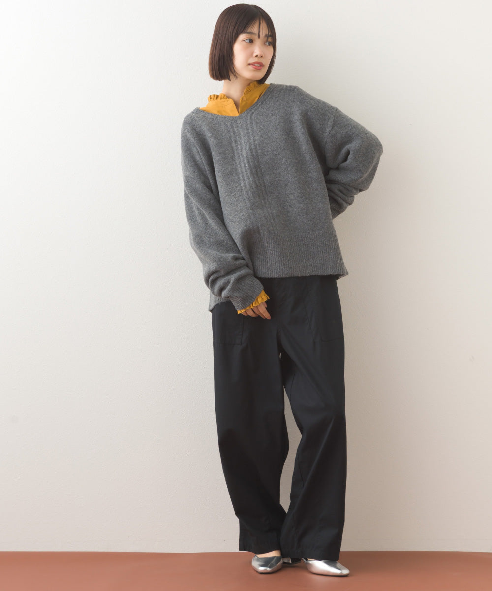 【OMNES】メランジ Vネック オーバーシルエットニットプルオーバー【253W427OMN055】