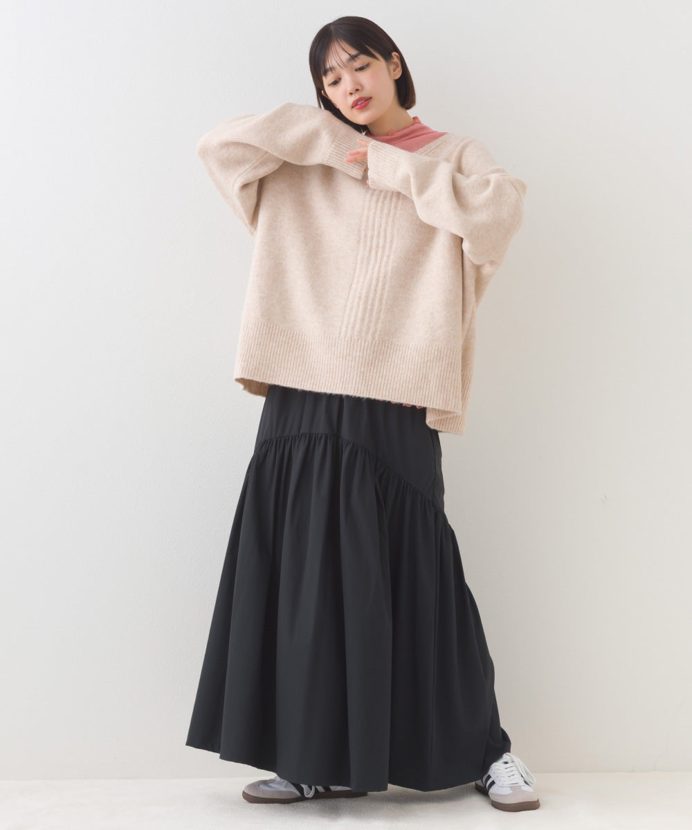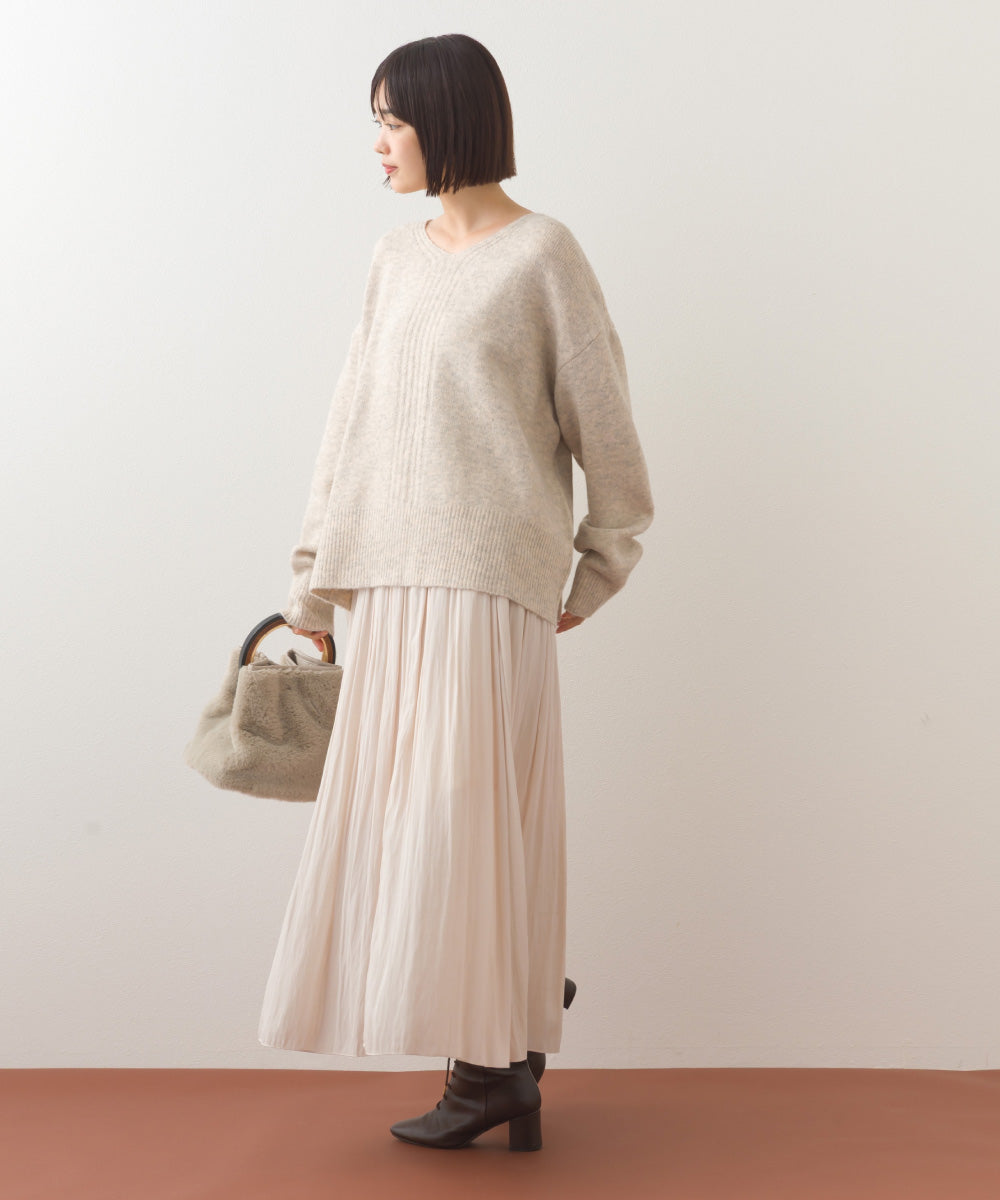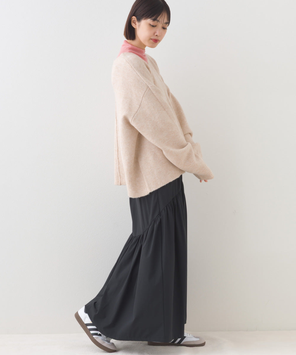 【コーディネート】 シアートップスやタートルネックを合わせれば、季節やシーンに合わせて表情を変えられます。 スニーカーでカジュアルに、ヒールやブーツで大人っぽくと、合わせるアイテム次第で幅広いスタイリングが可能です。