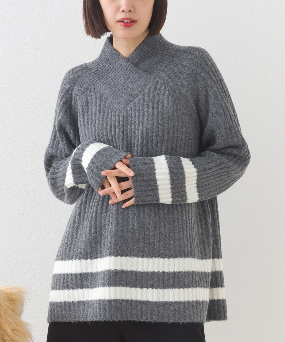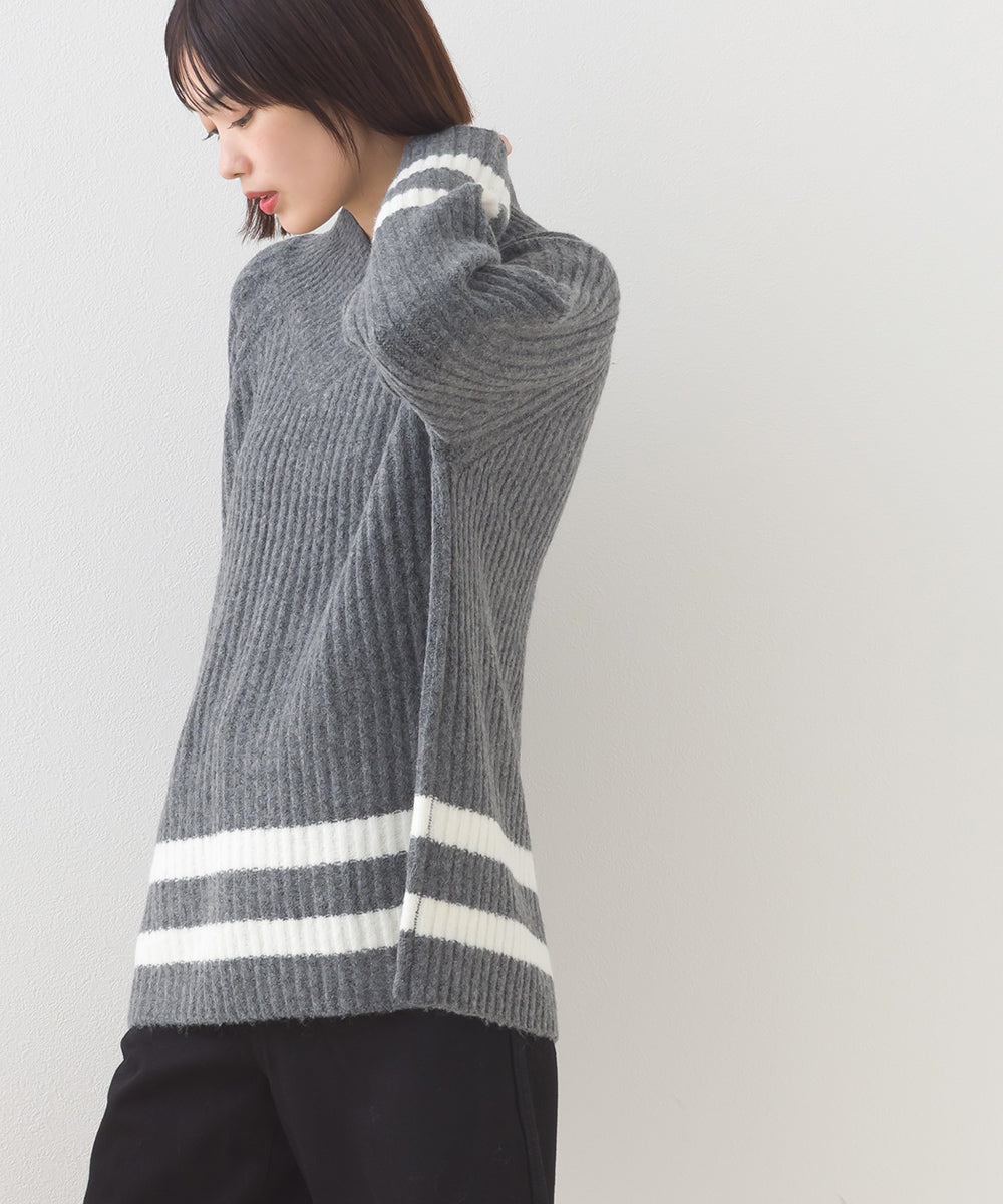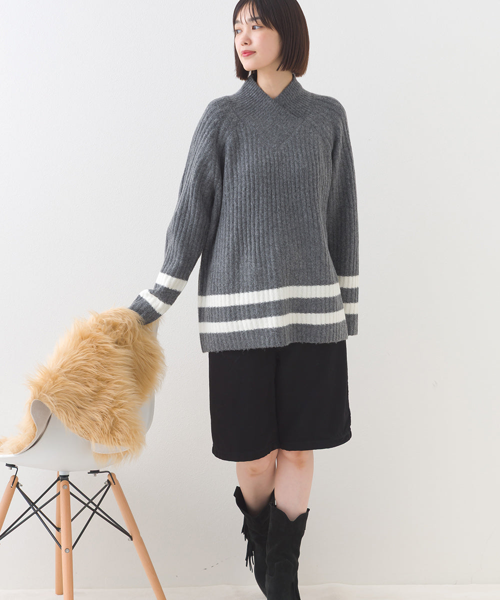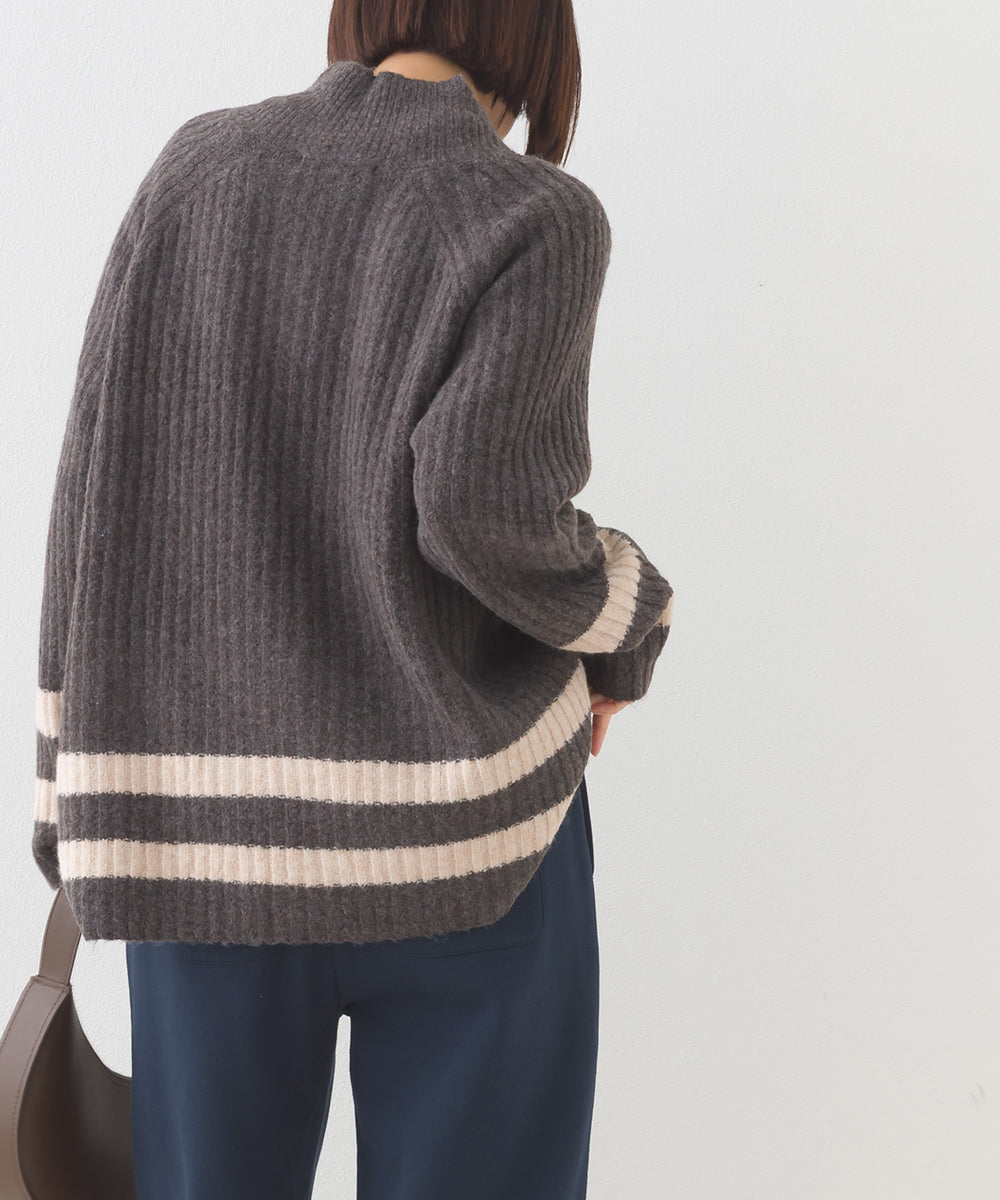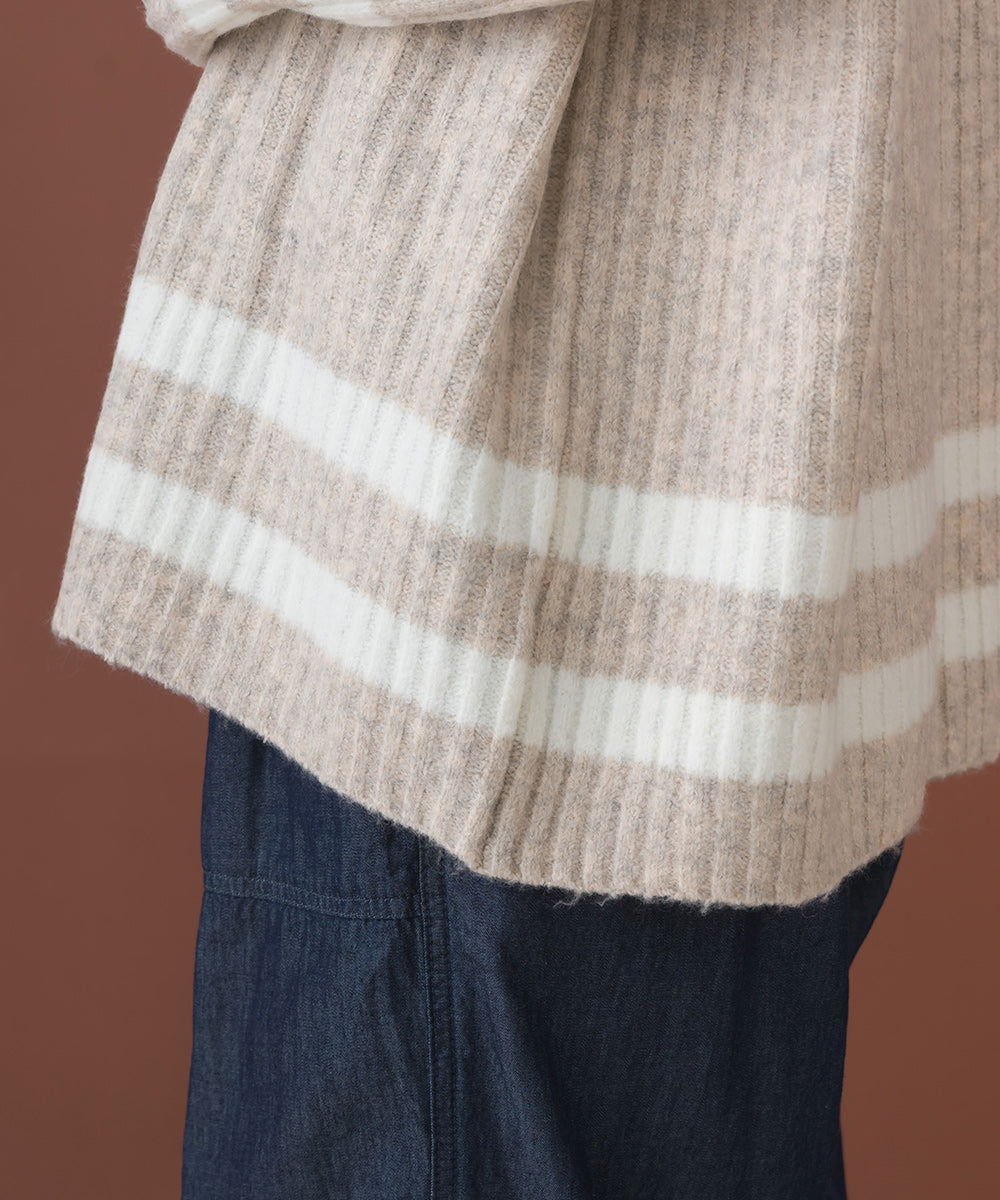【OMNES】メランジ ショールカラー裾ボーダーニットプルオーバー【253W427OMN057】