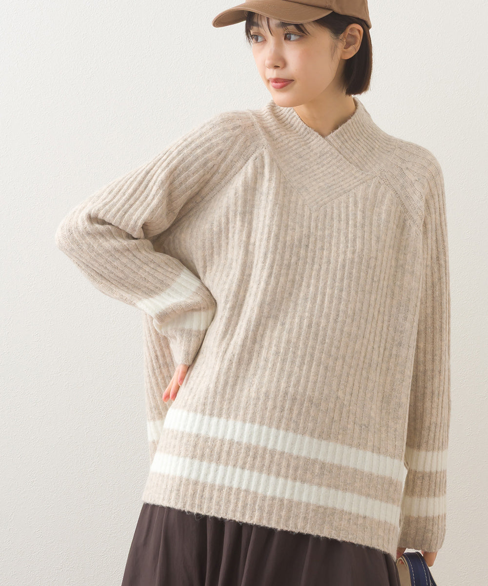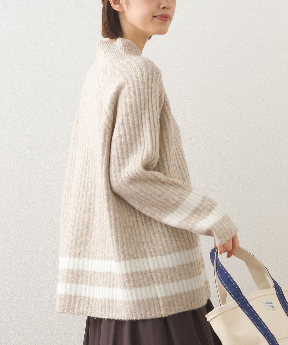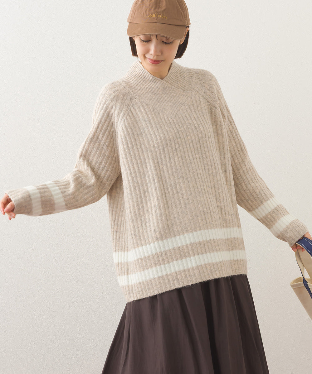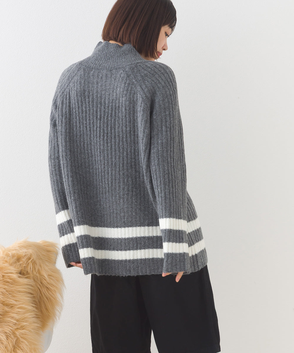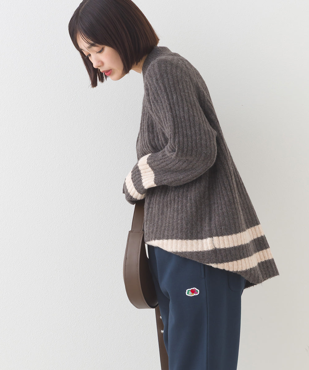 【OMNES】メランジ ショールカラー裾ボーダーニットプルオーバー【253W427OMN057】