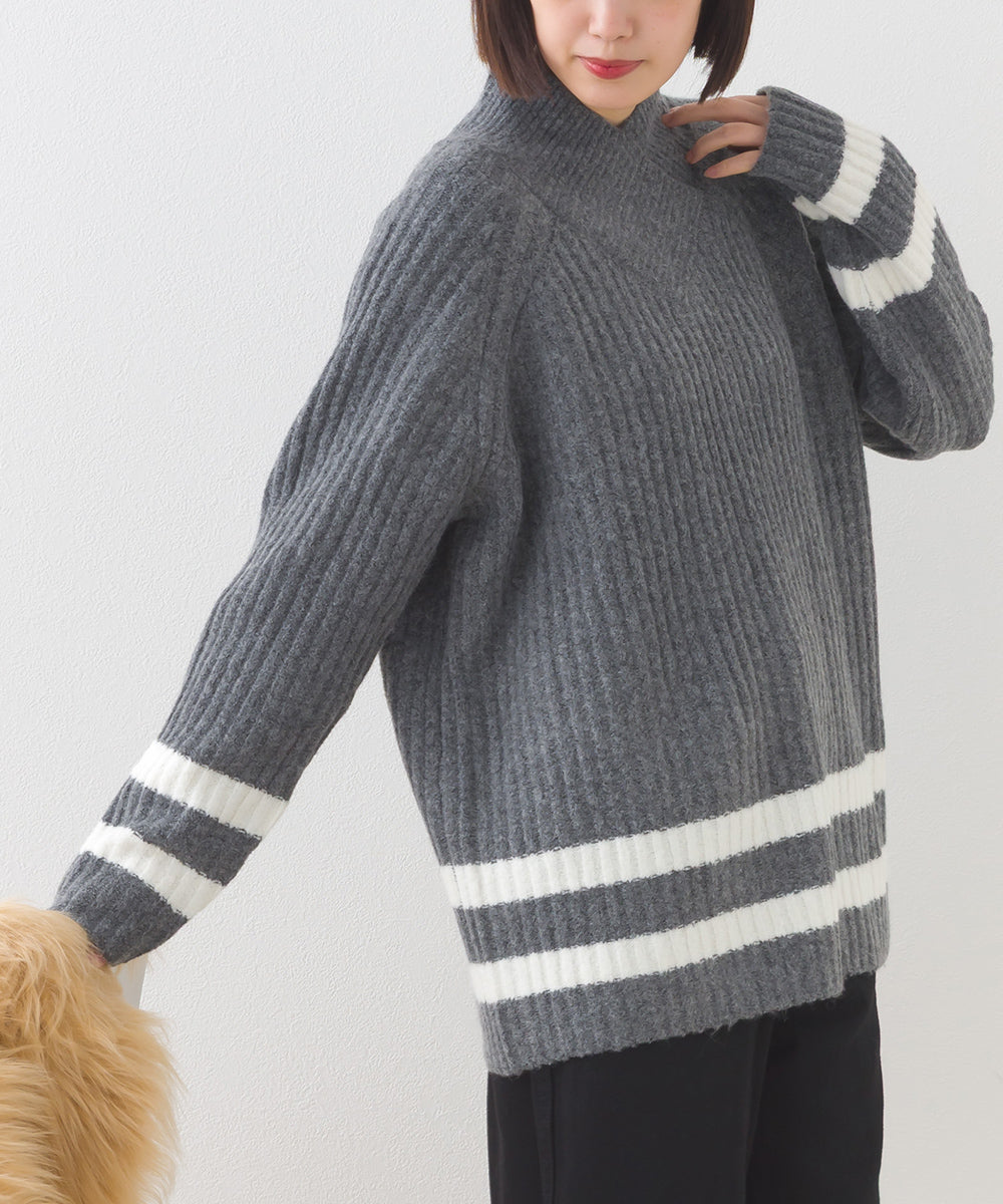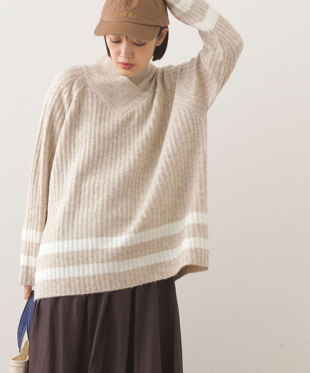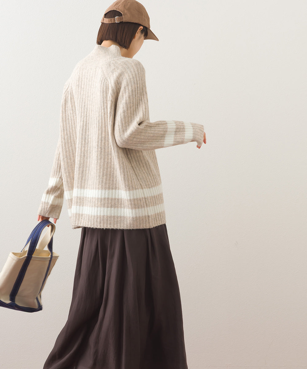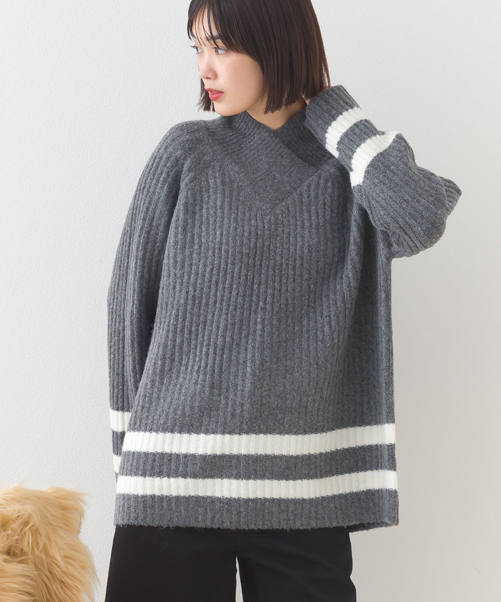 【OMNES】メランジ ショールカラー裾ボーダーニットプルオーバー【253W427OMN057】