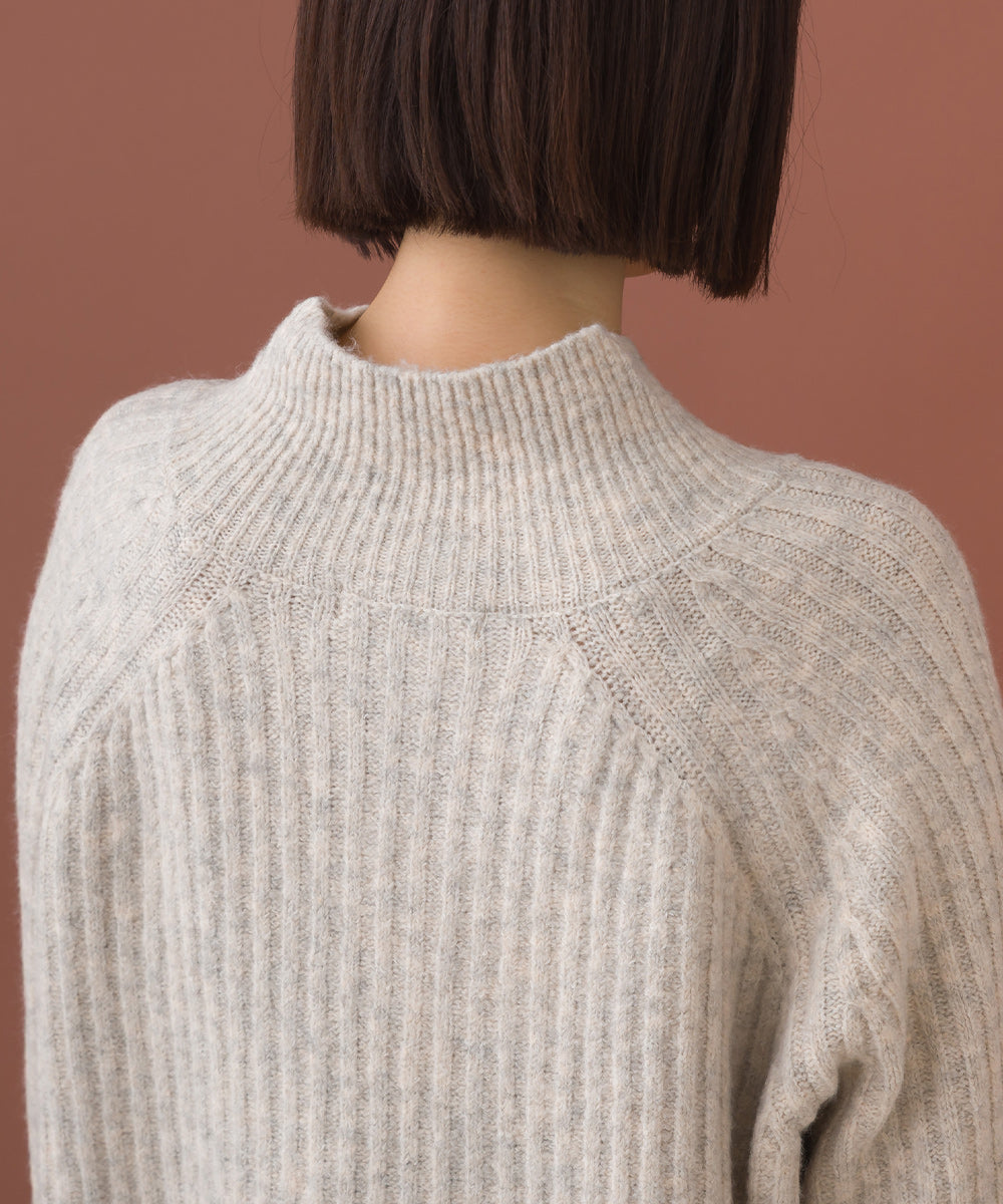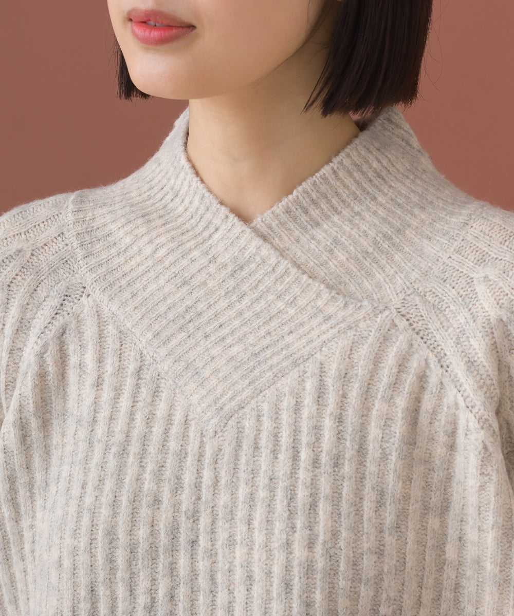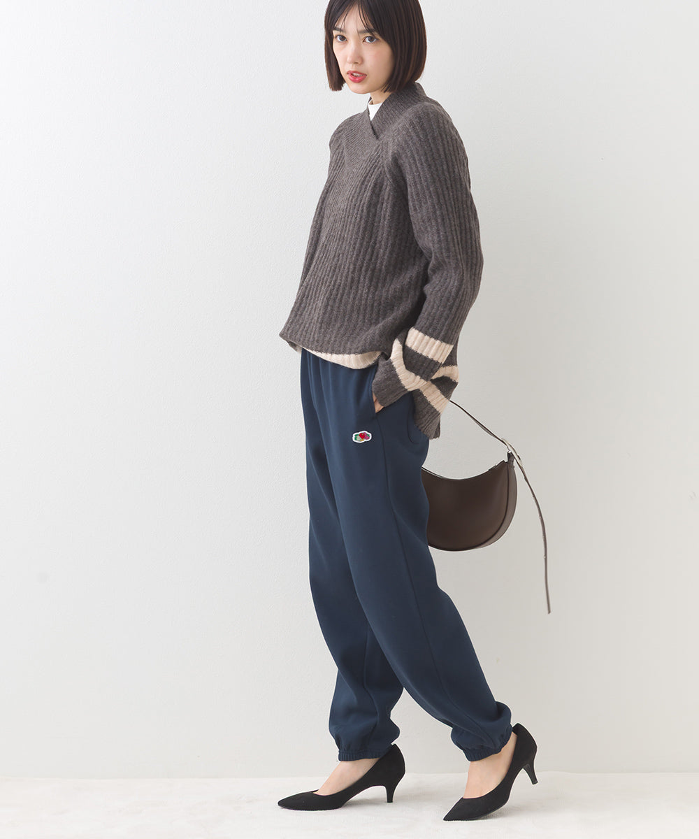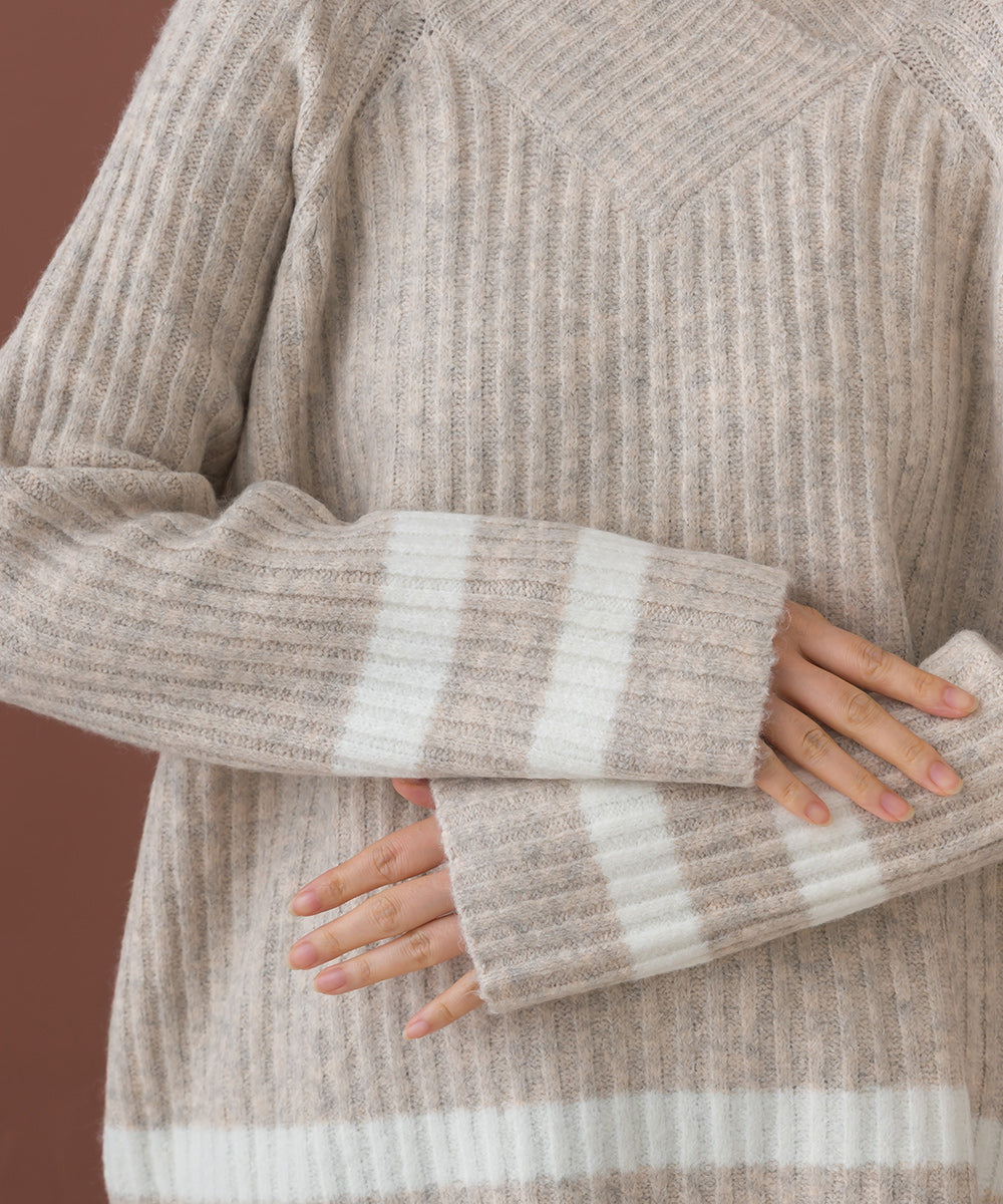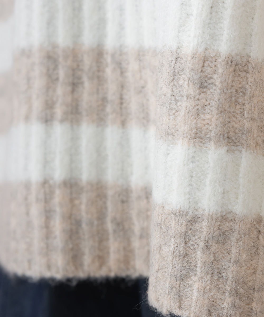 【OMNES】メランジ ショールカラー裾ボーダーニットプルオーバー【253W427OMN057】