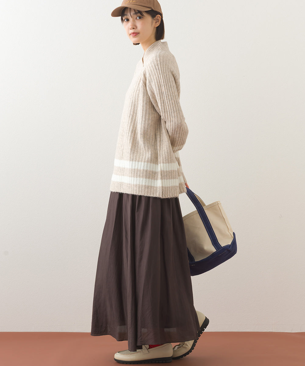 【コーディネート】 デニムと合わせてカジュアルに、スカートと合わせて女性らしくと、幅広いコーディネートに対応可能◎ ニットのゆるっと感に軽やかなプリーツスカートを合わせれば、リラックスしながらも写真映えする大人カジュアルに。