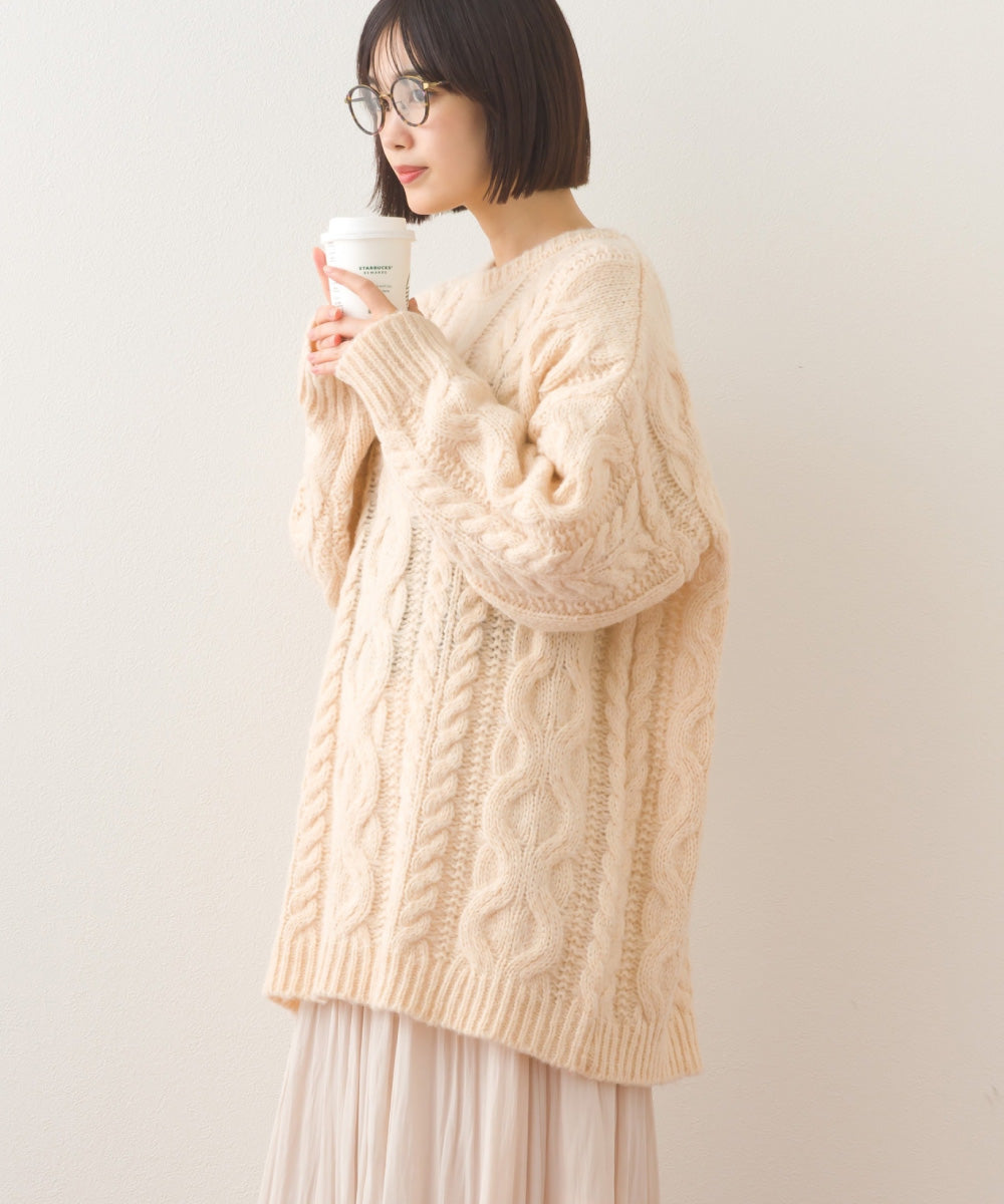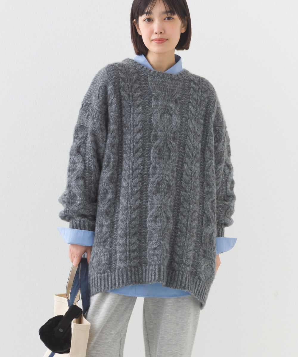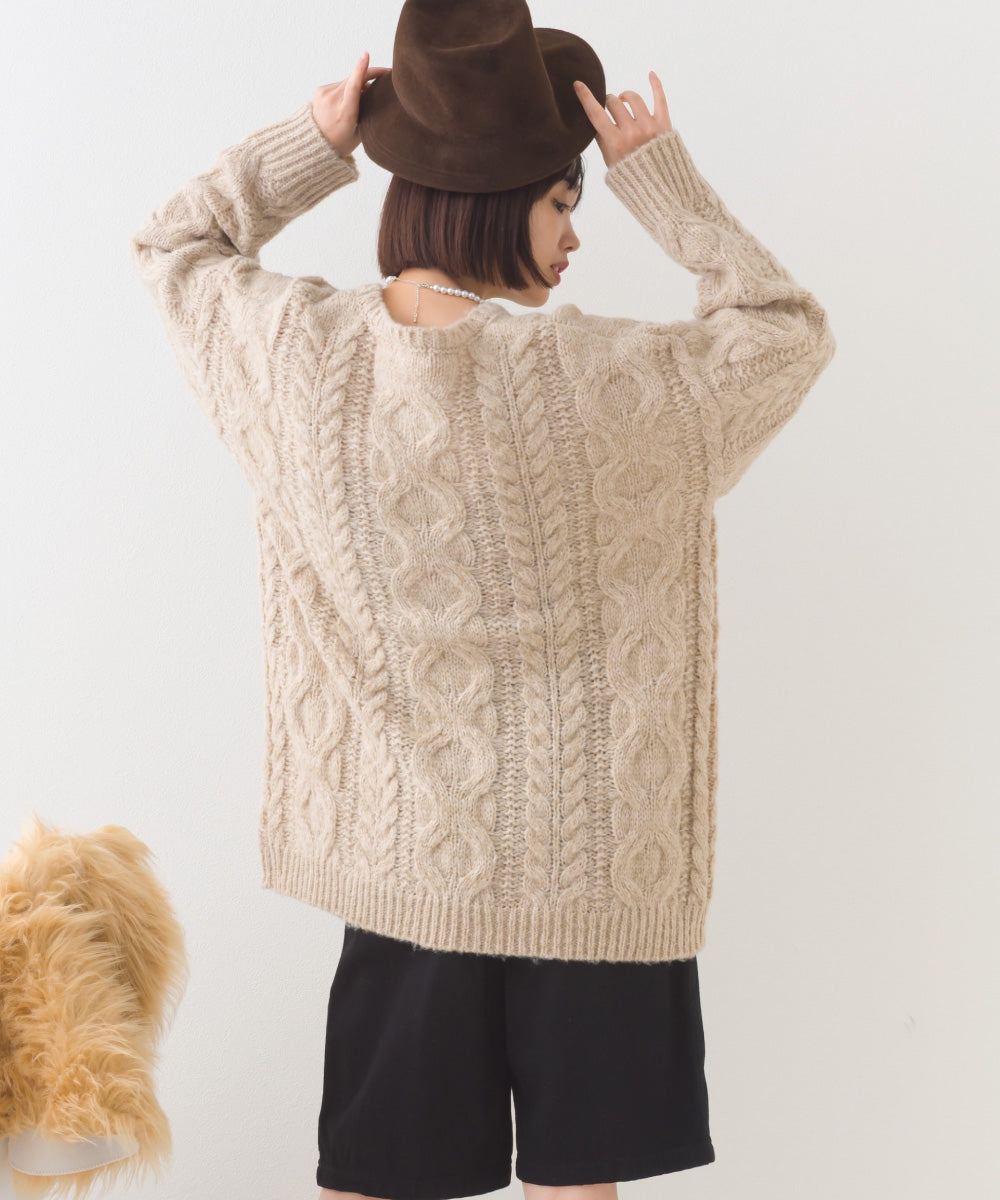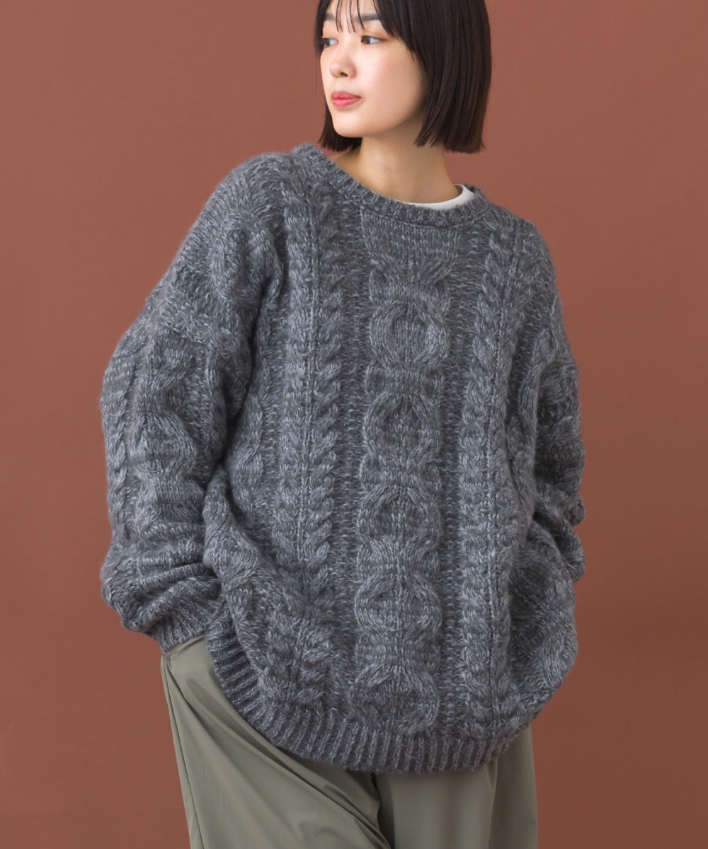 【OMNES】ローゲージアラン編オーバーシルエットニットプルオーバー【253W427OMN059】