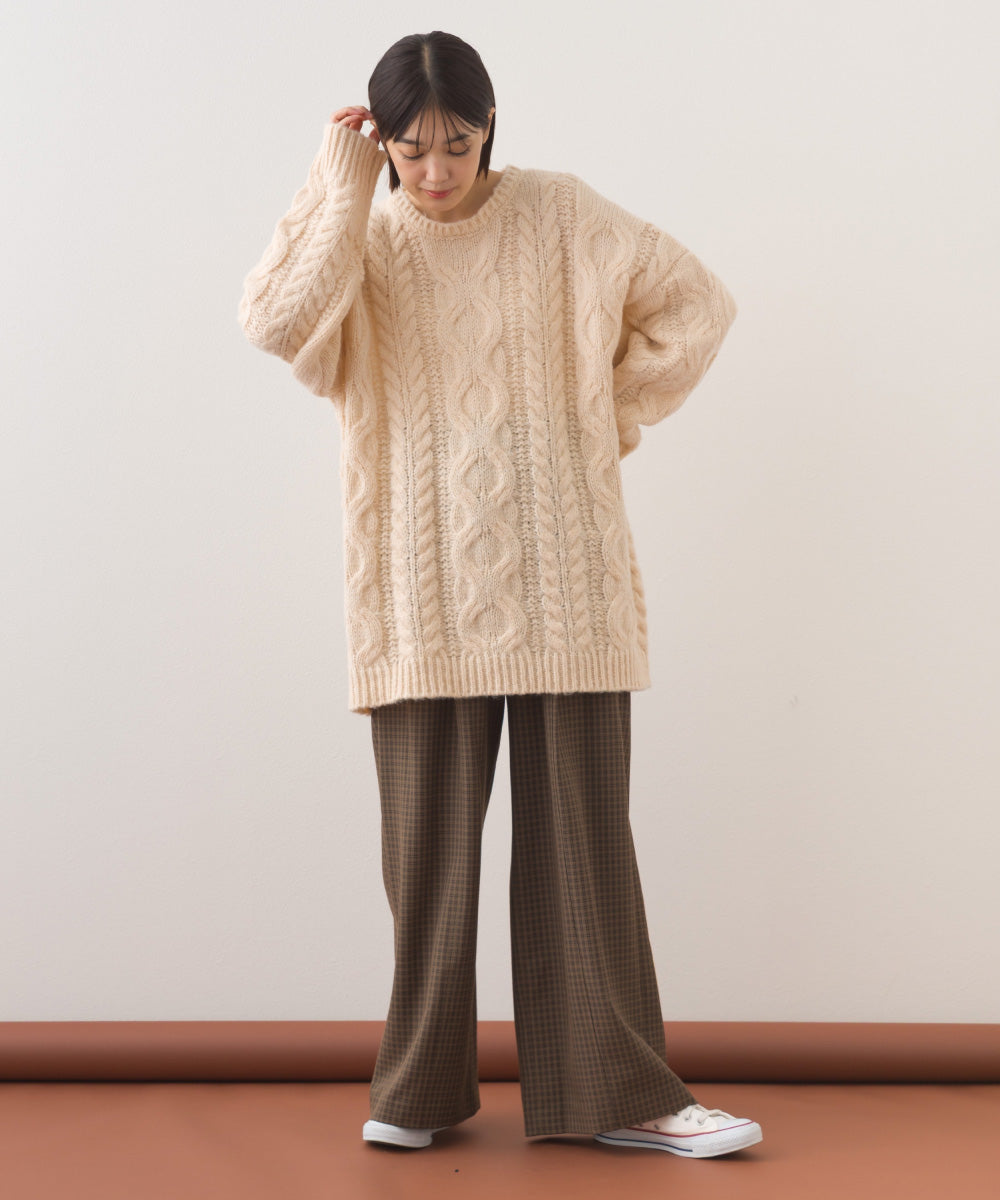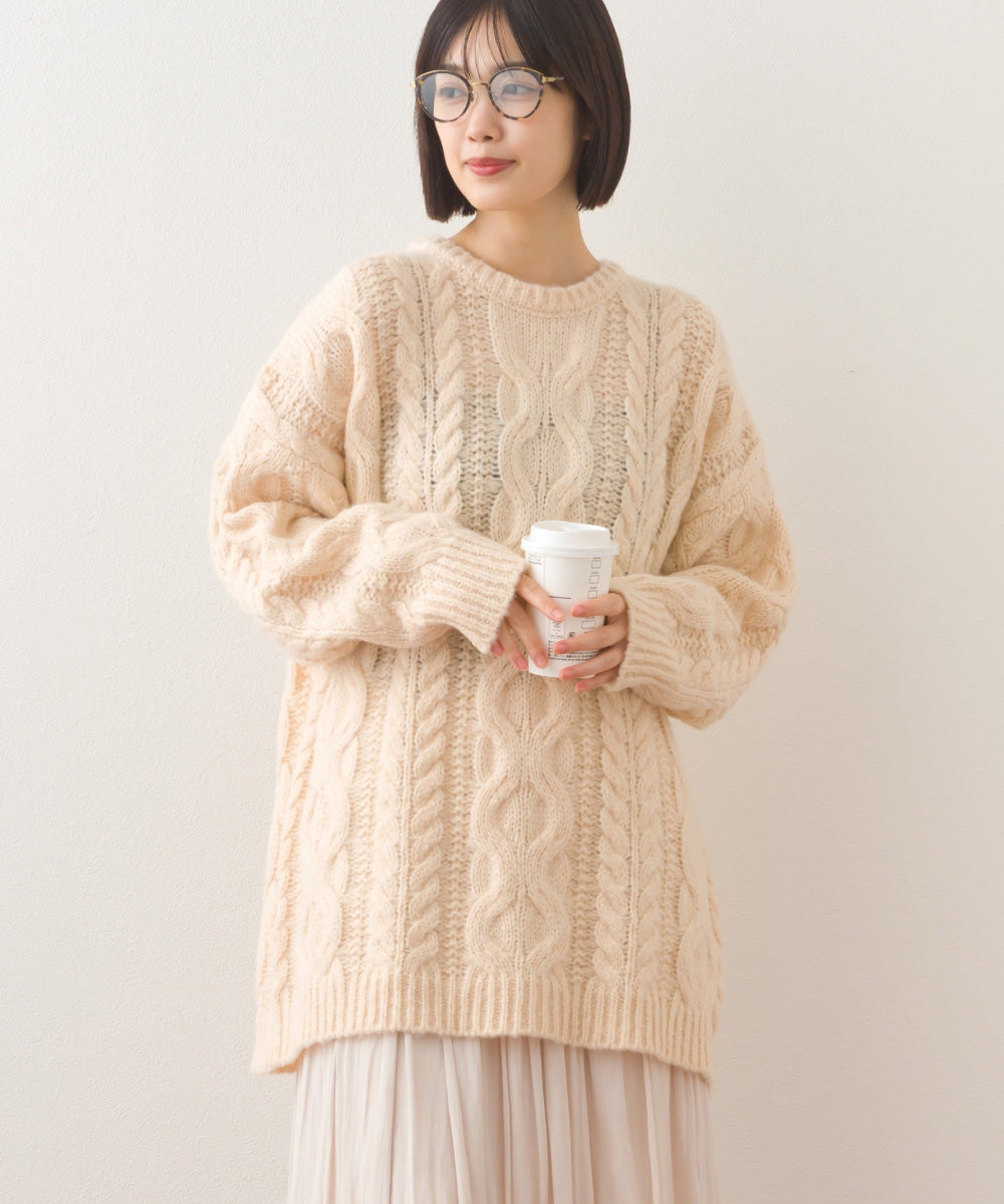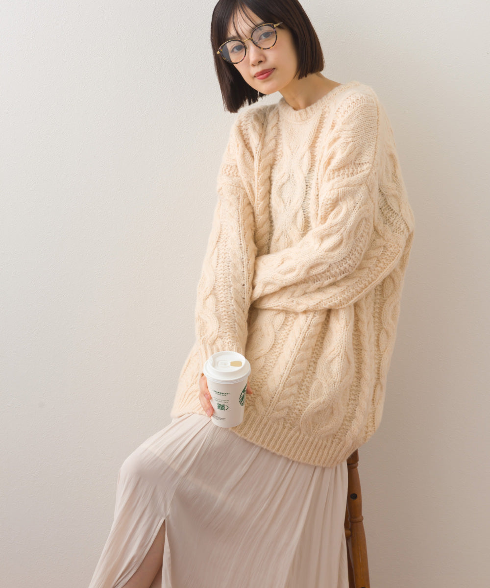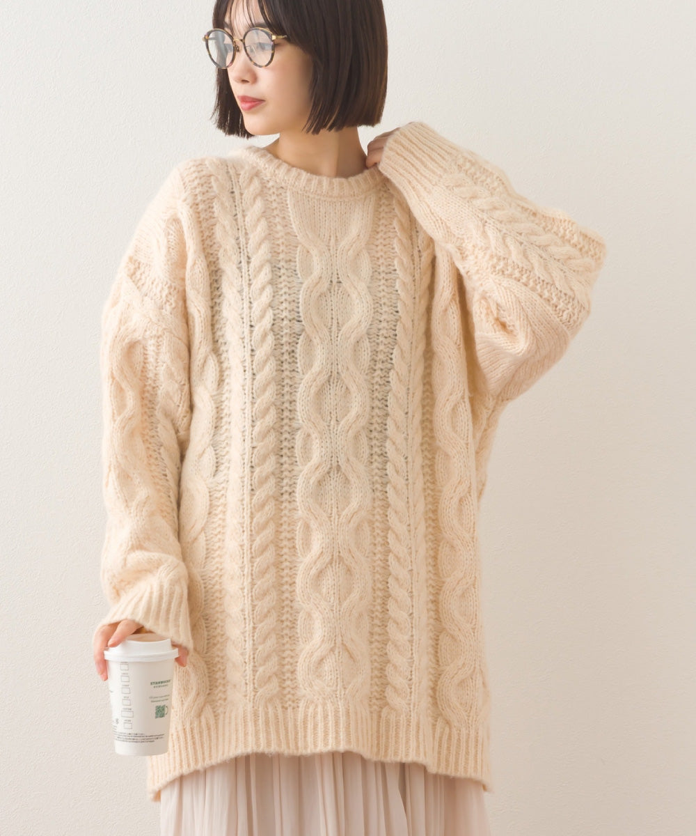 【OMNES】ローゲージアラン編オーバーシルエットニットプルオーバー【253W427OMN059】