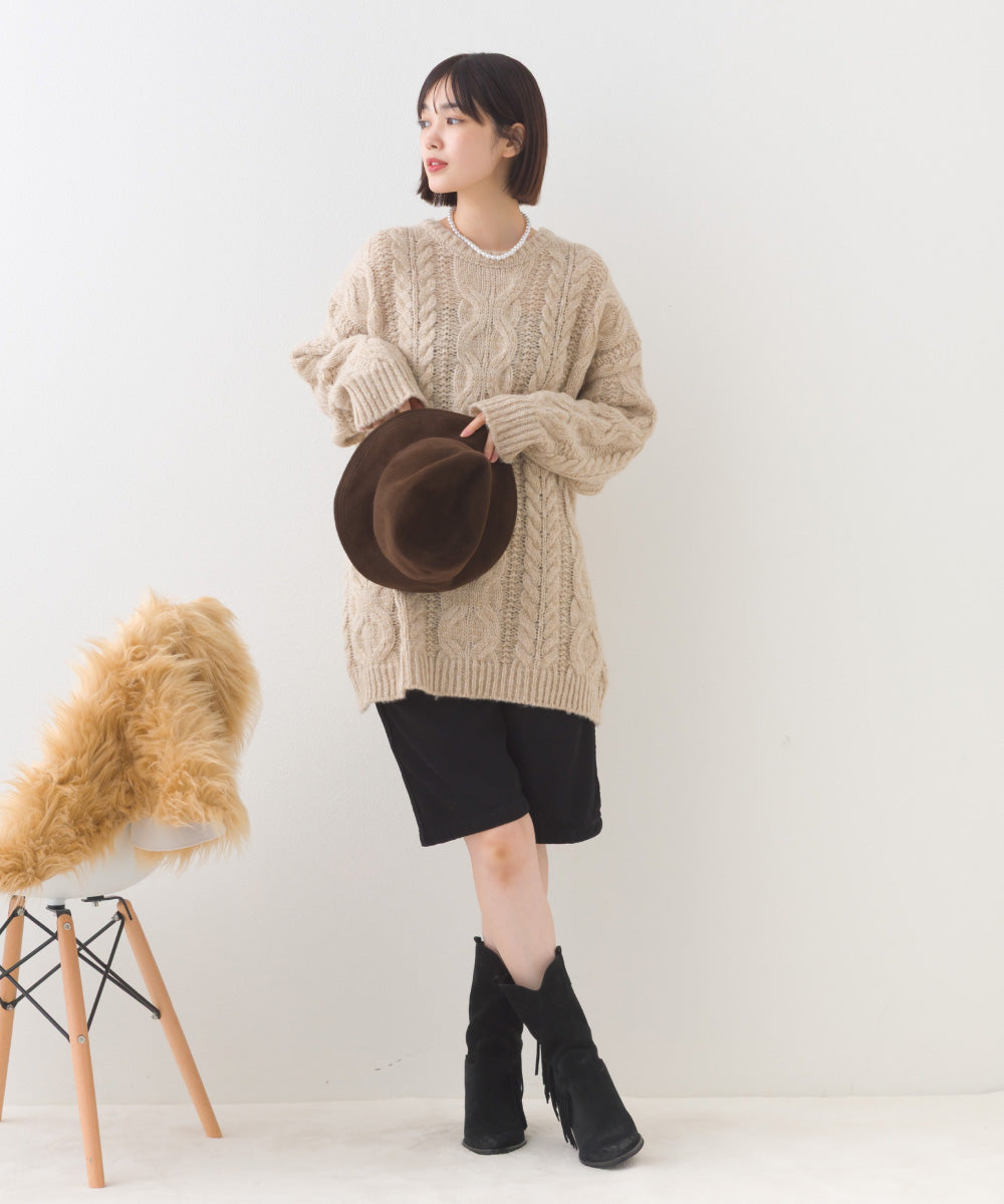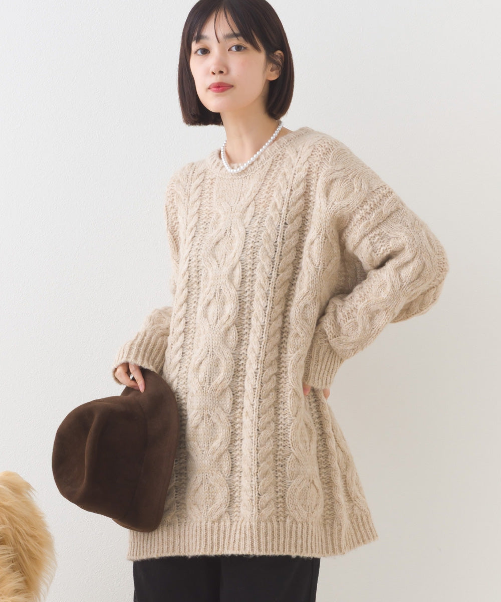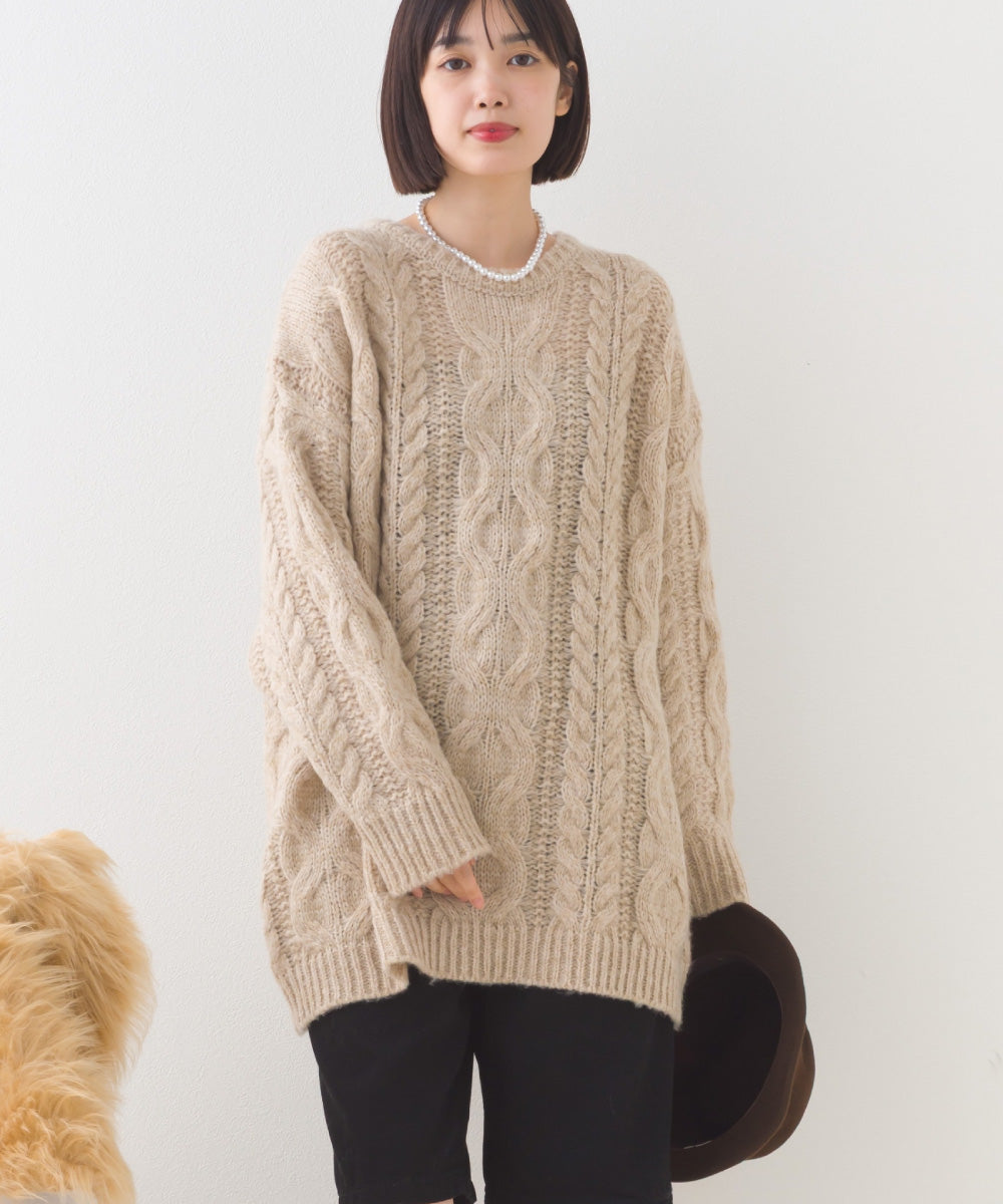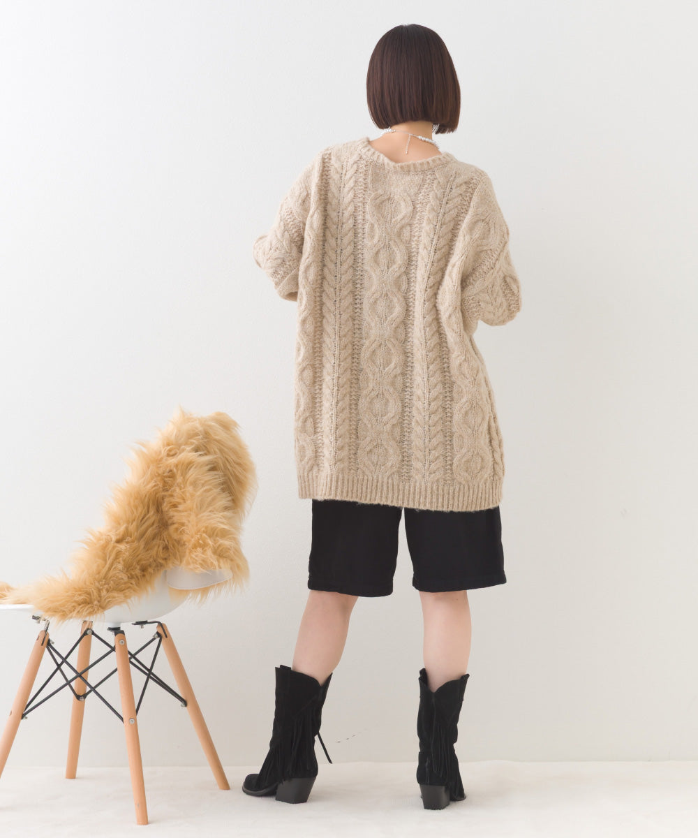 【OMNES】ローゲージアラン編オーバーシルエットニットプルオーバー【253W427OMN059】