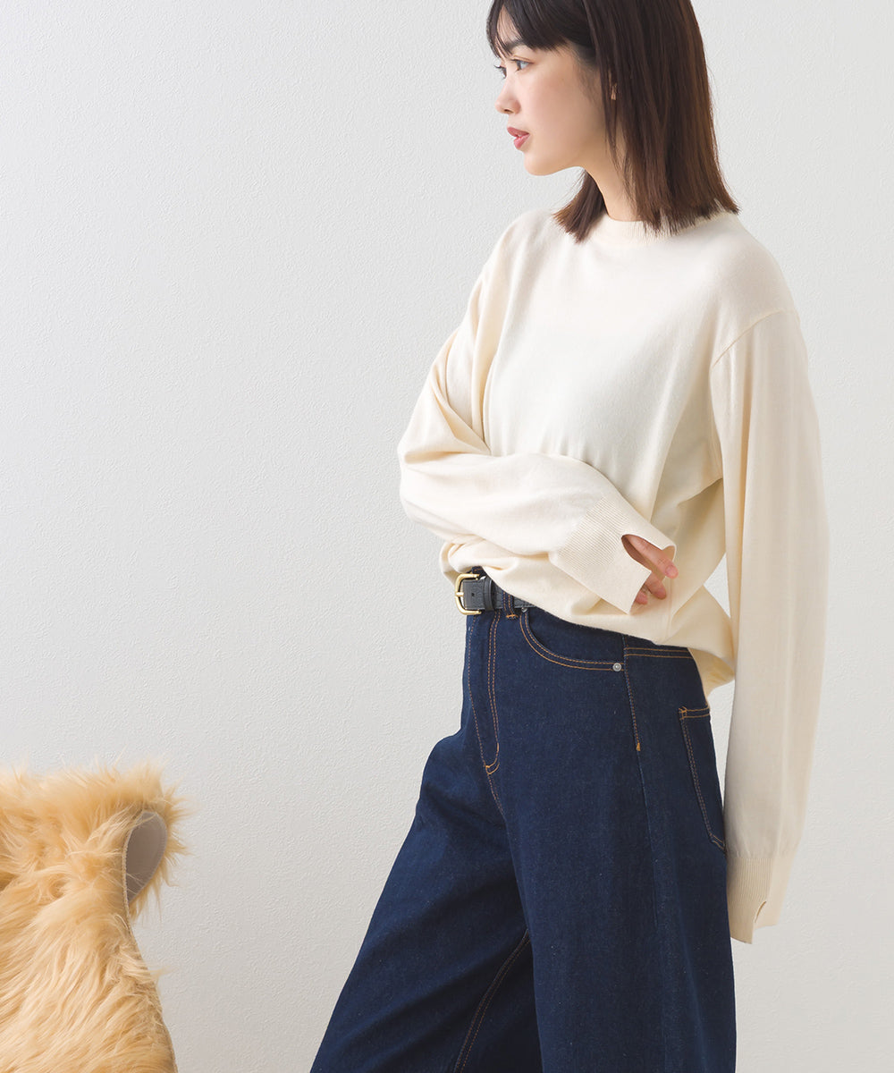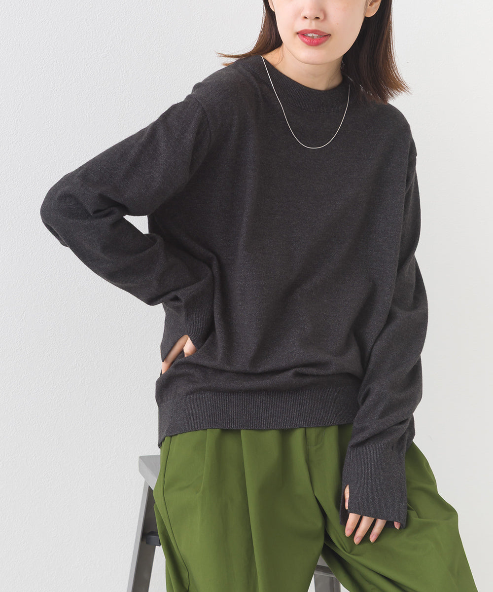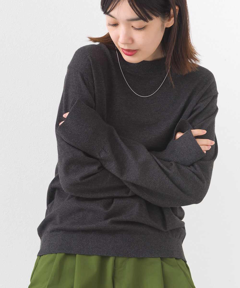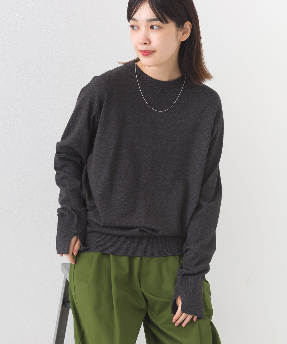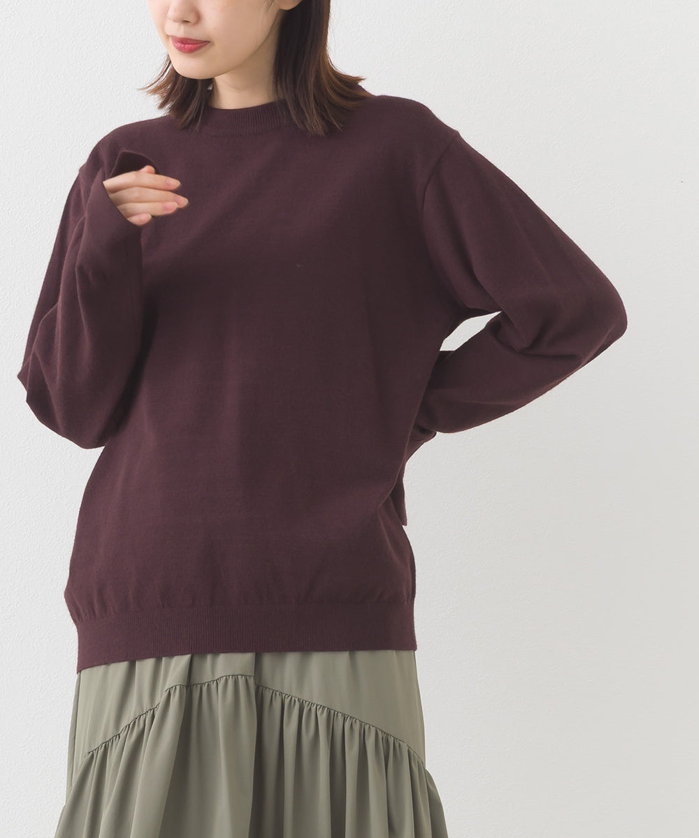 【OMNES】ハイゲージクルーネック袖スリット入りニットプルオーバー【253W427OMN061】