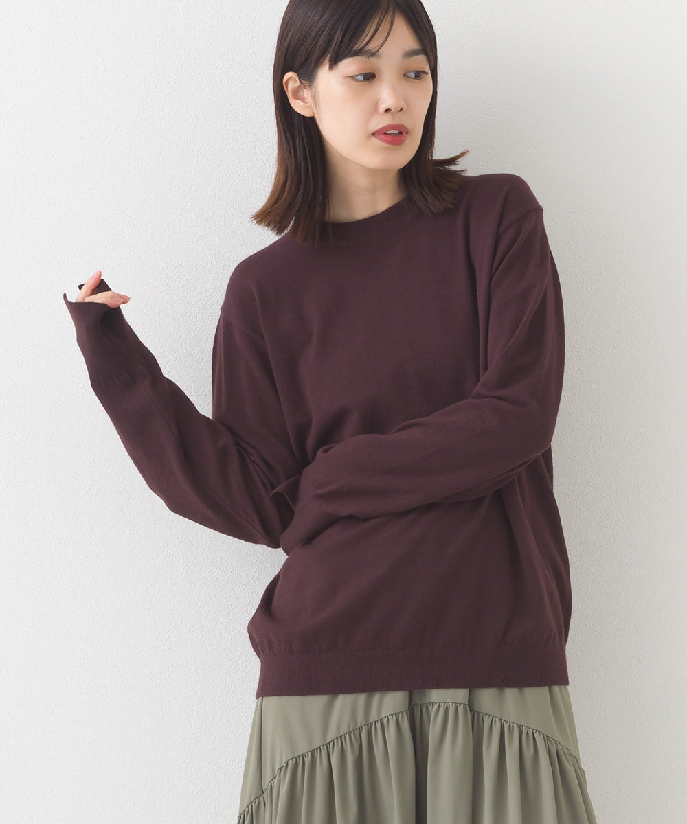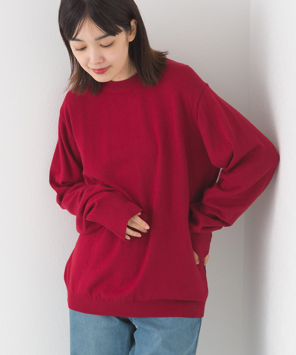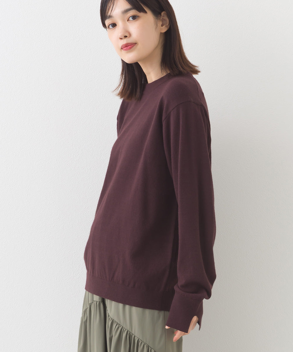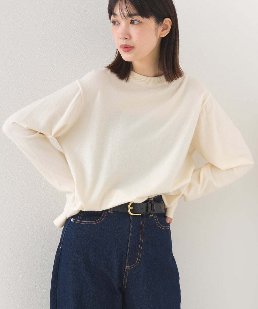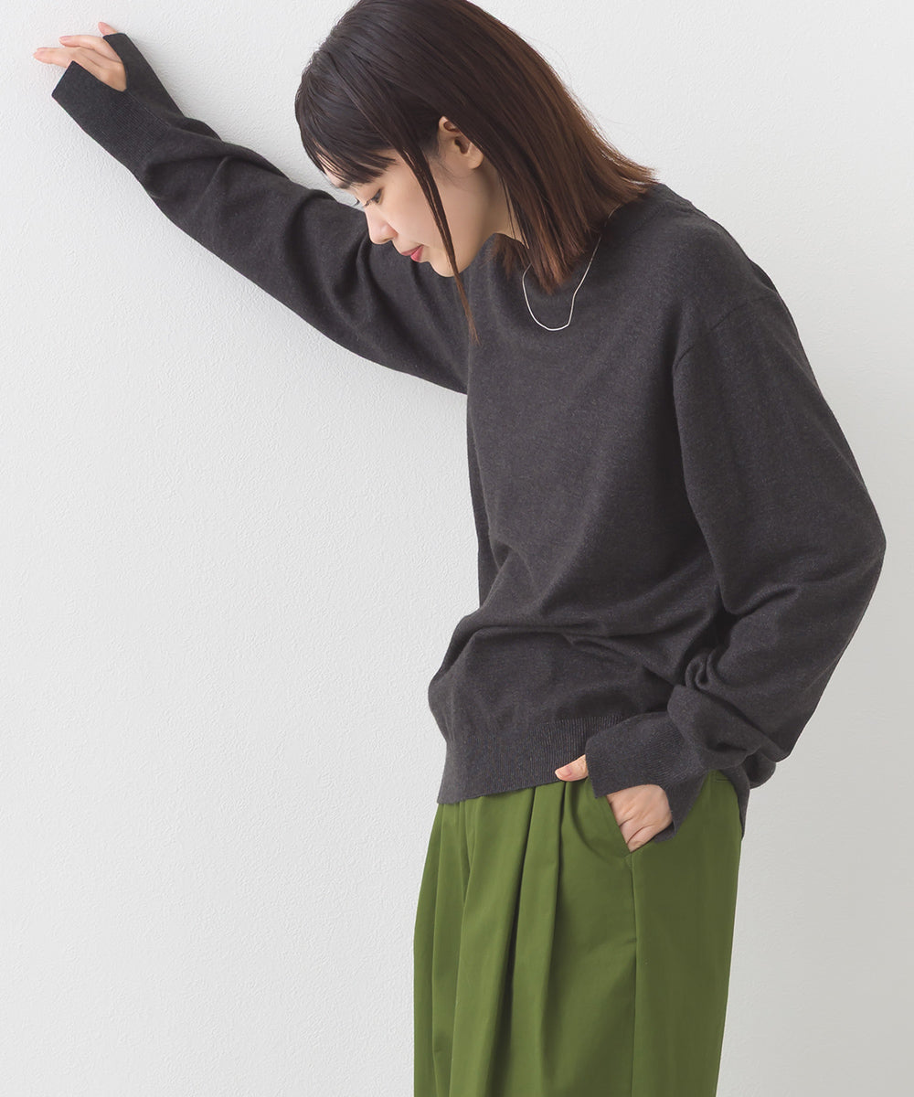 【OMNES】ハイゲージクルーネック袖スリット入りニットプルオーバー【253W427OMN061】