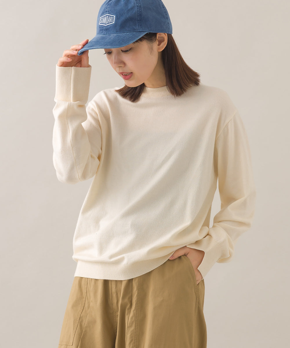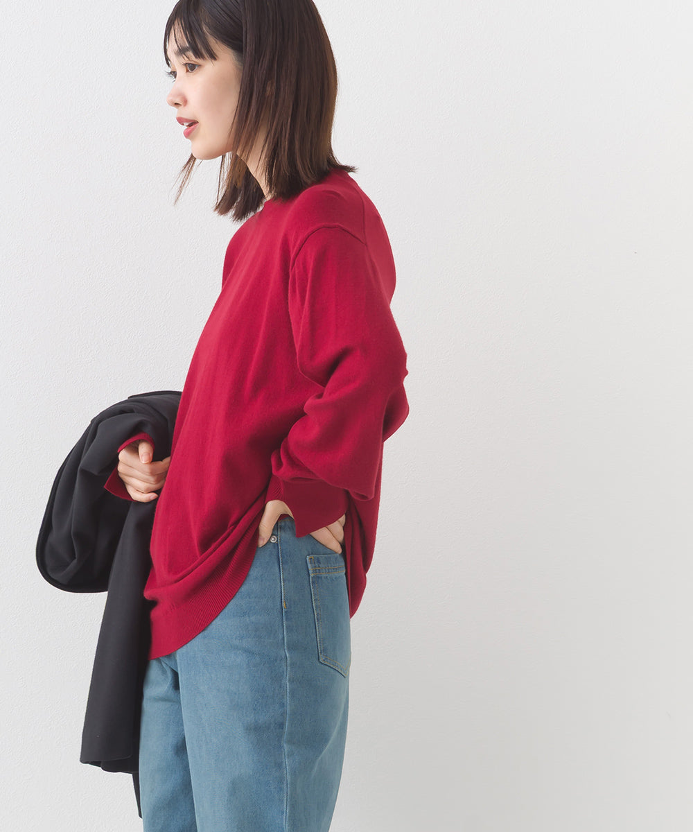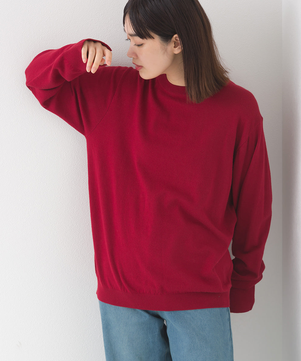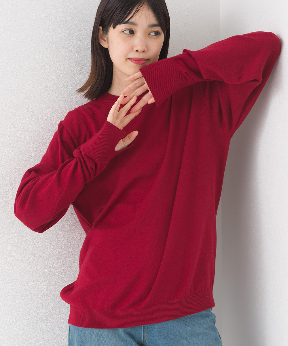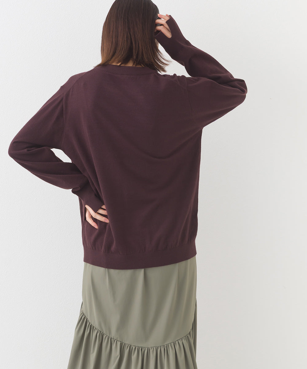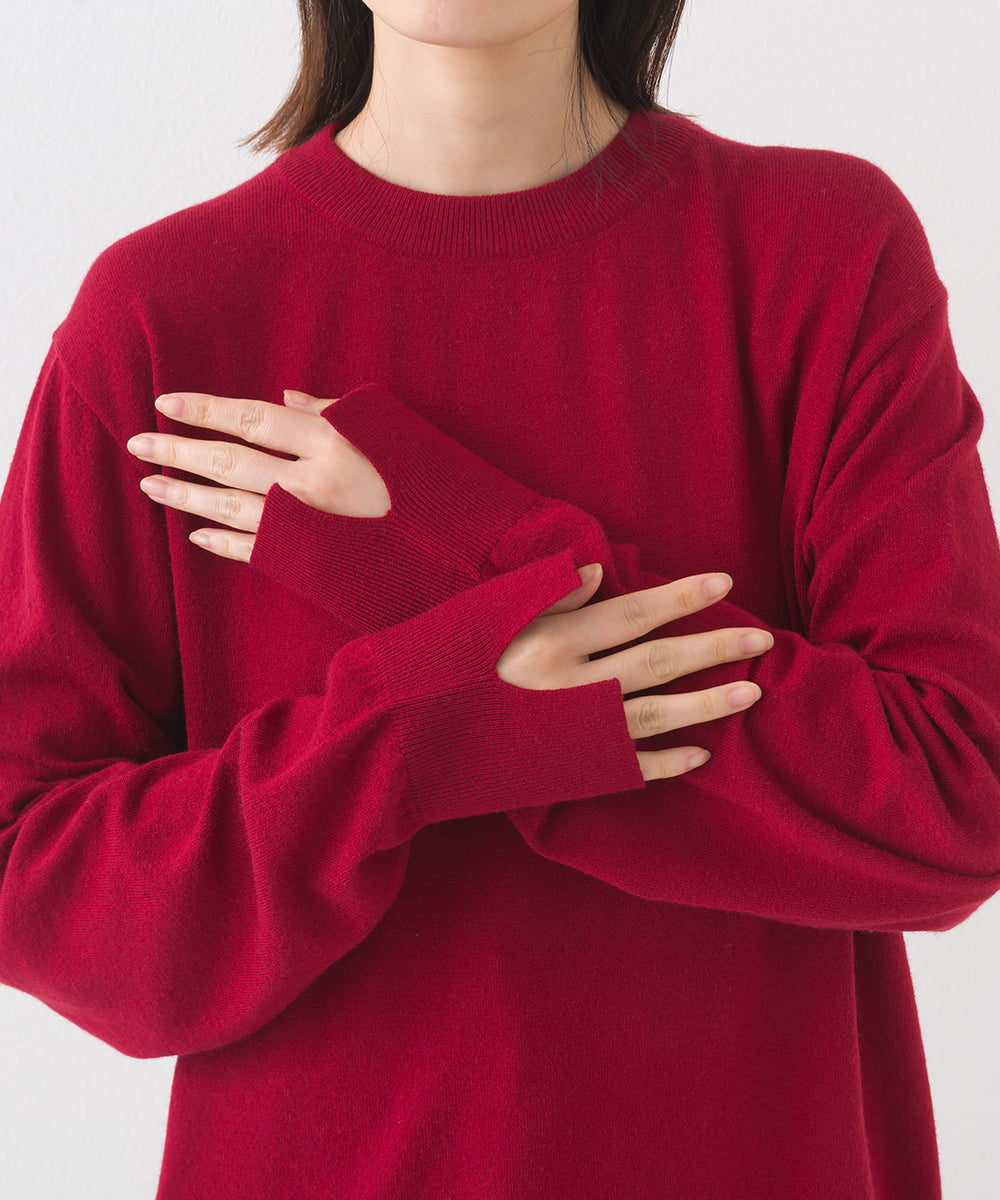 【OMNES】ハイゲージクルーネック袖スリット入りニットプルオーバー【253W427OMN061】