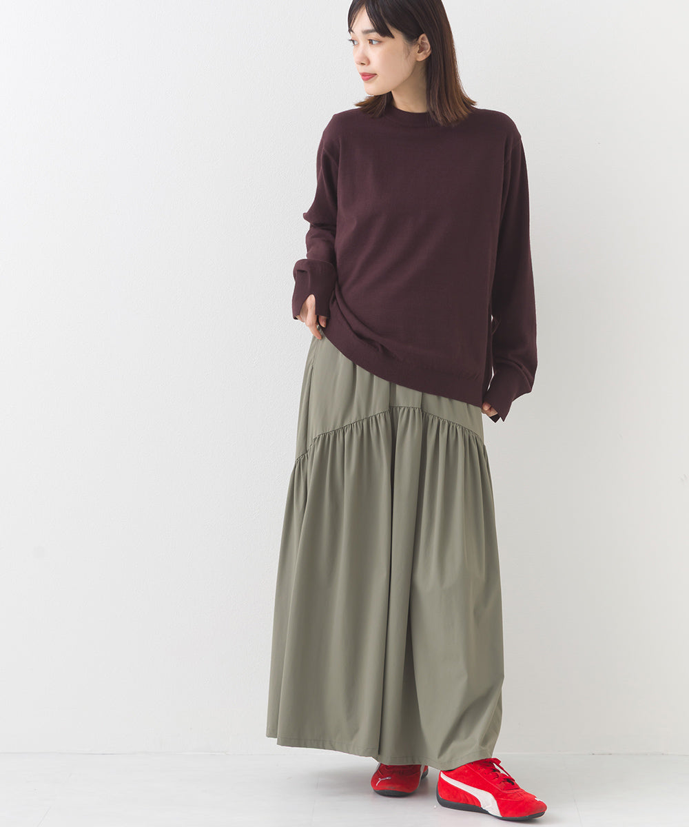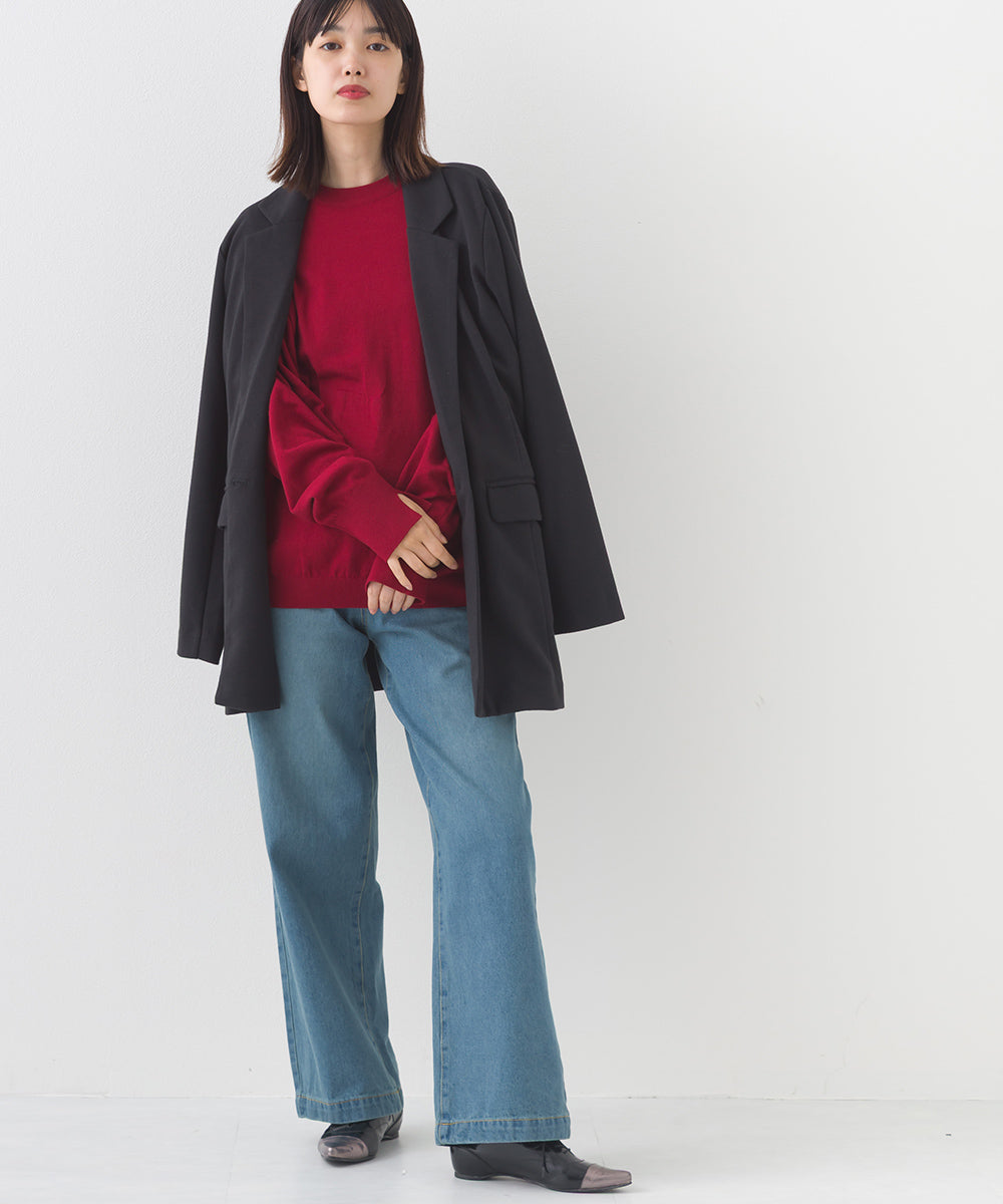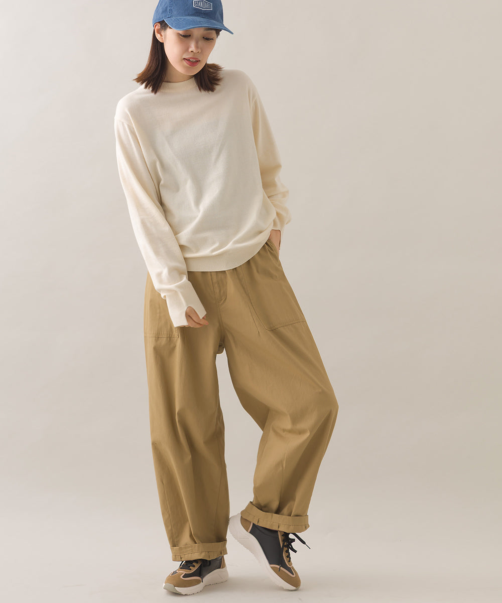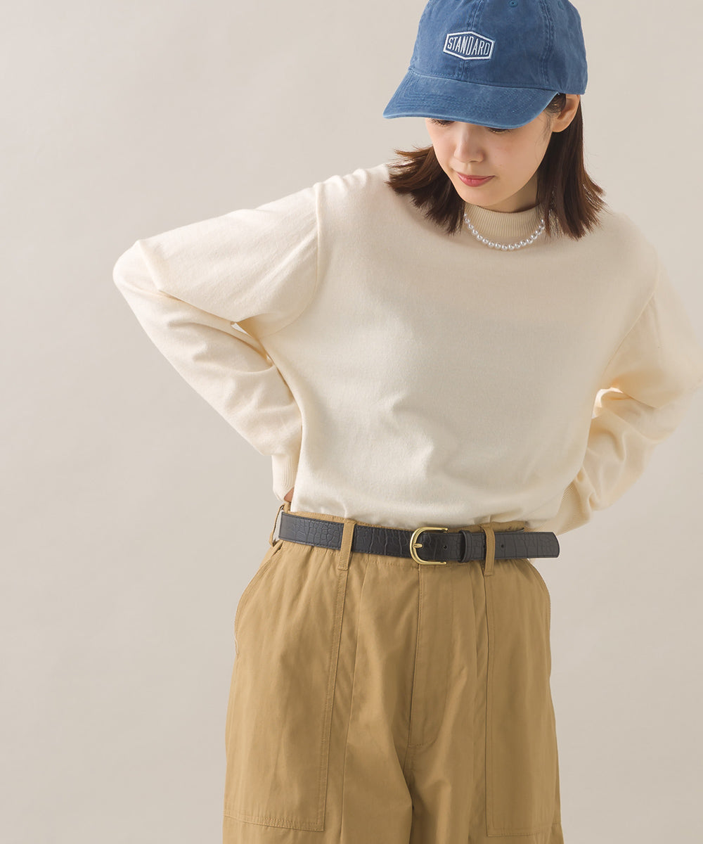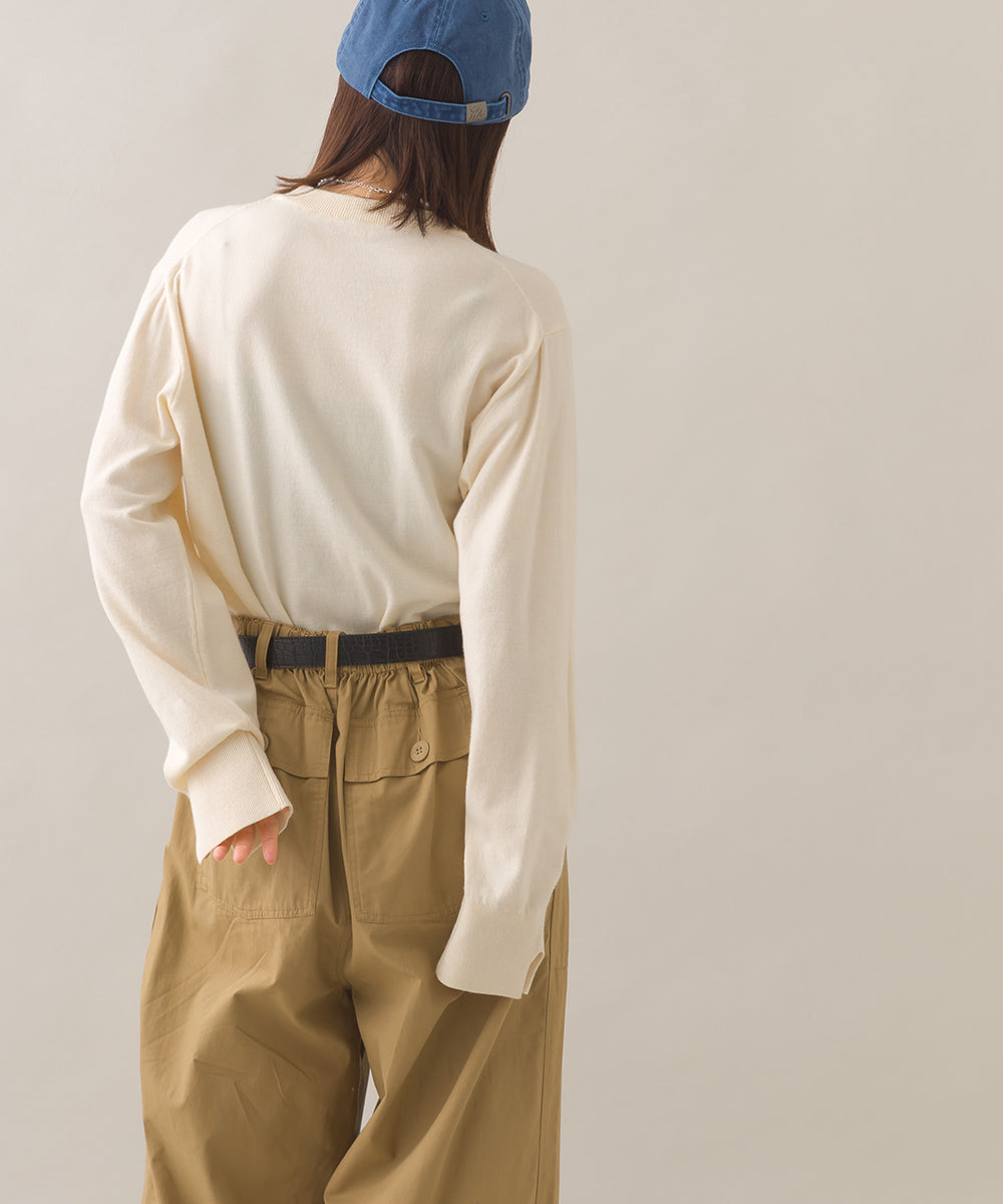 【OMNES】ハイゲージクルーネック袖スリット入りニットプルオーバー【253W427OMN061】