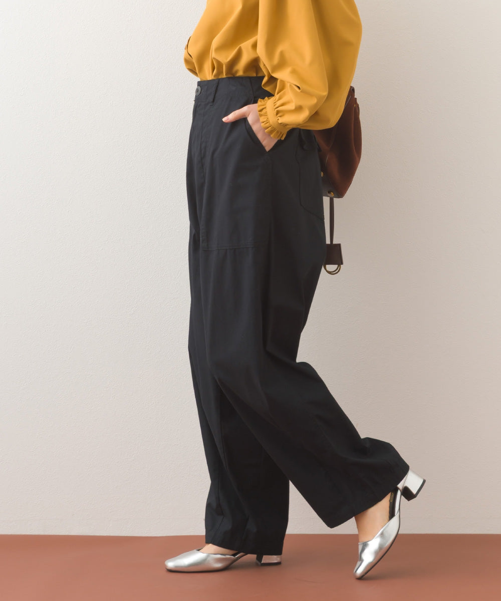 【050-ブラック/450-カーキ/610-ベージュ】 綿100% 【340-ネイビーデニム】 綿74%、レーヨン18%、ポリエステル9%