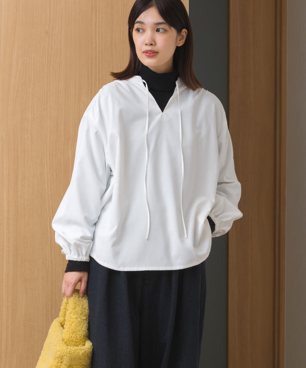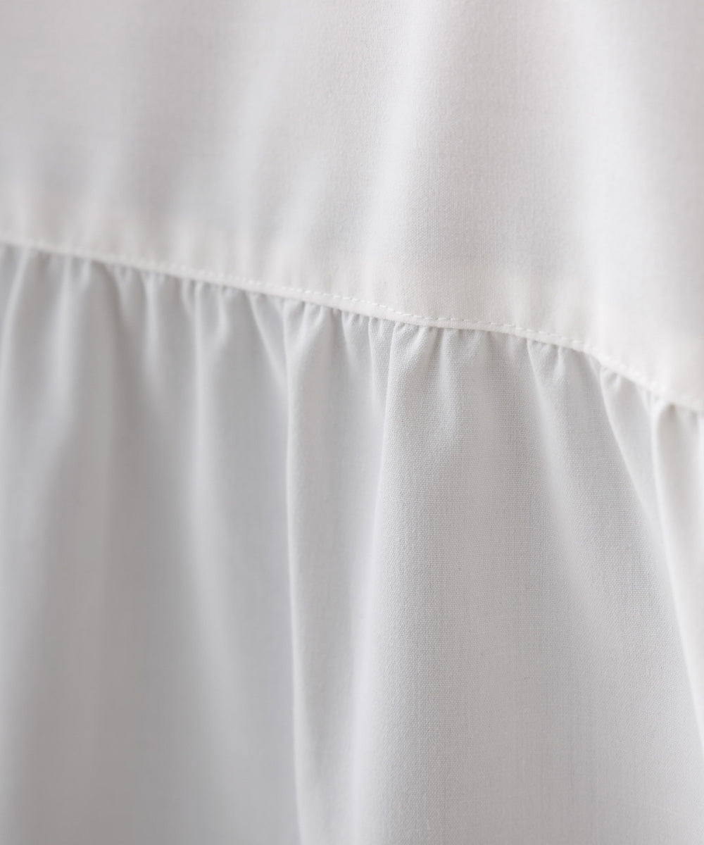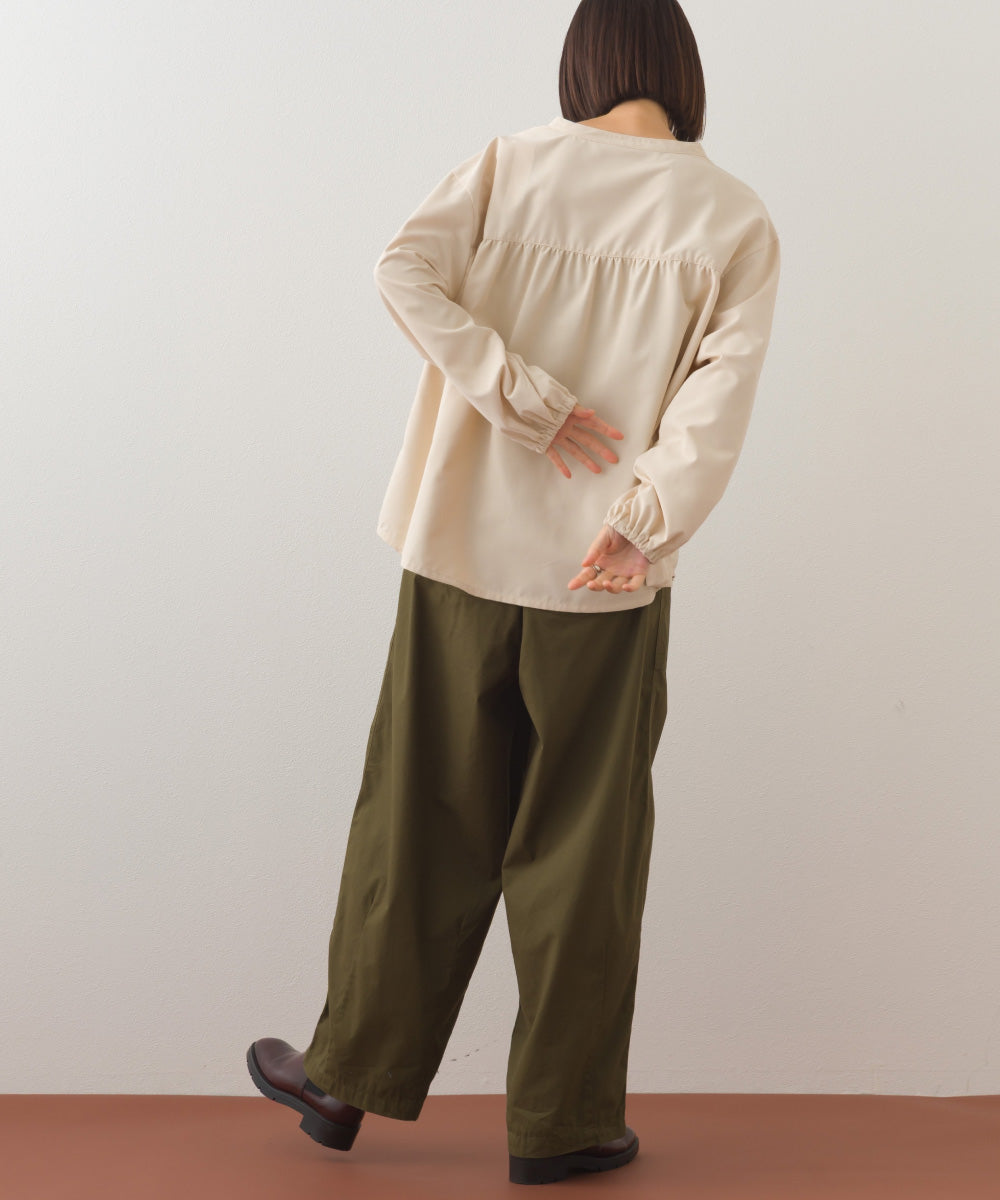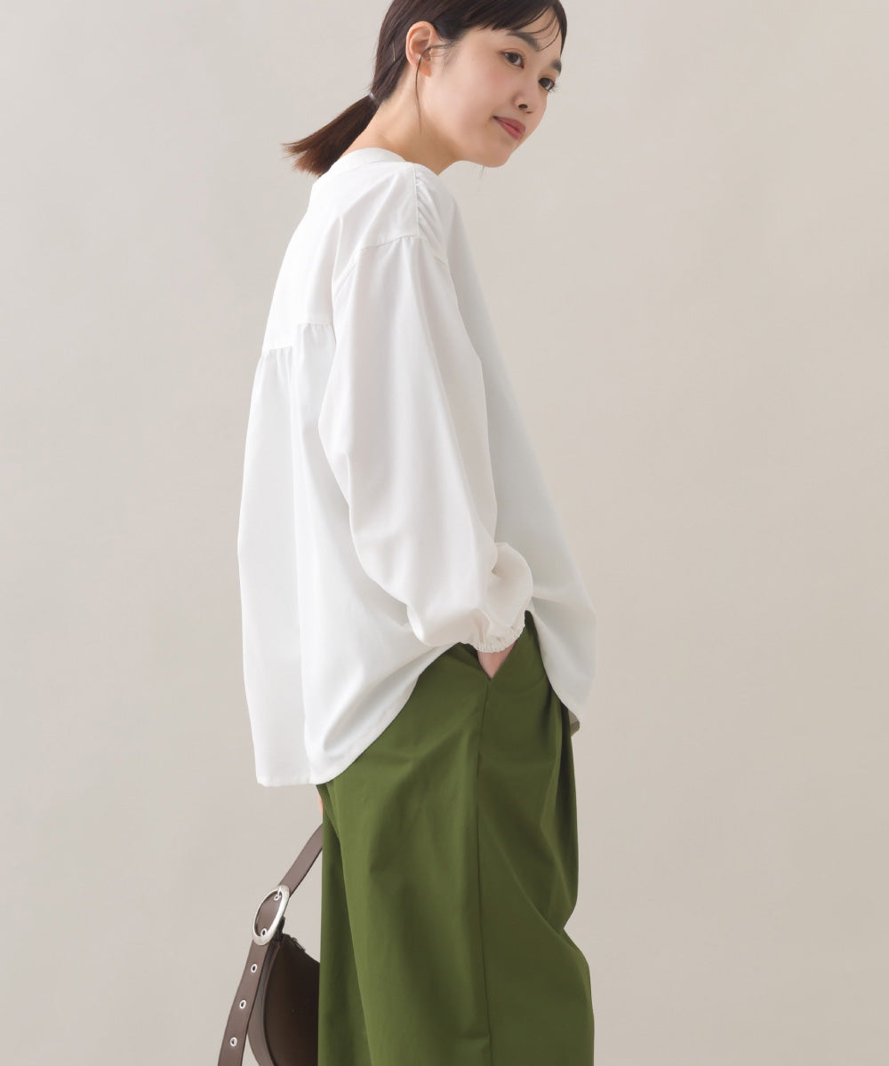 【OMNES】テックコットンスキッパーデザイン9分袖フリルシャツブラウス【253W427OMN072】