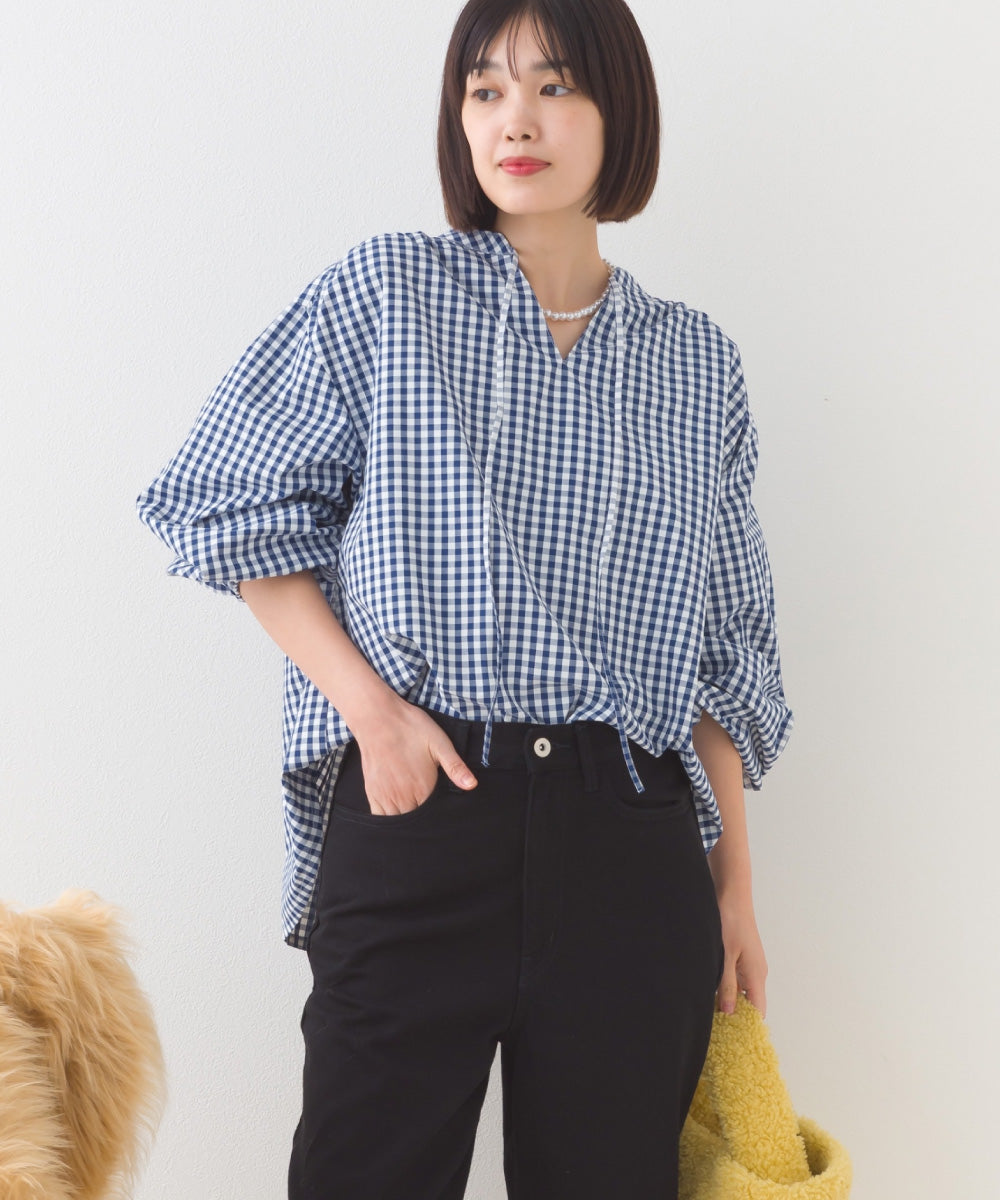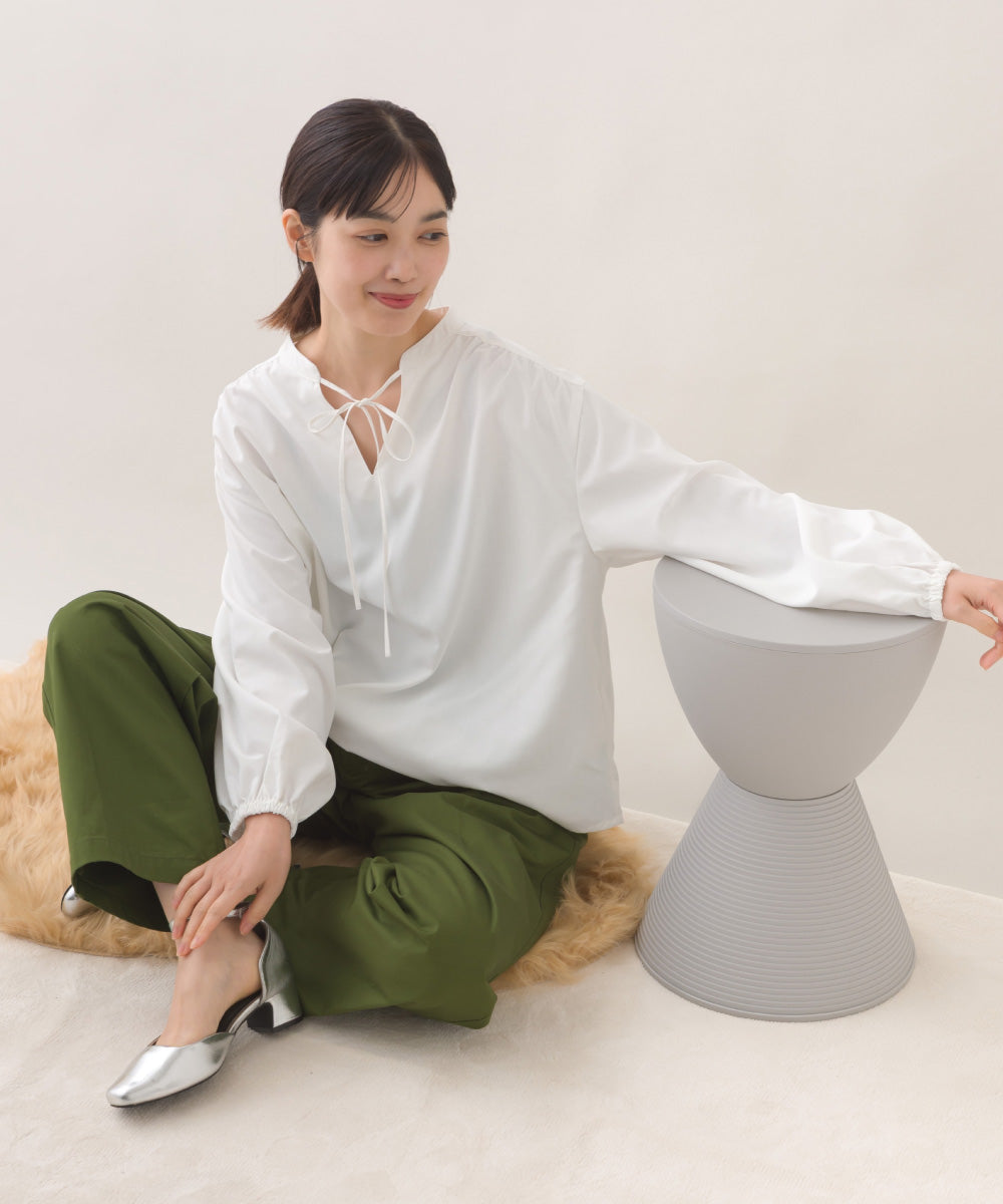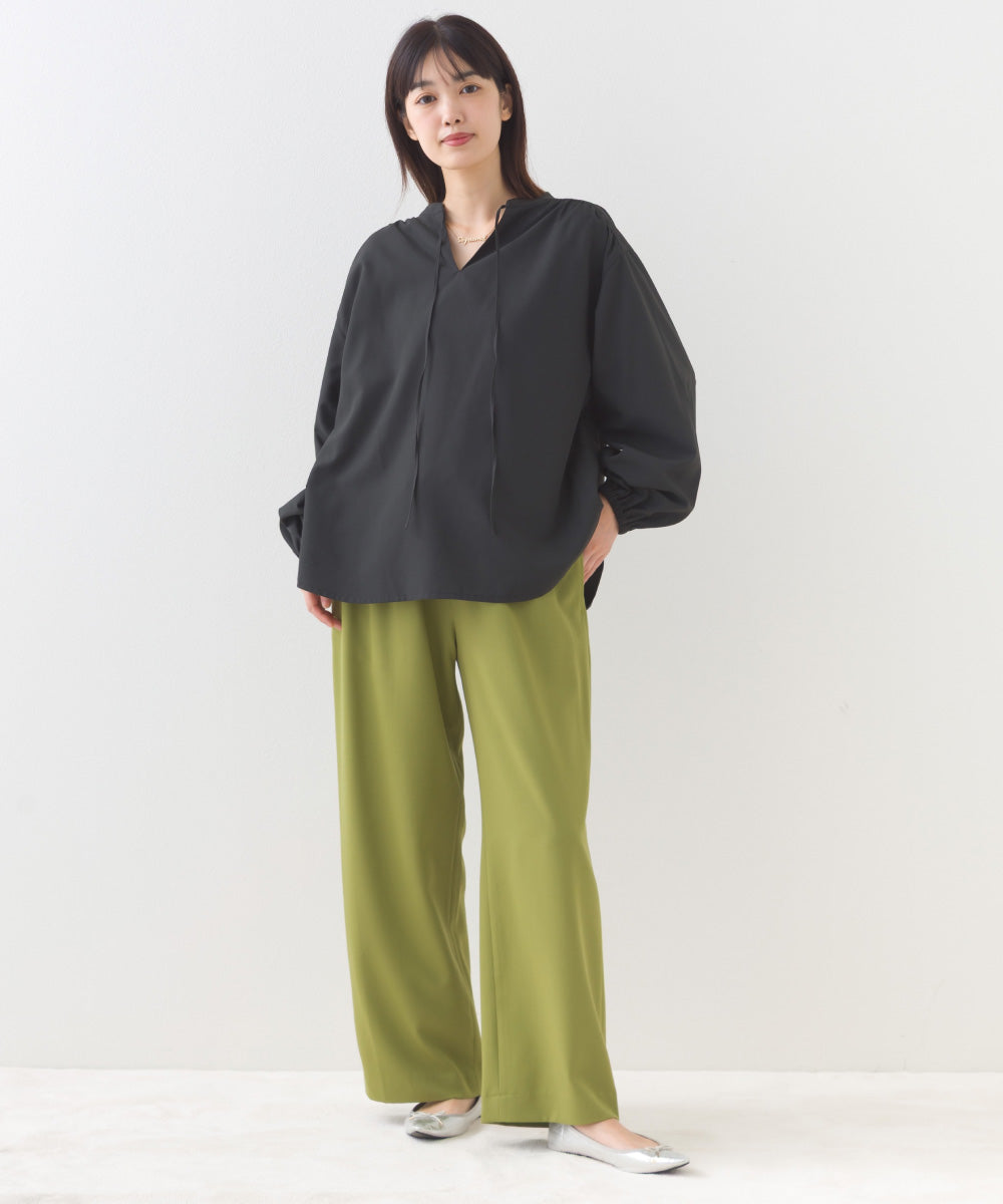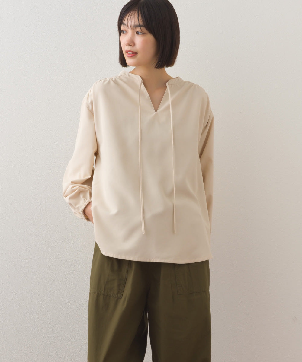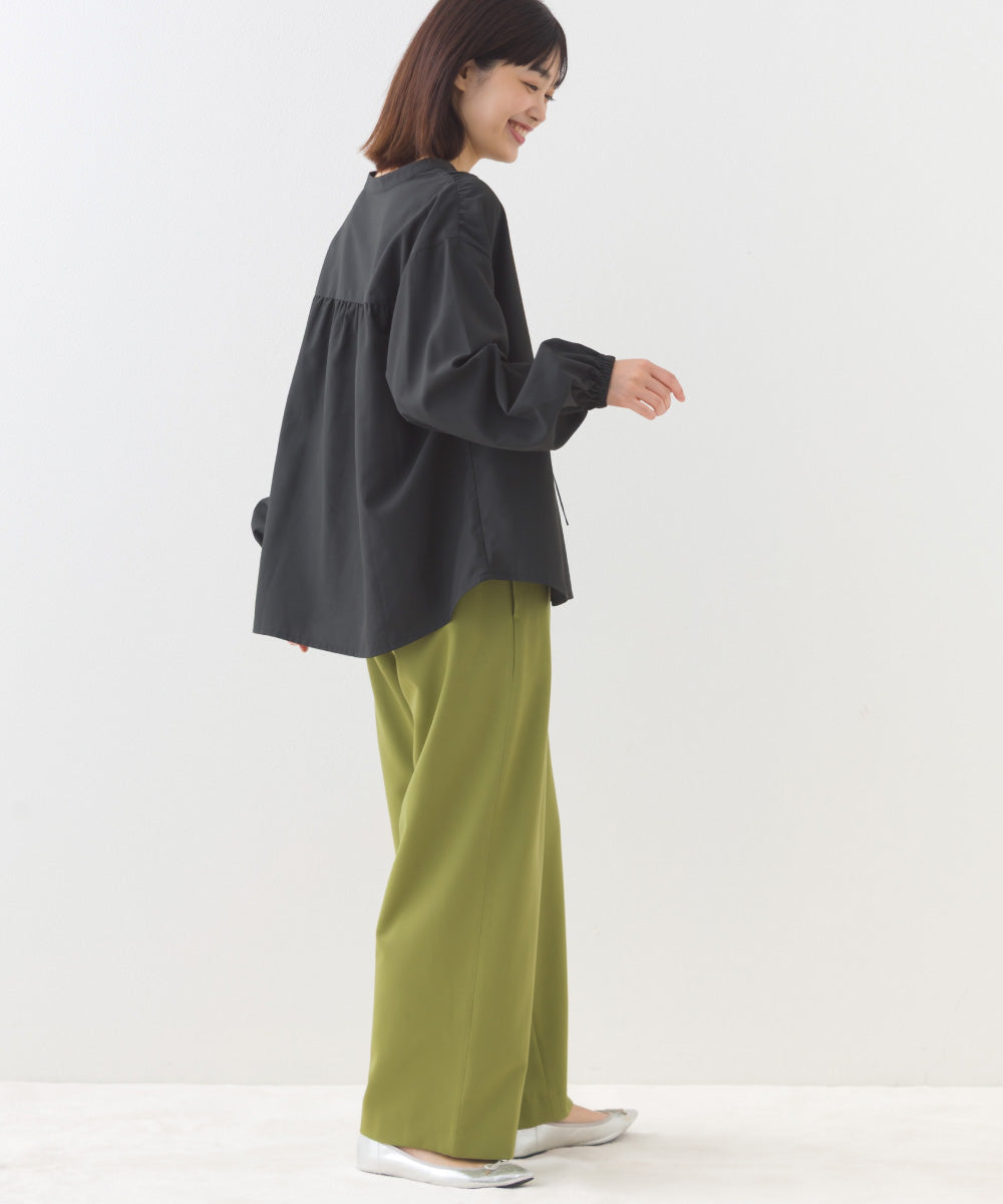 【OMNES】テックコットンスキッパーデザイン9分袖フリルシャツブラウス【253W427OMN072】
